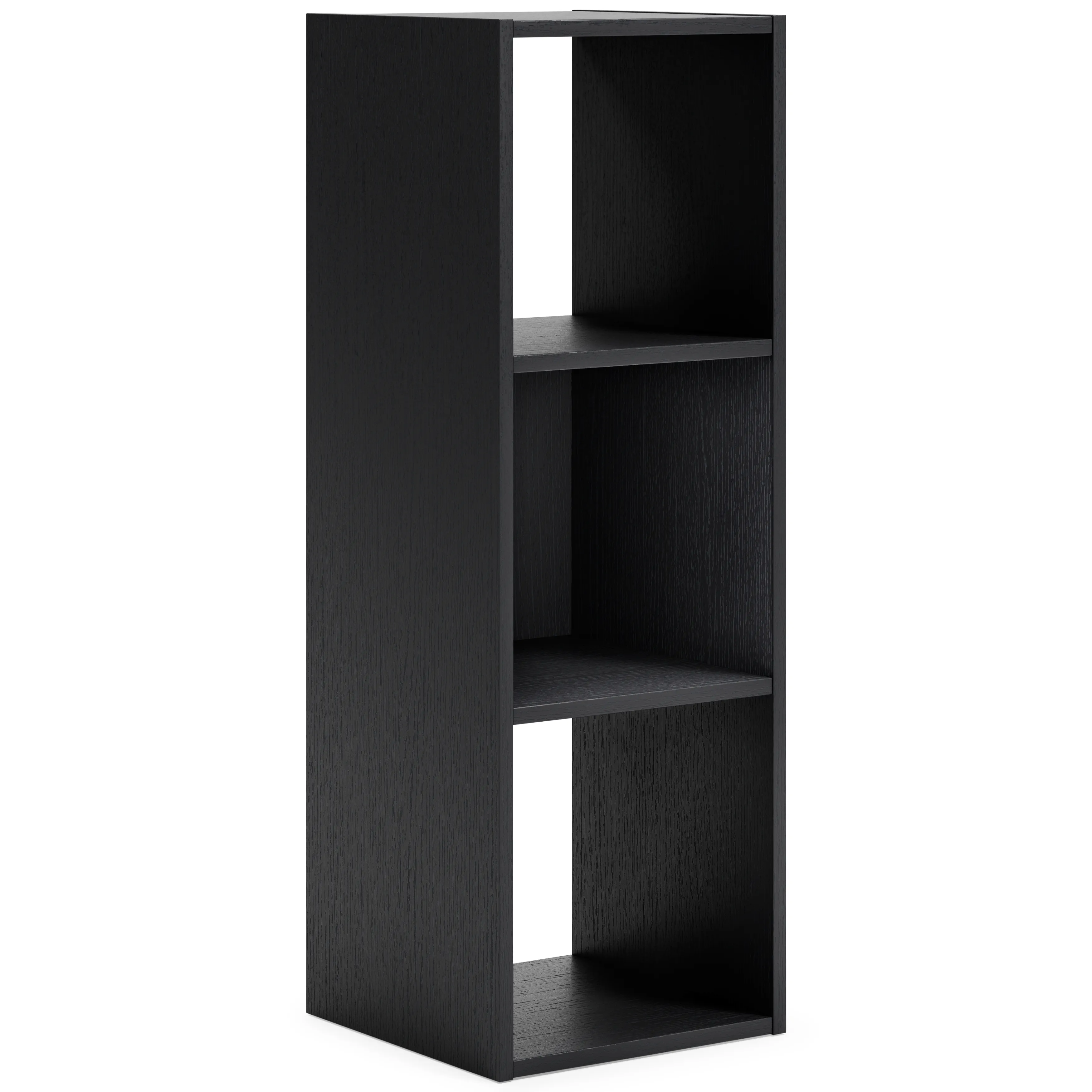 Keep clutter out from underfoot with this three-cube organizer. It's sleekly stylish with a matte black finish and subtle replicated wood grain, all while keeping your books, knickknacks and other items stored away. The perfect marriage of flair and function, this organizer is an ideal addition to any busy living space.
