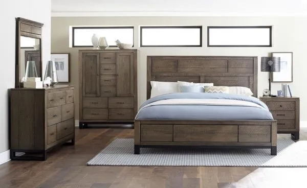 Delridge 5 PC Bedroom Set includes King Bed, His & Hers Chest, 6 Drawer Dresser, 7 Drawer Dresser, & 3 Drawer Nightstand.
