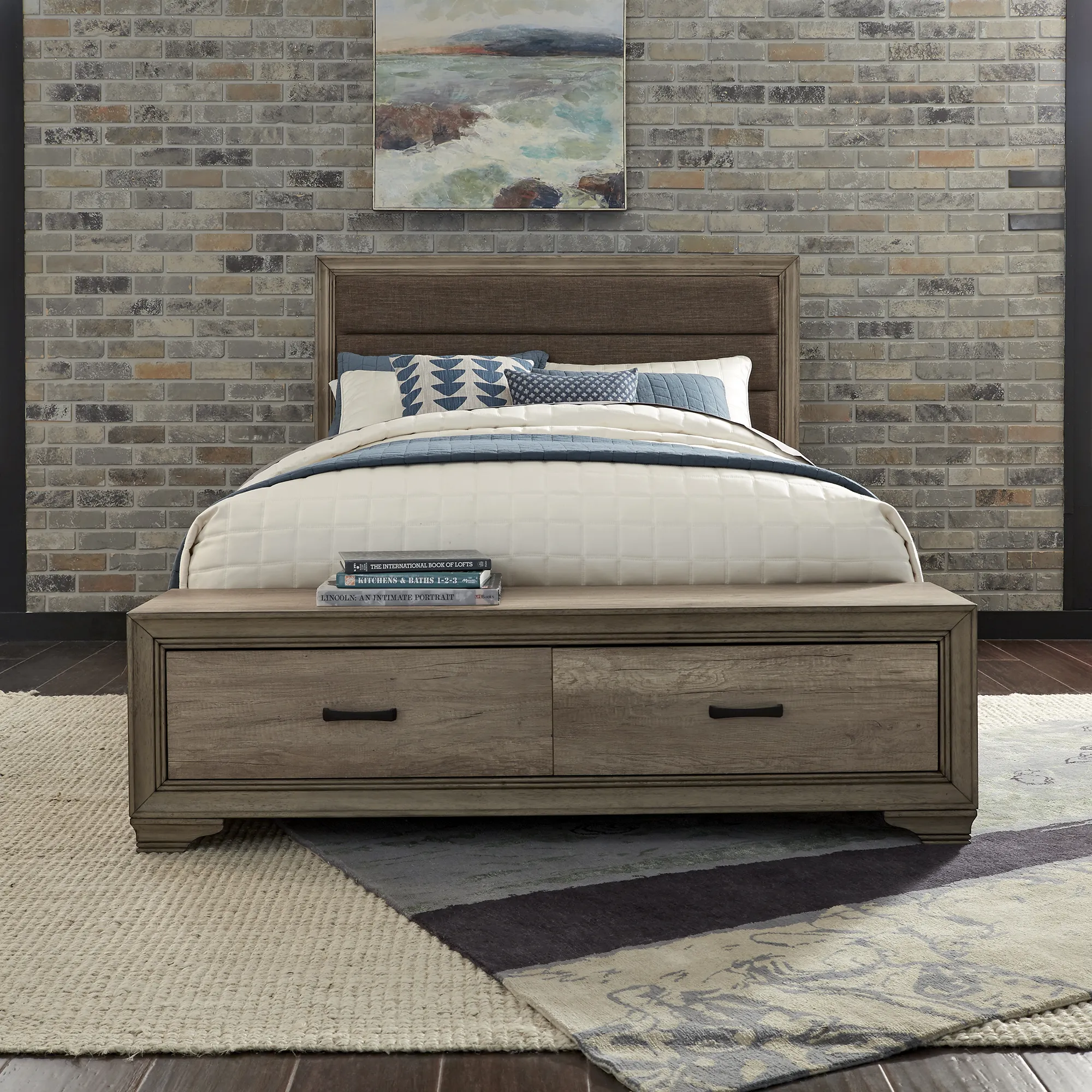 Clean lines and small scale create the perfect balance for condos, lofts or second bedrooms. Sun Valley features solid wood picture framed cases with Melamine tops, fronts, and sides. The melamine provides a surface protection against scratches and wear and tear. The rolled upholstered inserts add a nice softness to the group and are upholstered in a brown tweed fabric. _x000D__x000D_