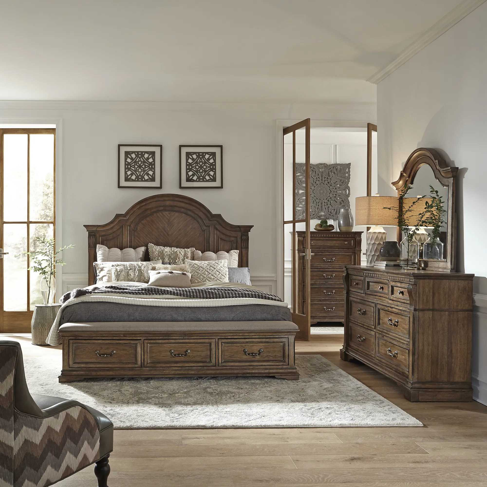 Haven Hall captures the essence of the Traditional European Design in a more casual way. A design that combines for a grand feel of the past with today's luxurious lifestyle. The aged chestnut finish creates a worn antique feel with artistic distressing along with grand scale to create a group to be passed to generations.