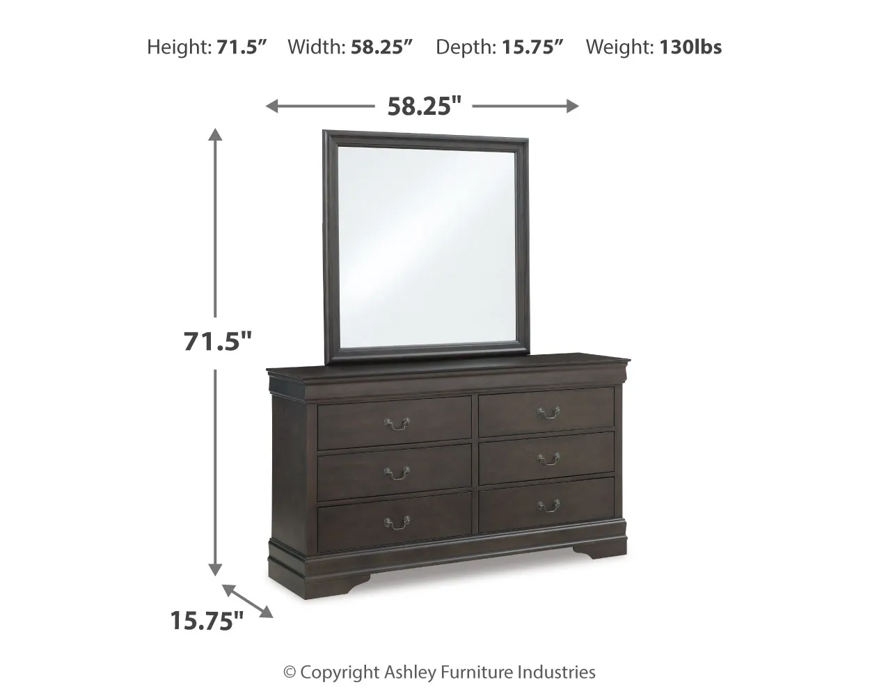 Polished and poised in an elegant deep brown finish, this dresser with mirror is a regal dream. Six drawers with dovetail construction provide sophisticated bedside storage. An additional elegant touch is provided by the antiqued bronze-tone drawer pulls.