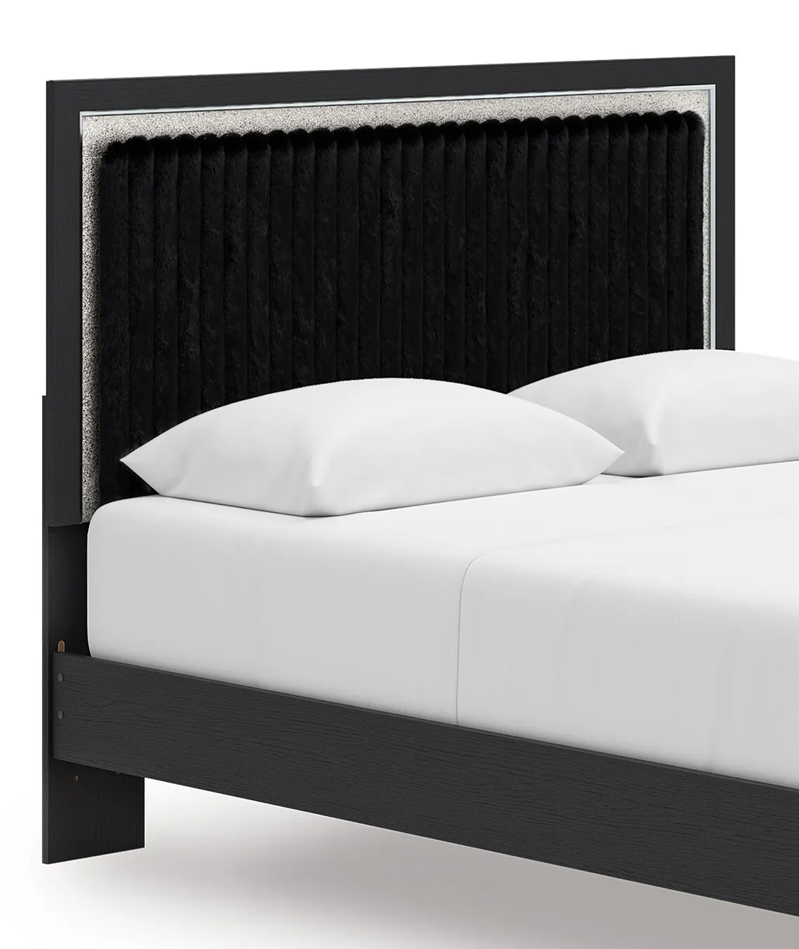 If glitz and glam are your jam, you’re gonna love this queen upholstered panel headboard. Gleaming glitter and dazzling chrome-tone touches are paired with tufted black faux fur for a stunning pop of pizzazz. Loaded with chic flair and serious sparkle, it's a simply splendid way to wake up your inner sanctum’s style.