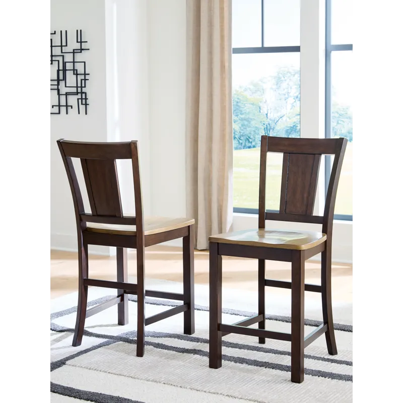Add a dash of enduring design to your home with this counter height bar stool. Its two-tone look contrasts light and dark chestnut finishes for a touch of casual rustic charm that’s both current and timeless. A contoured seat brings comfort and cleanability in a big way. It’s a simply striking choice that lends a seamless blend of form and function wherever friends and family gather.