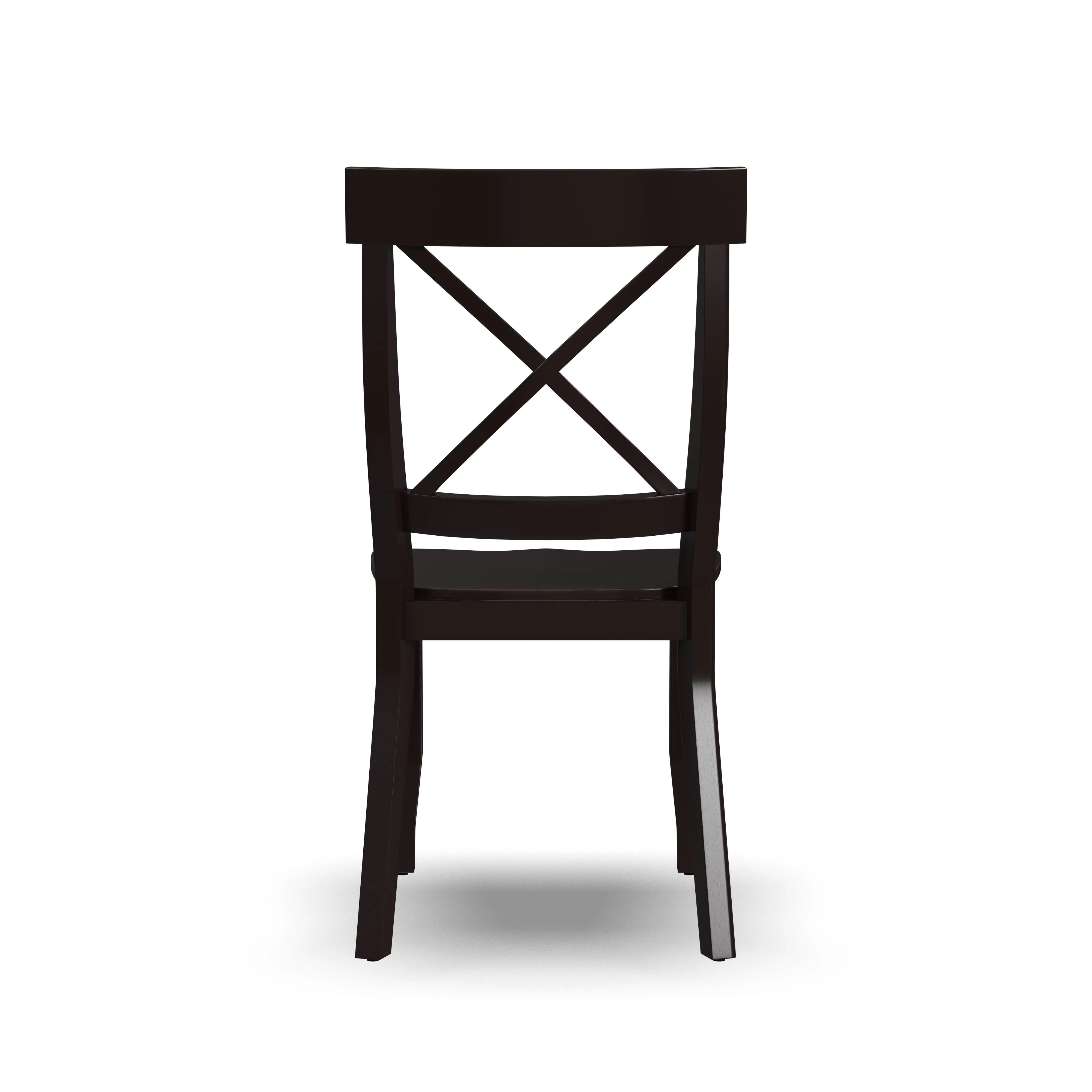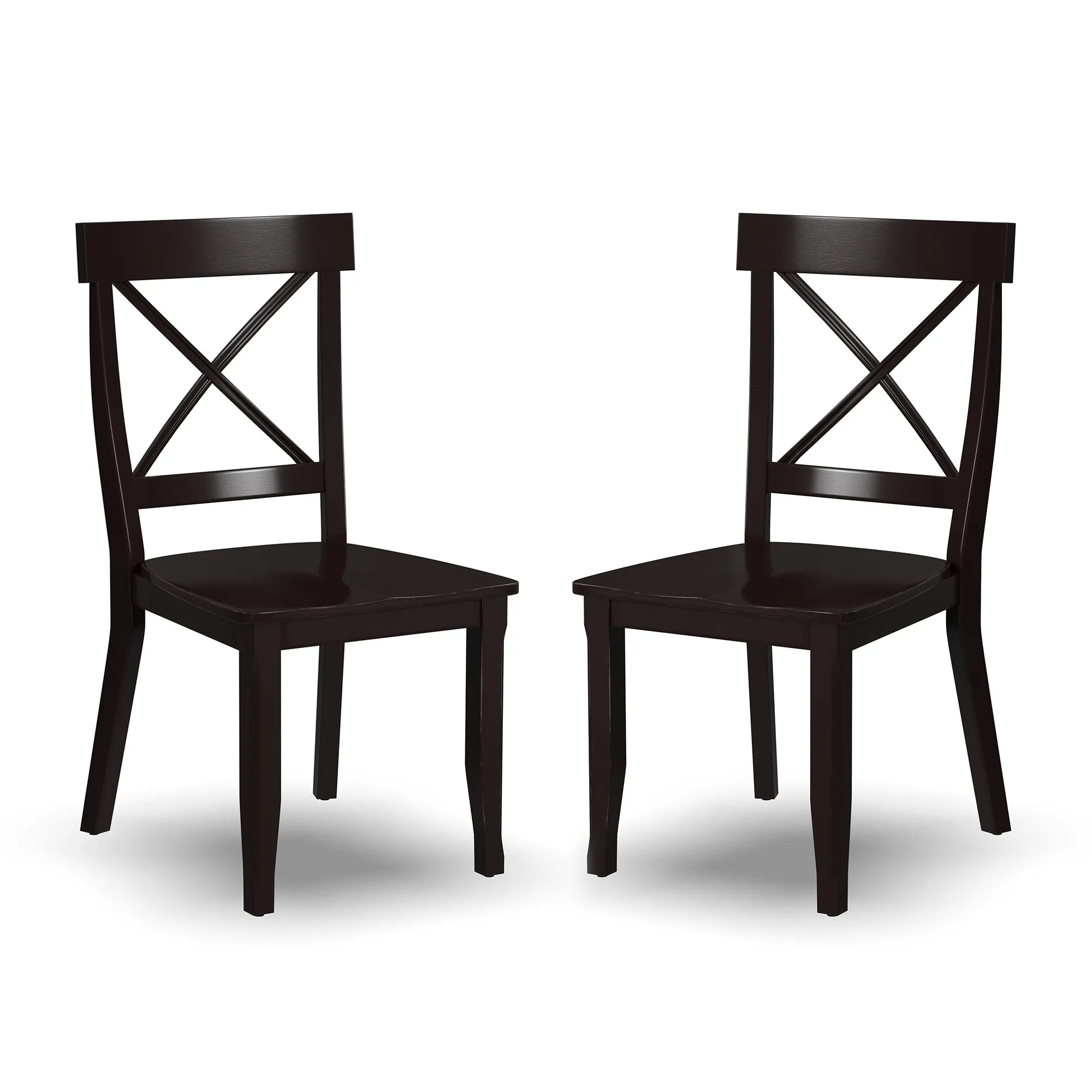 Pull up a couple chairs to have a conversation with a best friend or add a couple more chairs to an existing table and chairs with this Homestyles Blair Chair Set. This pair of dining chairs is accented by an X-back, contoured seat and tapered legs. Each one has an attractive black finish that is easy to match. Whether using as side chairs or pulling up to a table, the comfort and style will last as long as the durable construction.