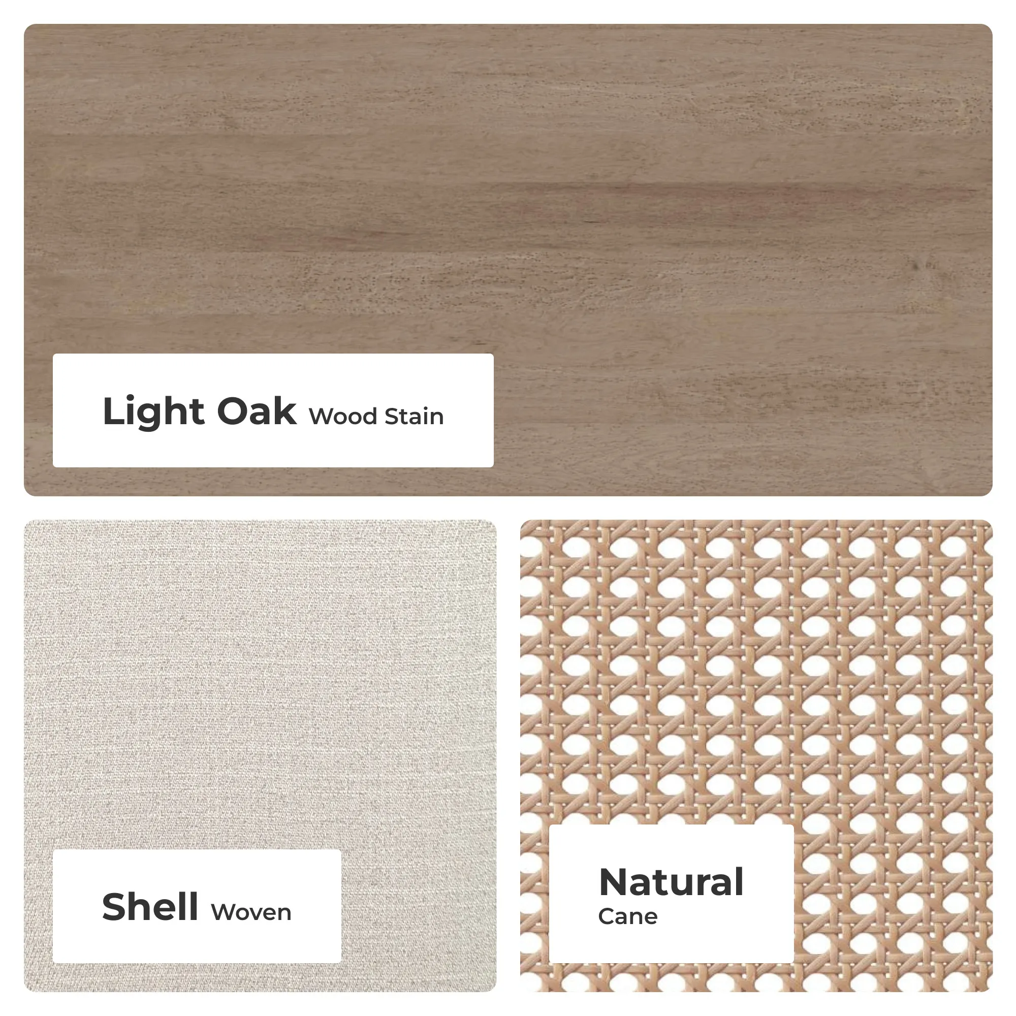 Provide a comforting, nostalgic feel to your dining room that will make mealtime even more inviting. Offering a modern take on mid-century boho style, the Brentwood Armless Dining Chair combines clean lines with the natural tones and texture of woven cane for a beautiful retro look. Made from sustainably harvested wood in a subtle light oak finish, this chair features a soft, padded cushion upholstered in an easy-to-clean performance fabric.