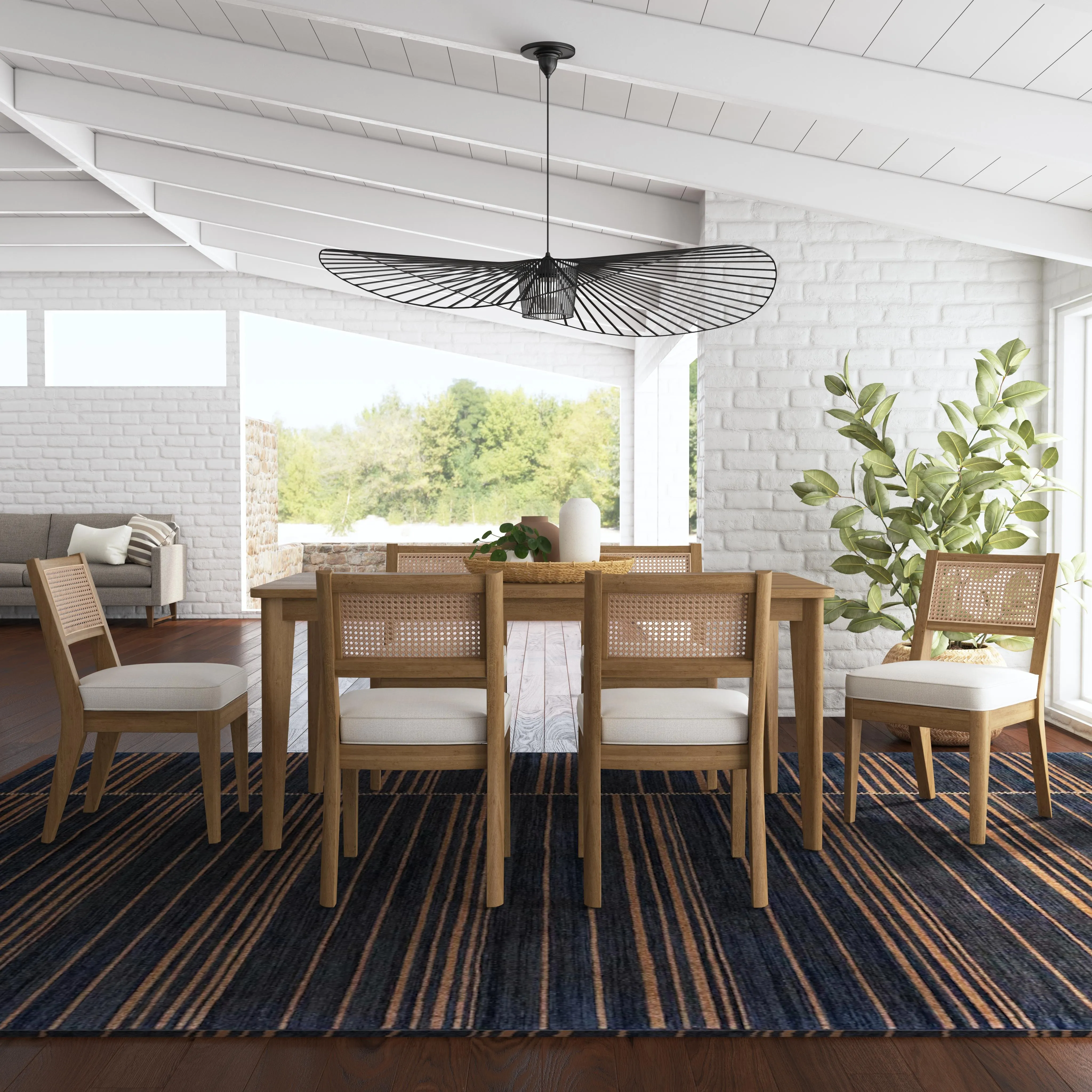 Provide a comforting, nostalgic feel to your dining room or breakfast nook and make mealtime even more inviting. Offering a modern take on mid-century boho style, the Brentwood Round Dining Set features a minimalist design and light scale, making it ideal for compact spaces. Made from sustainably harvested wood in a subtle light oak finish, and easy to clean performance fabric, this rectangular table and six chairs is a beautiful way to comfortably entertain guests.