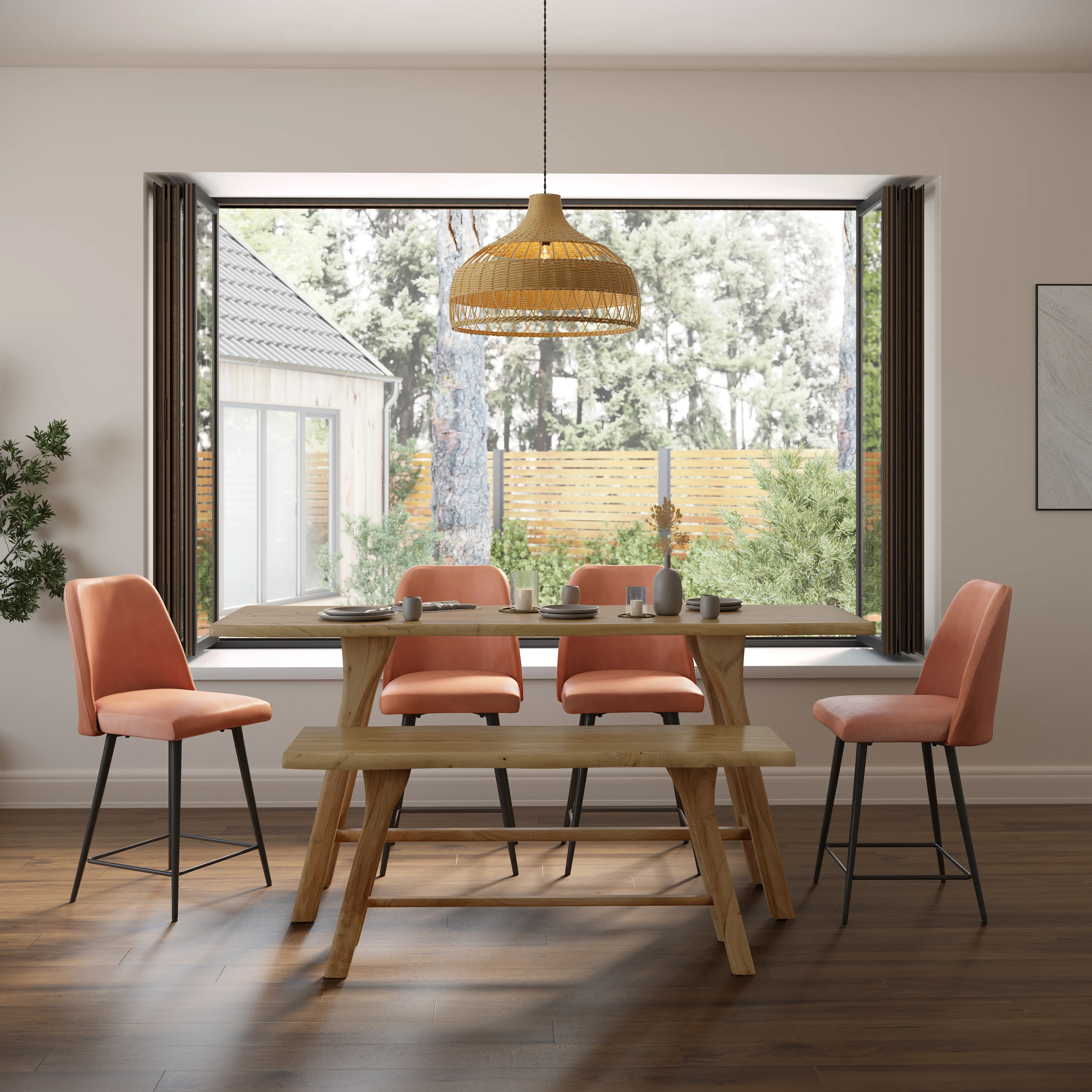 Introducing the Sedona Live Edge Counter Height Bench, a remarkable fusion of nature's beauty and contemporary design. Crafted from solid acacia hardwood, each bench boasts a distinctive live edge, creating a captivating centerpiece in your home. Measuring a generous 54" in length, it's an invitation for gatherings and memorable moments. The bench harmoniously marries rustic charm with modern sensibility through its sleek trestle frame, forming the perfect balance of old-world allure and contemporary sophistication. Whether accompanying the Sedona Live Edge Counter Height Dining Table or standing alone as a statement piece, this bench adds character and warmth to any space. Elevate your interior with the captivating Sedona Live Edge Counter Height Bench, where the authenticity of natural design meets the sophistication of the modern era.