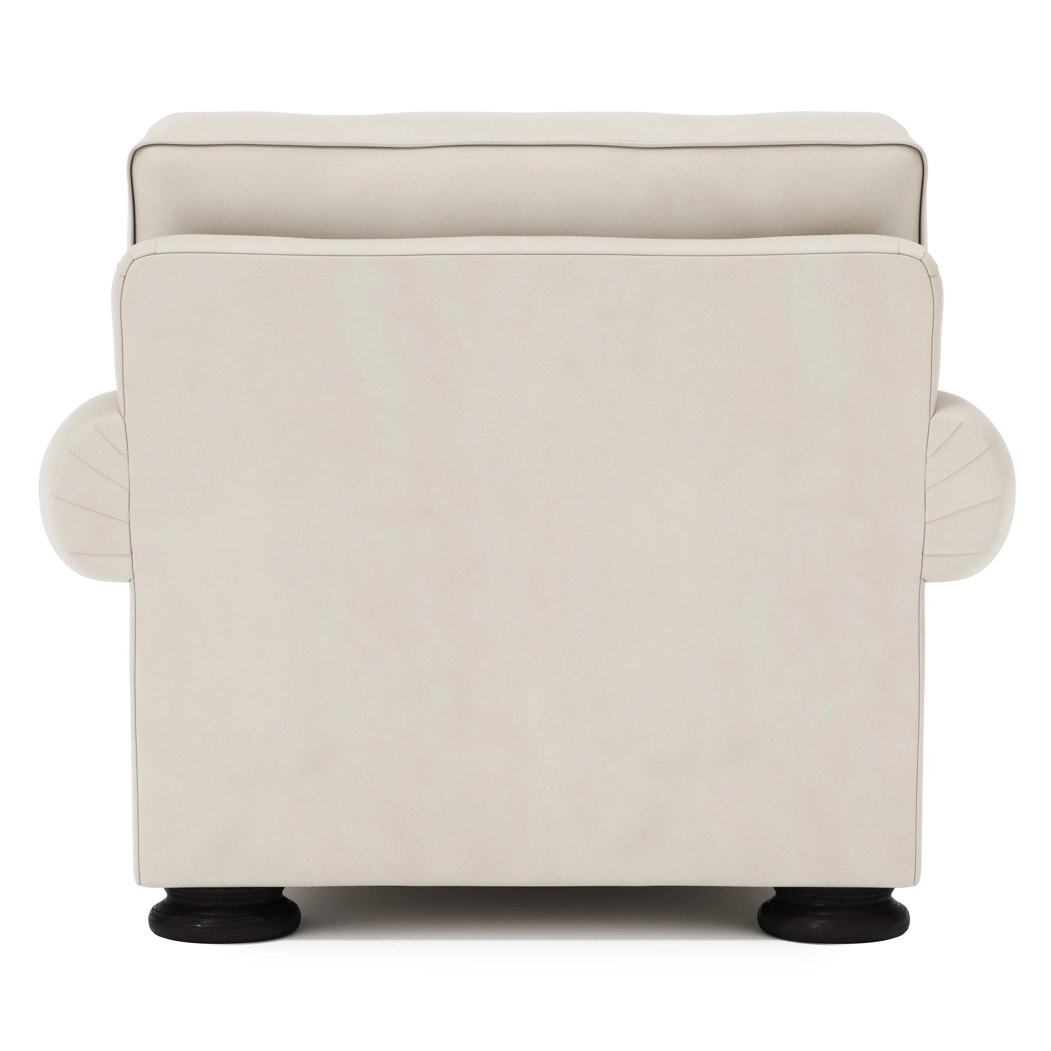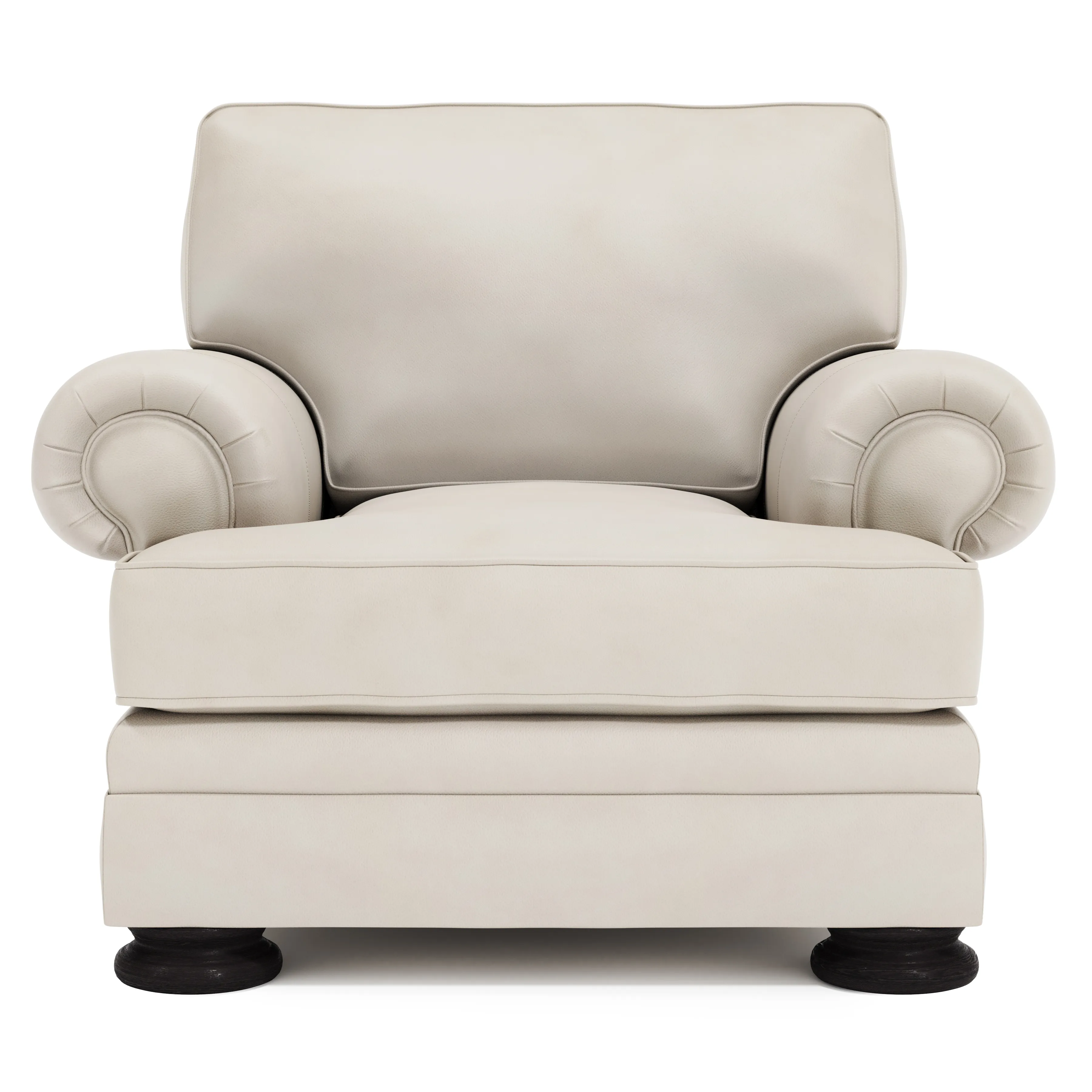Enjoy the rich look of our Foster furniture line in a convenient chair size. This collection projects a feeling of grandeur in a comfort that will have you feeling right at home. The padded frame and thick seat and back cushions provide relaxed seating. Wide legs add a luxurious final touch. Pair this chair with a Foster Ottoman to extend the comfort further.