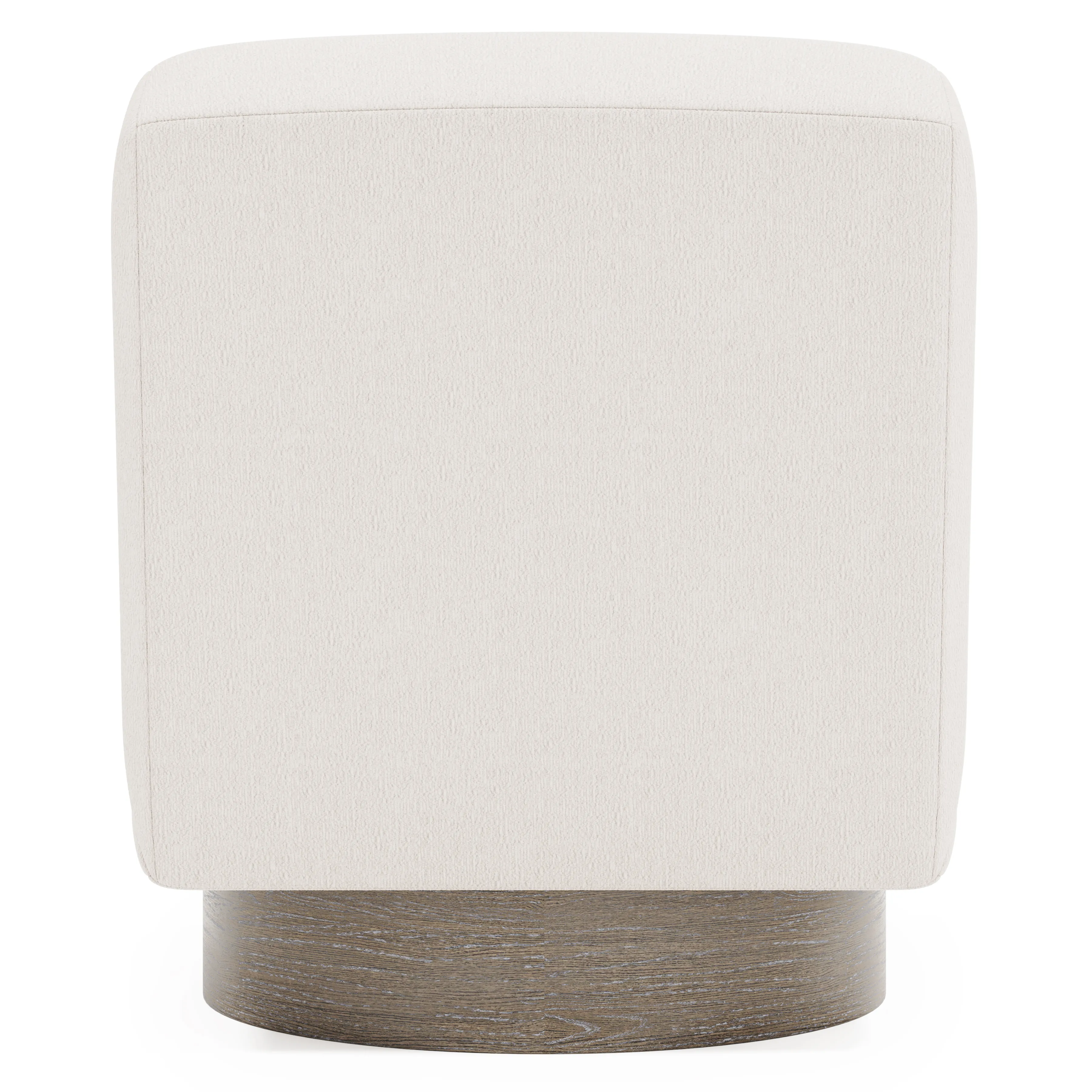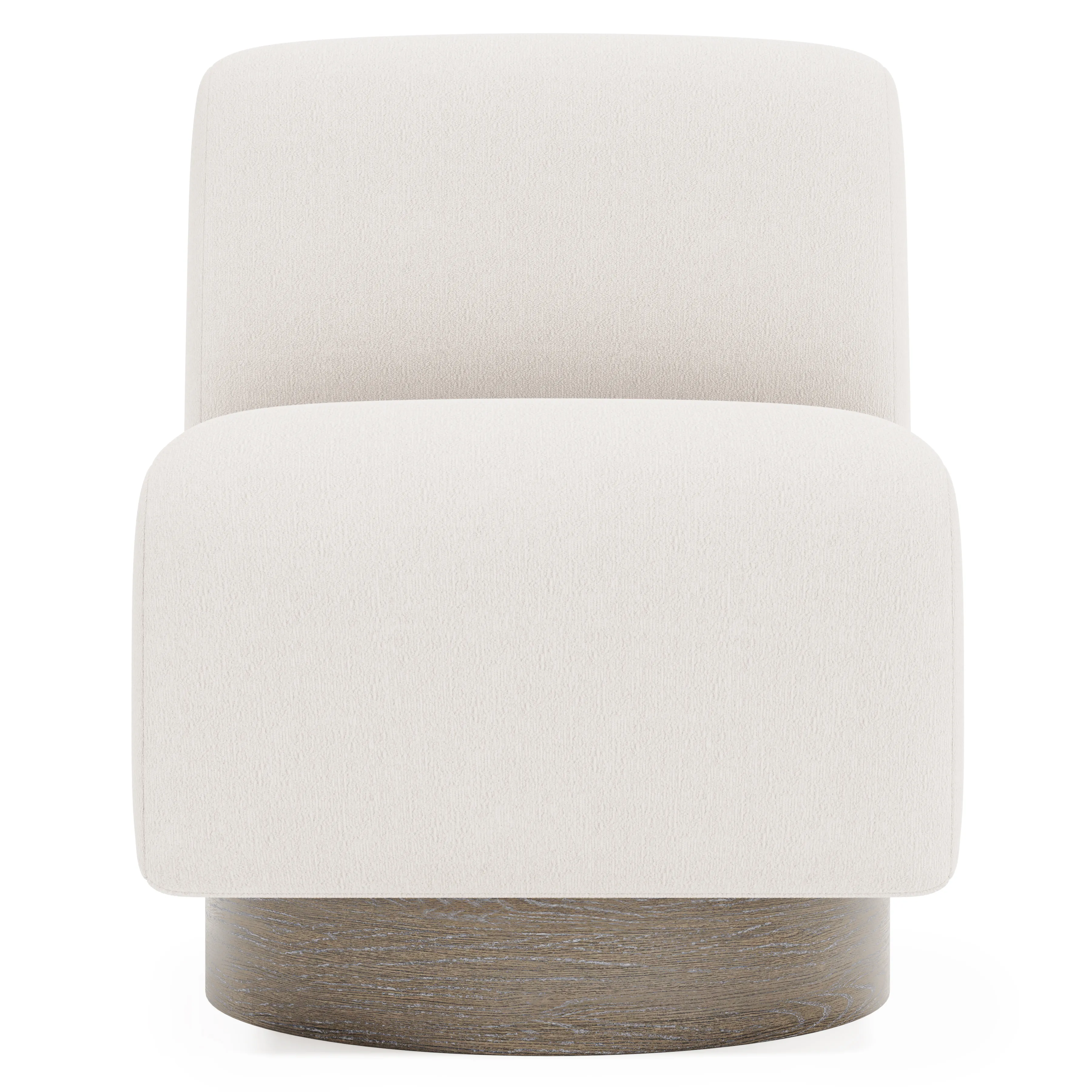 The Marley swivel chair has a sharply modern style defined by bold and curving lines. The tight back upholstery offers deep comfort and smoothly pivots on a 360-degree movement. The wood base is available in any cerused upholstery finish.