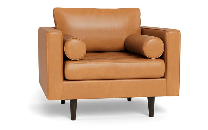 Custom make your Ladybird Leather Arm Chair with our wide selection of other great fabric and leather options. The standard height Ladybird sits at 19”. This chair has a standard seat depth, and has cushions that are right in between being plush and firm.