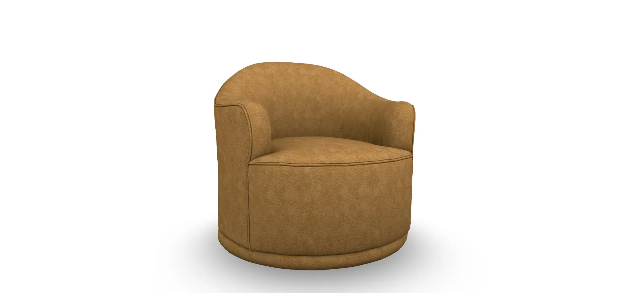 The April Swivel Chair defines upscale simplistic styling. This transitional frame has sloping arms with a graceful, single cord accent which defines the silhouette as well as on the edge of the seat. A discreet minimalistic base hides a comfort upgrade in the 360 swivel base.