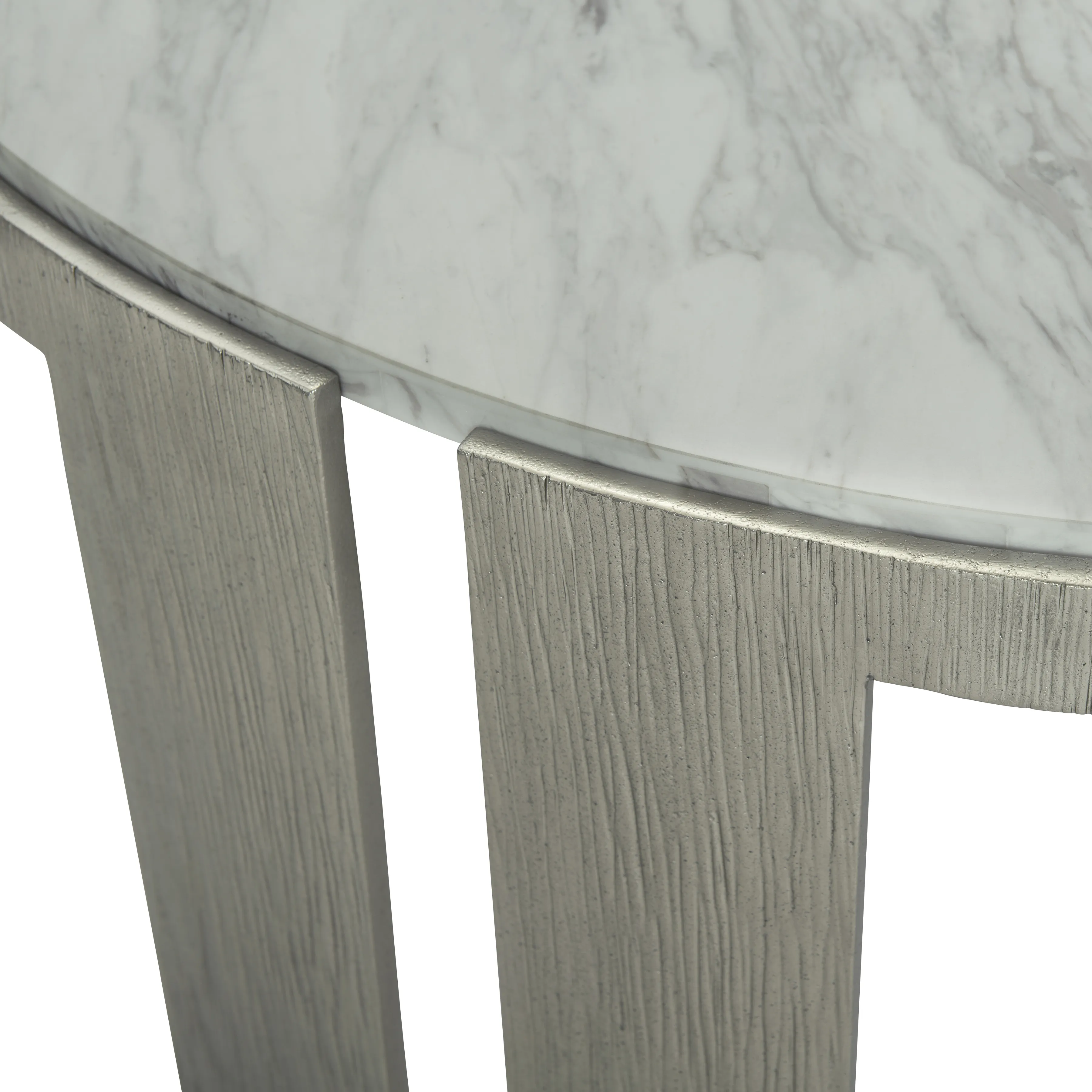 Modern geometry is defined in cast aluminum that bends and turns to shape a stunning frame for the Simone cocktail table. The textured base with its open-work legs and nickel finish supports a laminated marble top. The influence is subtly Deco but updated for modern living spaces.