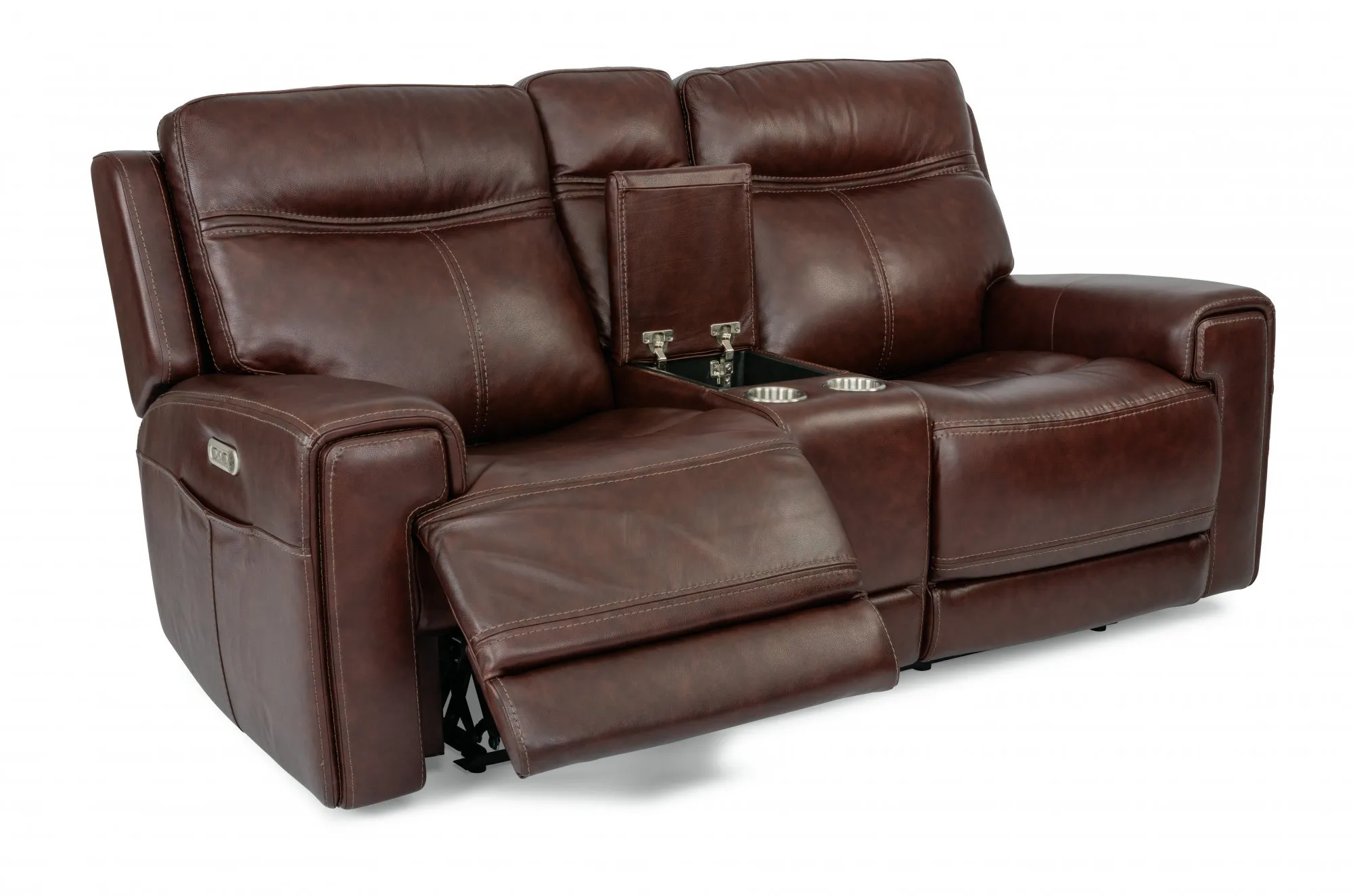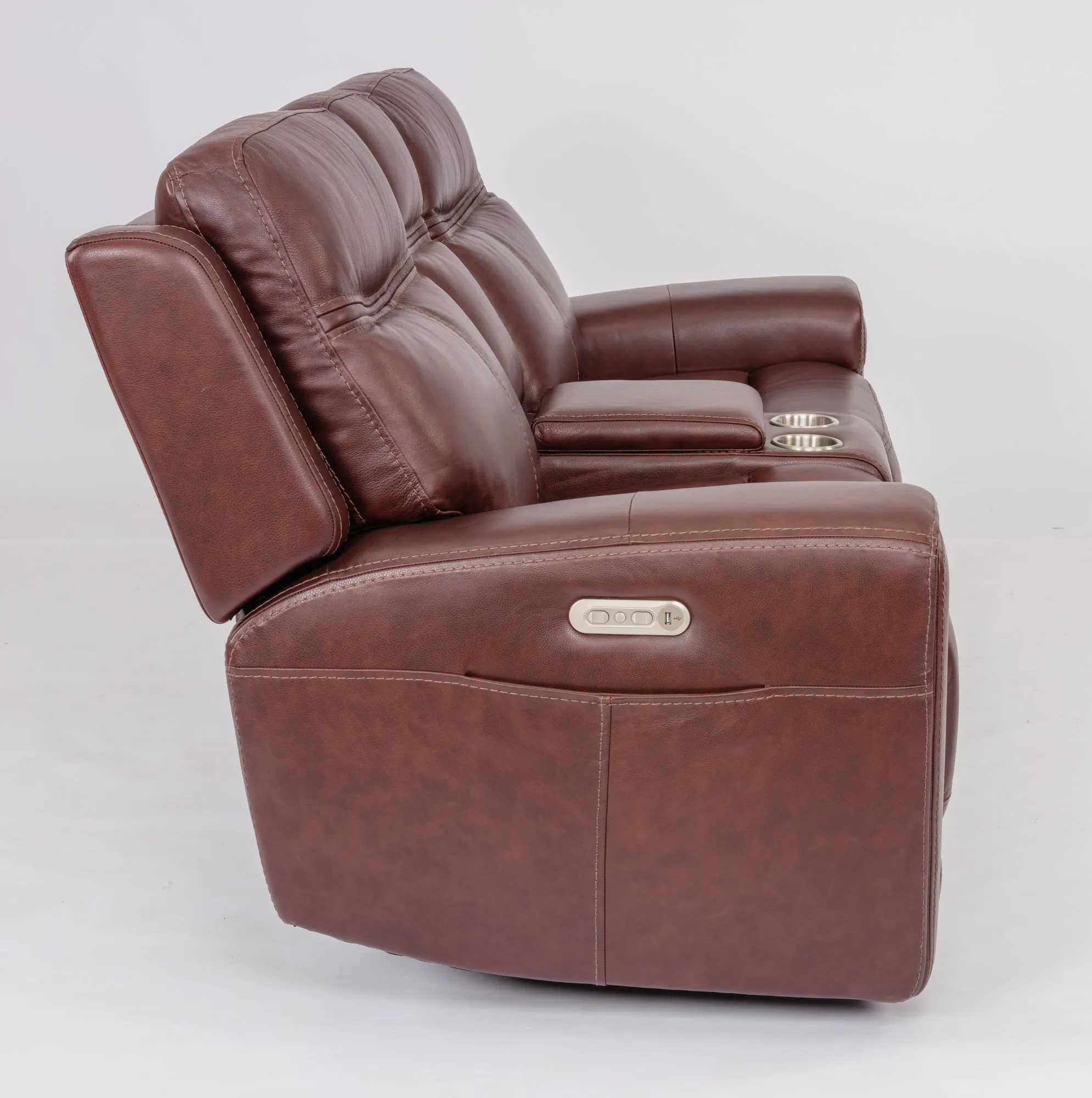 Rich details on a sophisticated silhouette. A row of stitched trim lining the thick arms and contoured seats give Bravo a rich, fashion-forward appeal. An out-arm storage pocket provides added function. The divided back cushions provide extra lumbar support for hours of relaxation, and the vertical stitching on the back cushions and front rail add a contemporary touch to the frame.