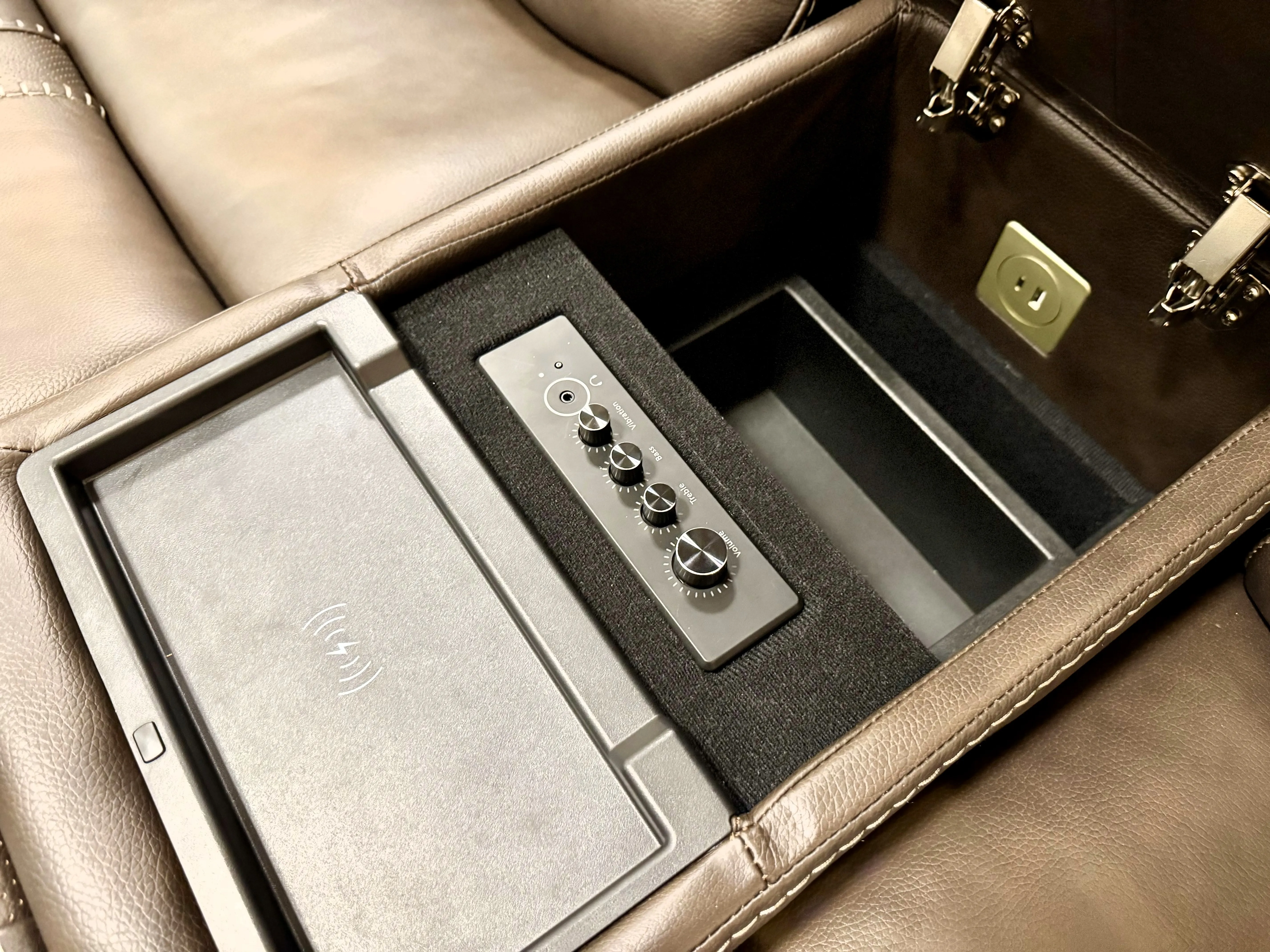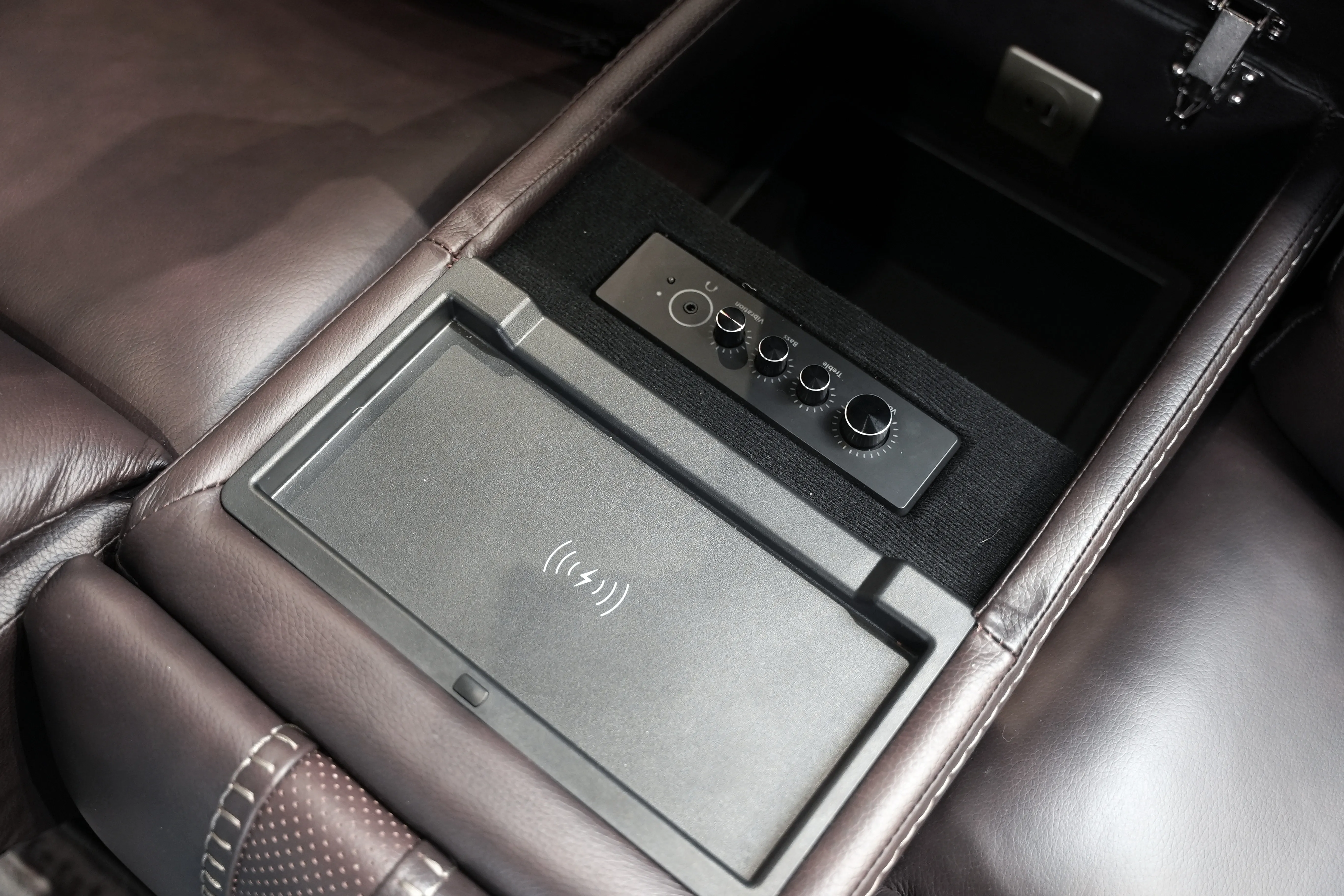 USB ports and wireless charging built into the seating
