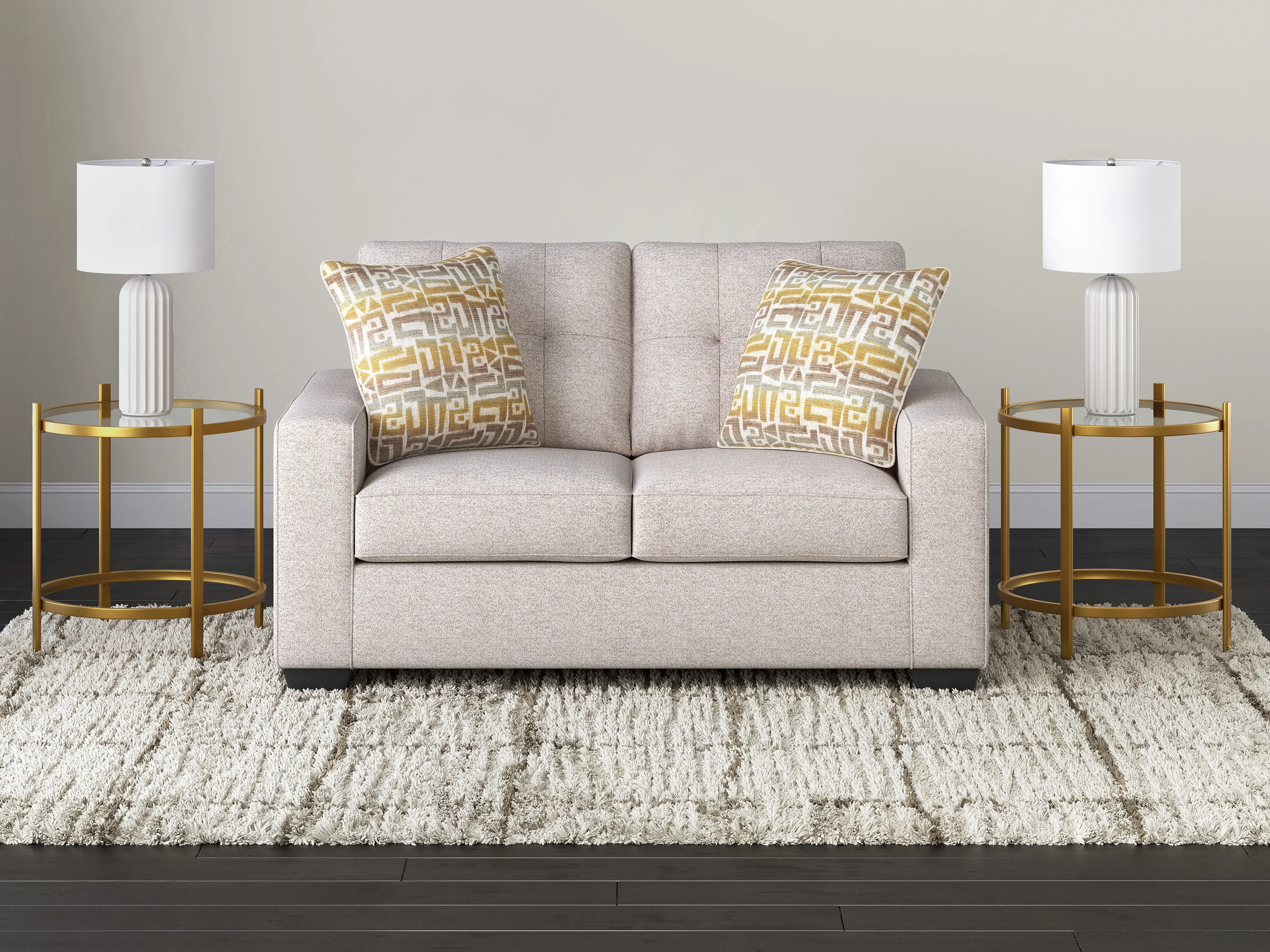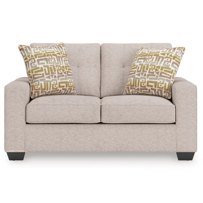 Sincere in its styling, this loveseat marries classic function with modern design elements for truly transitional appeal. Its track arms lend a contemporary vibe while soft, durable upholstery ups the comfort level. And with the loveseat's goes-with-anything neutral color, styling is made simple. All that’s left for you to do is to sit back and relax.