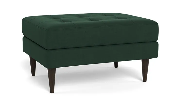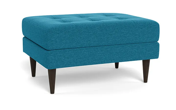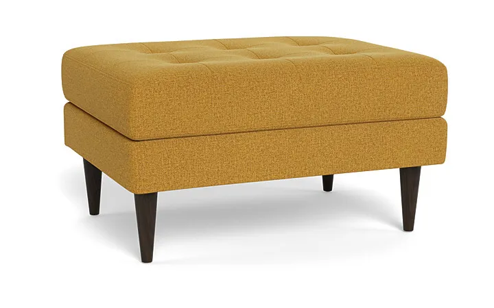 The Couch Potatoes Wallace Ottoman radiates mid-century retro charm and vintage glamor with a touch of versatility. The button-tufted cushioning and tapered wooden legs give it a Mid-Century Modern look that is appealing for all homes. Custom make your Wallace ottoman with our wide selection of other great fabric and leather options. The standard height Wallace seat sits at 18”. This ottoman has a standard seat depth, and has firm cushions.