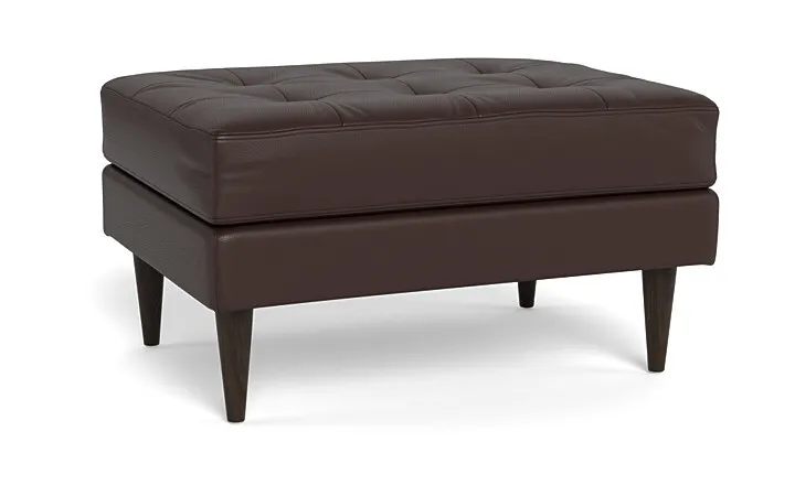The Couch Potatoes Wallace Ottoman radiates mid-century retro charm and vintage glamor with a touch of versatility. The button-tufted cushioning and tapered wooden legs give it a Mid-Century Modern look that is appealing for all homes. Custom make your Wallace ottoman with our wide selection of other great fabric and leather options. The standard height Wallace seat sits at 18”. This ottoman has a standard seat depth, and has firm cushions.