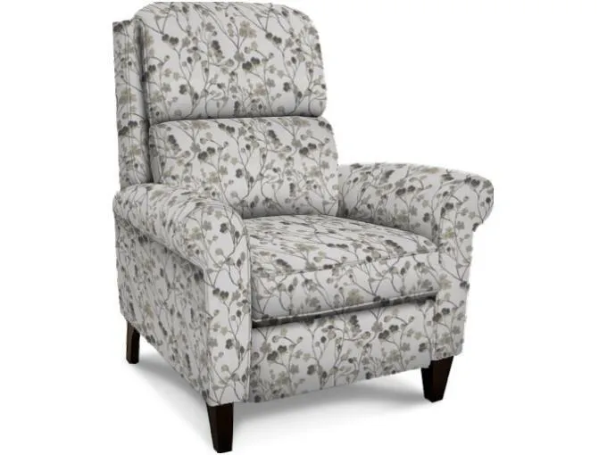 The ultimate basic, the Kenzie chair features a high back perfect for relaxing after a long day. With its pub back, tailored rolled arm and tapered wood leg, it is a perfect accent to any home. This casual press back recliner is also available with a power option. Take a look at Maddox for the all leather version!