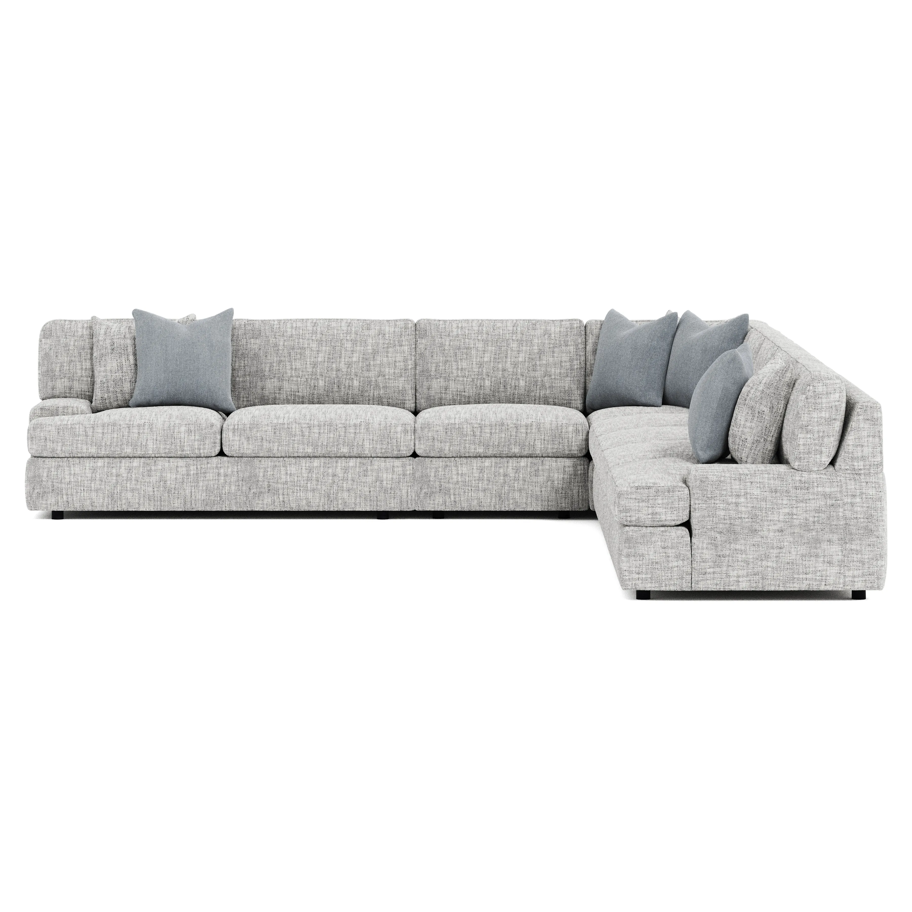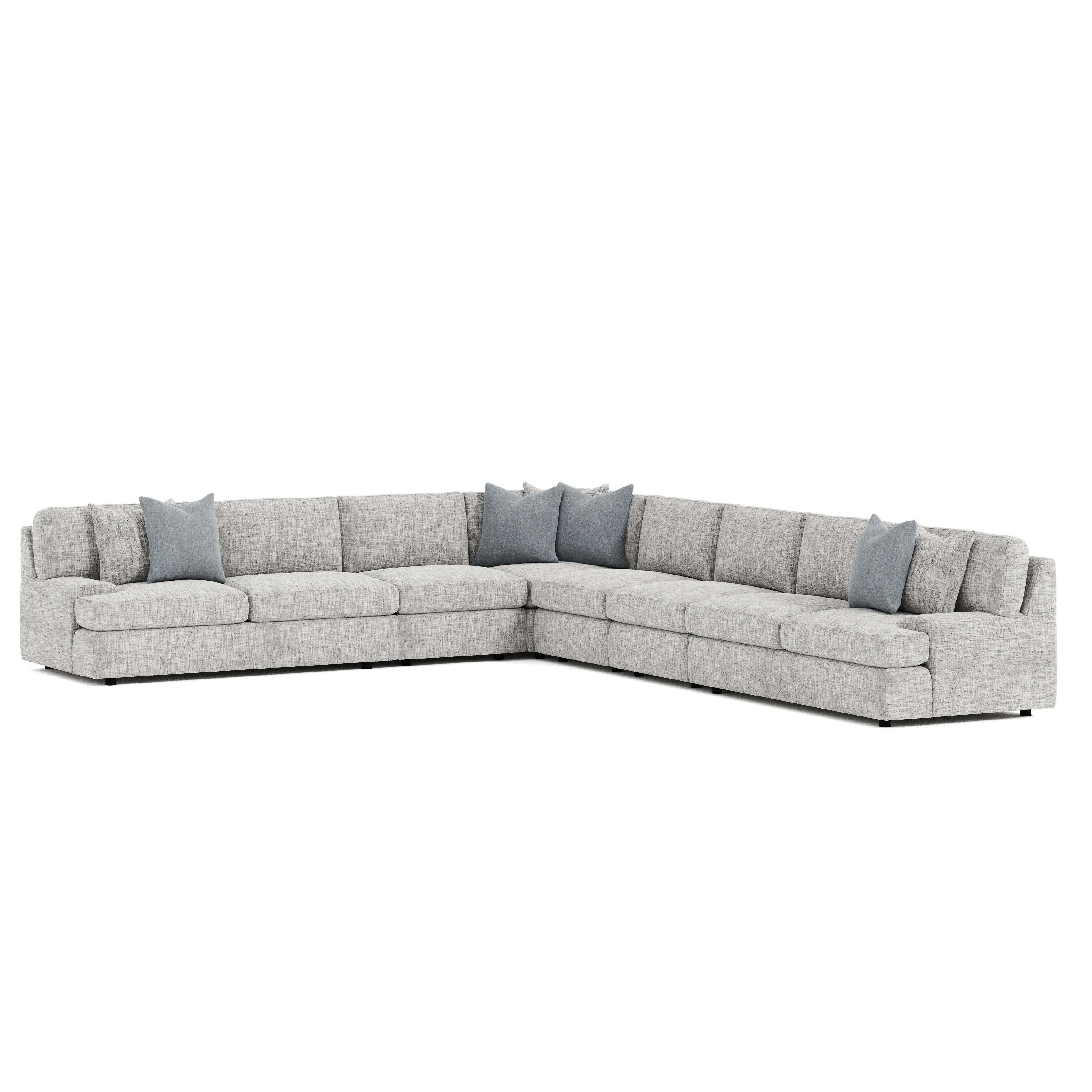 The Serena sectional showcases classic lines and a low profile, balanced by generous cushions. An angled back offers added comfort, while low arms make a modern statement.