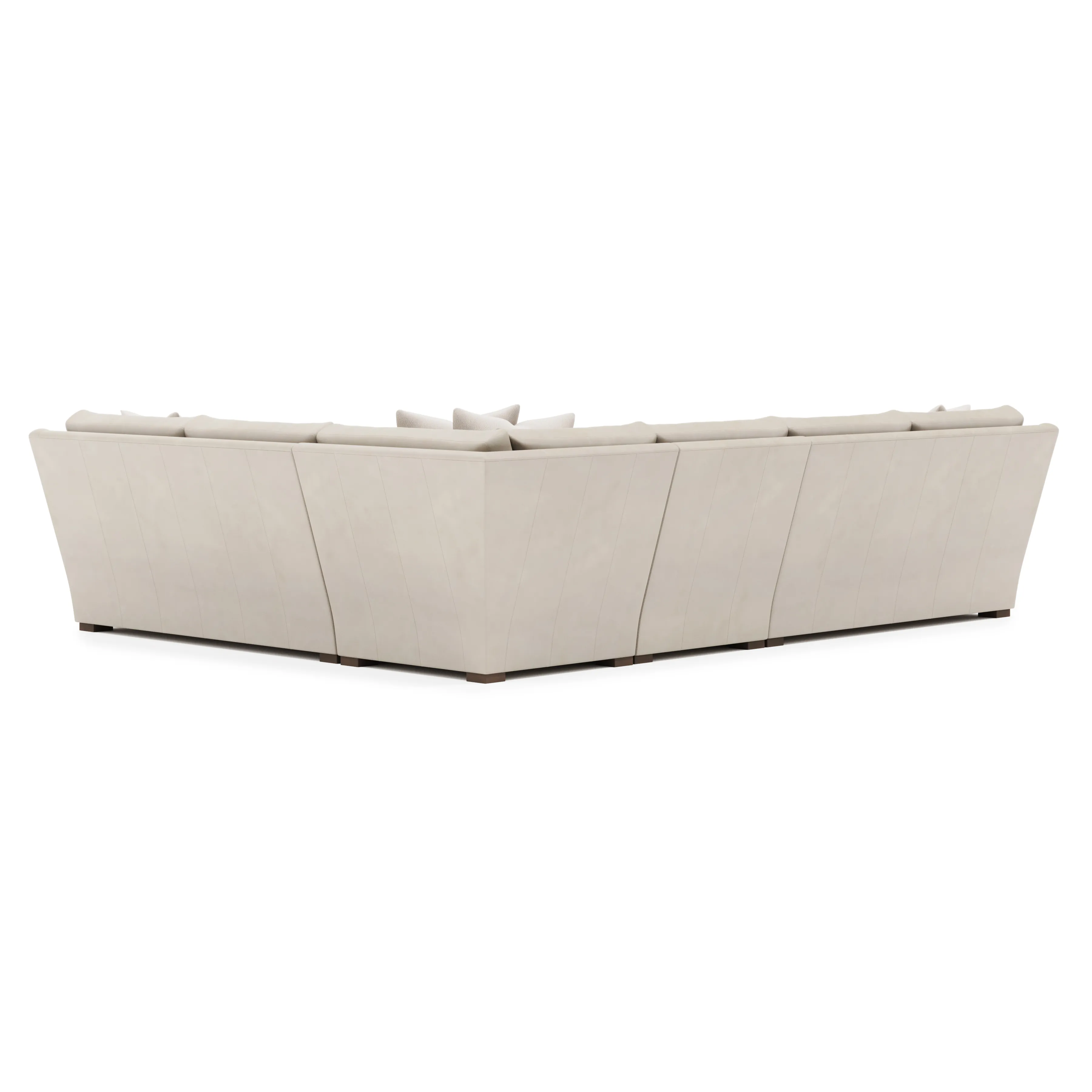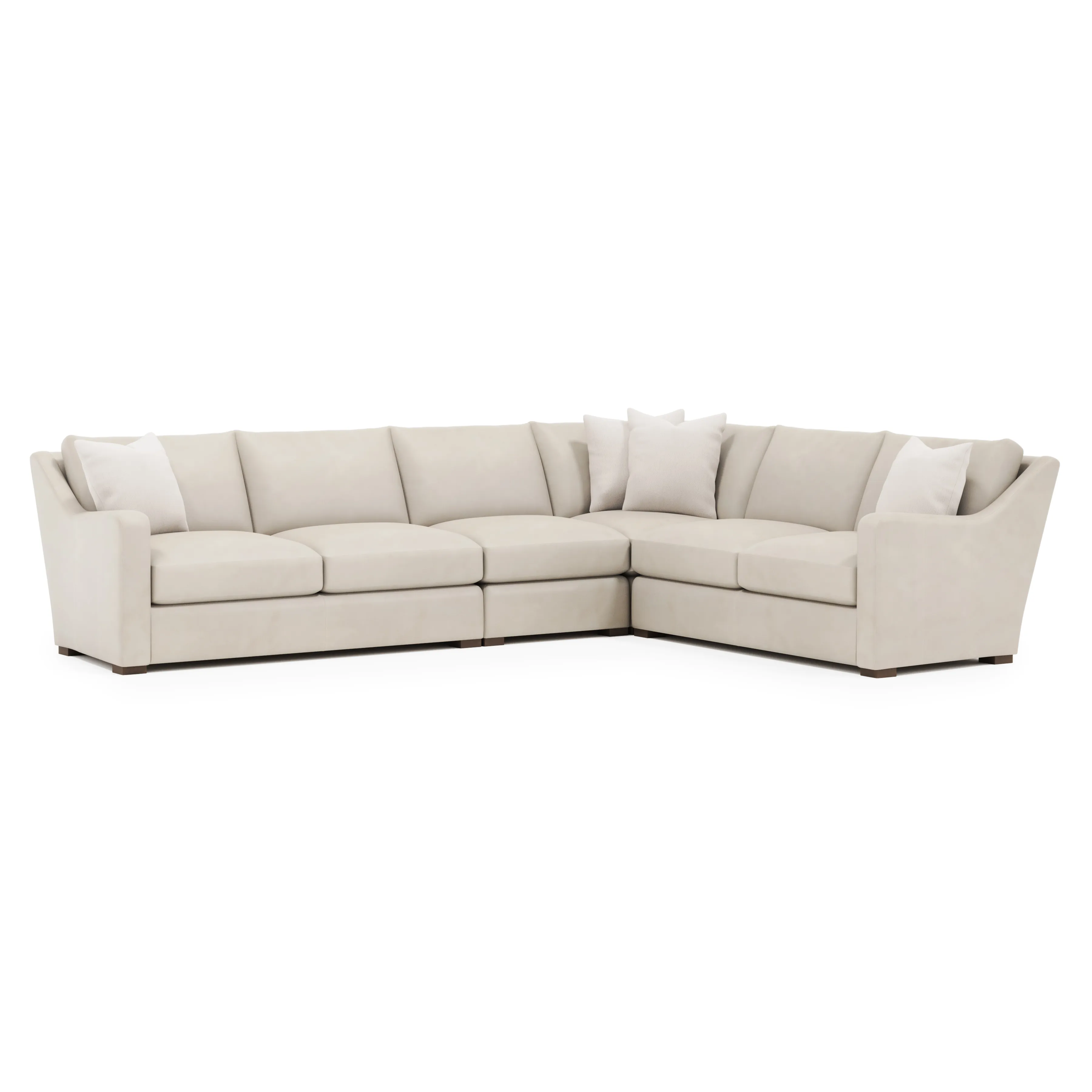 Clean lines and graceful curves blend modern and traditional shaping for the Ventura leather sectional. The arms gently sweep from a tall back and then take a straight line to the floor. Deep seat cushions and box-edge bordered back pillows provide the ultimate in comfort.