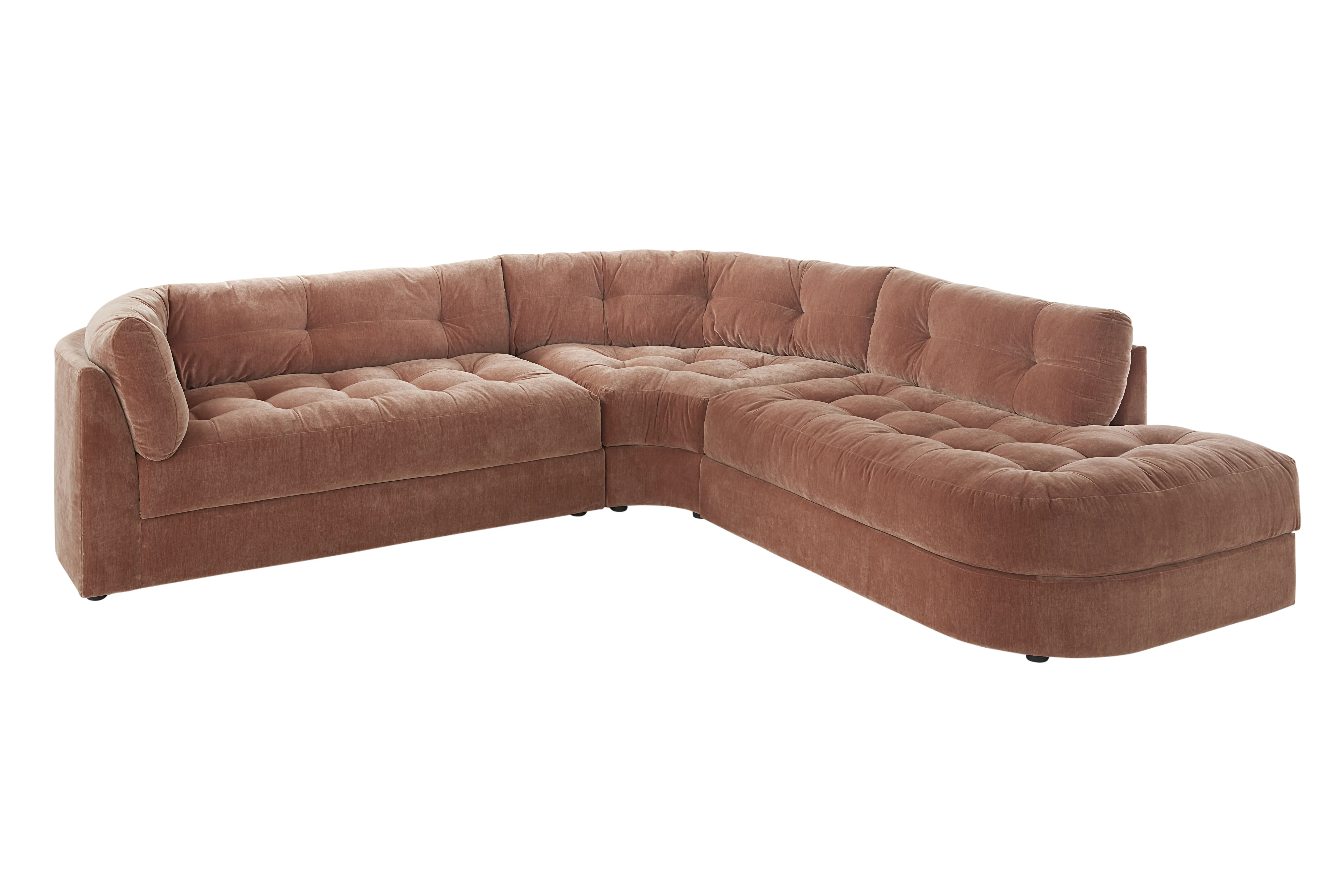 Make a statement with the Juniper Sectional, where modern design meets everyday comfort. This upholstered fabric 3-piece sectional with a right-facing chaise adds bold color and sleek style to your living room. The soft, curved lines and unique silhouette bring contemporary flair, while tufted seat cushions provide both comfort and sophistication.