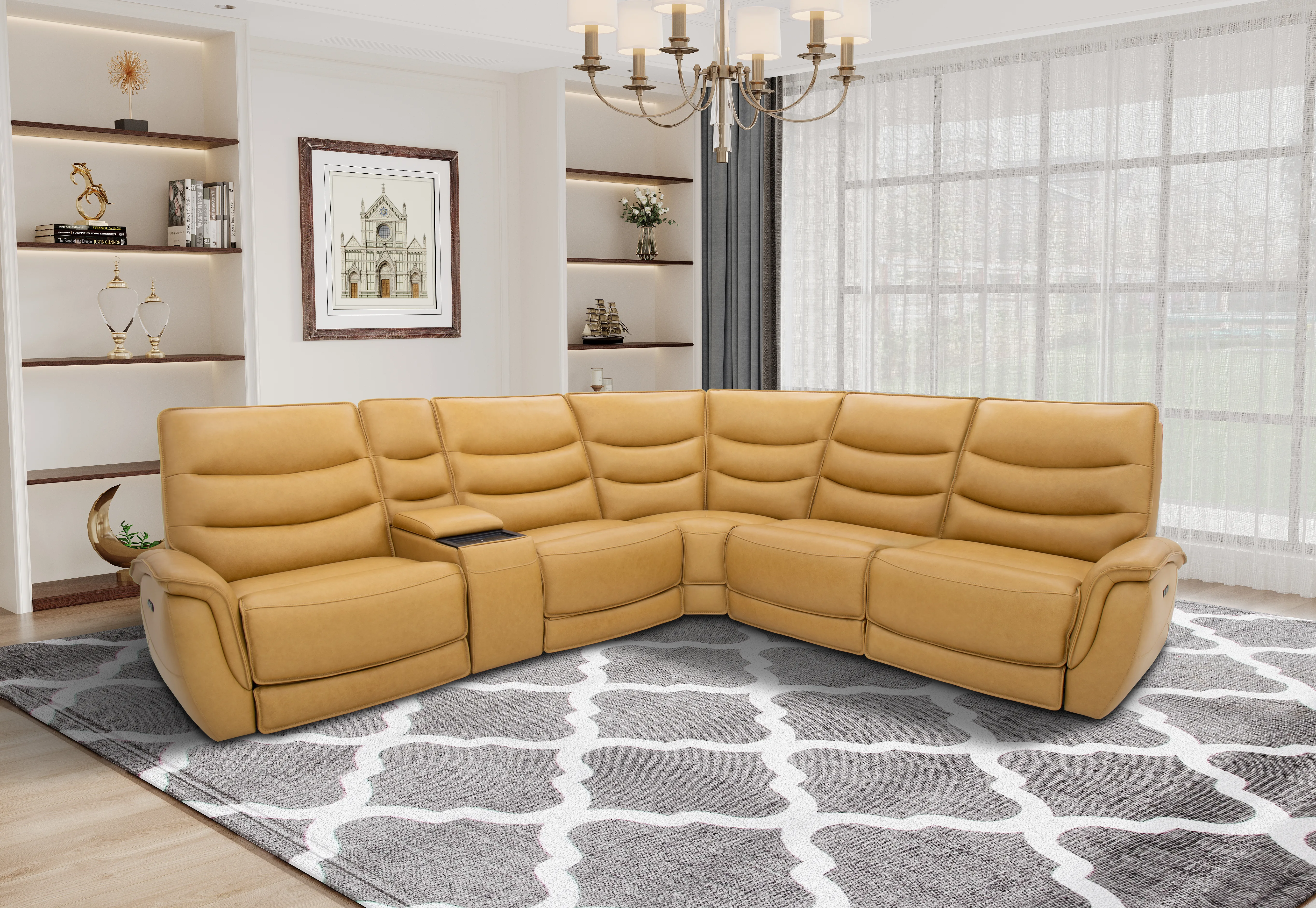 6 PC Power Reclining Sectional includes LAF Zero Gravity Recliner, Console w/ Cupholder Wireless LT, Power Headrest Armless Reciner, Corner Wedge, Armlesss Chair, & RAF 2P Recliner w/Power HeadRest.