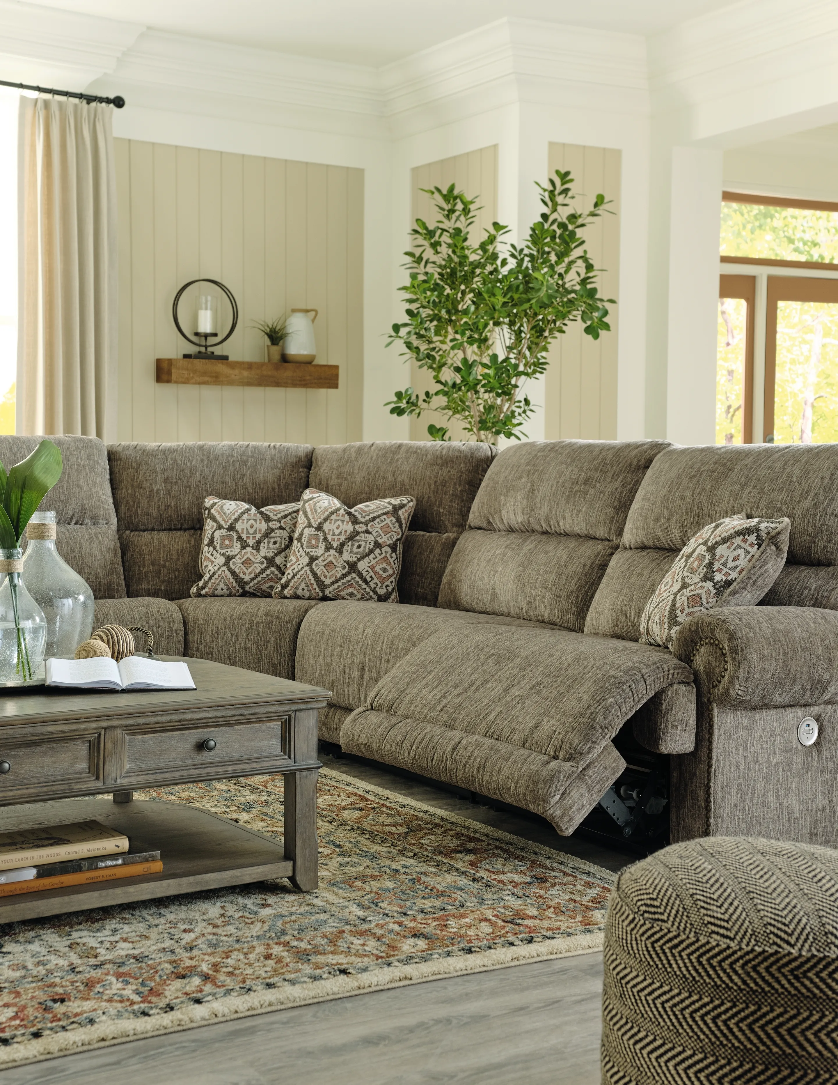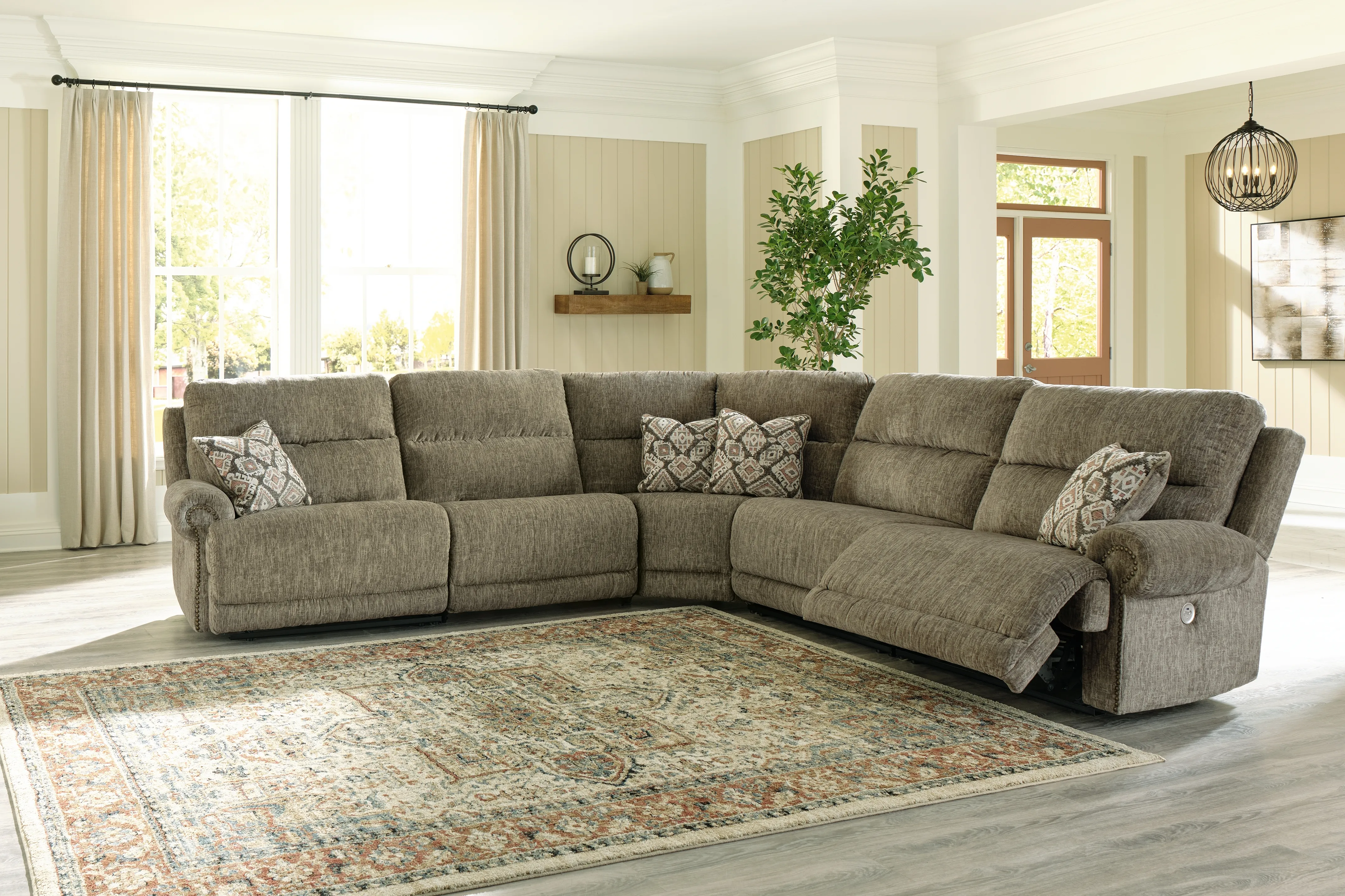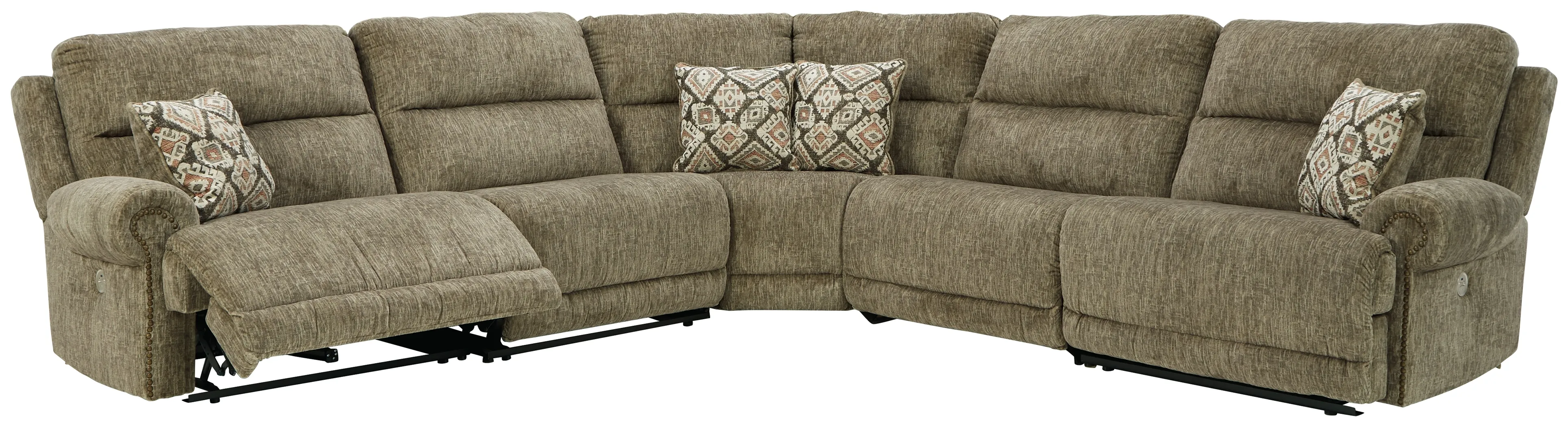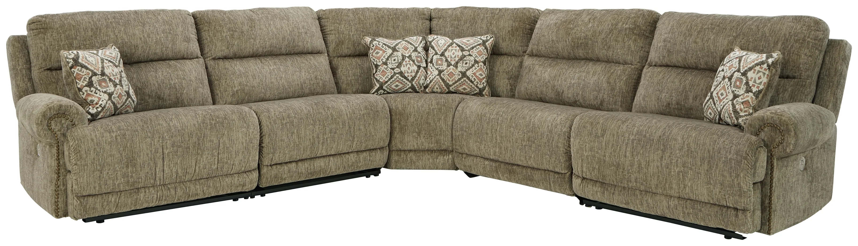 - Includes 5 pieces: left-arm facing power recliner, right-arm facing power recliner, armless recliner, wedge and armless chair