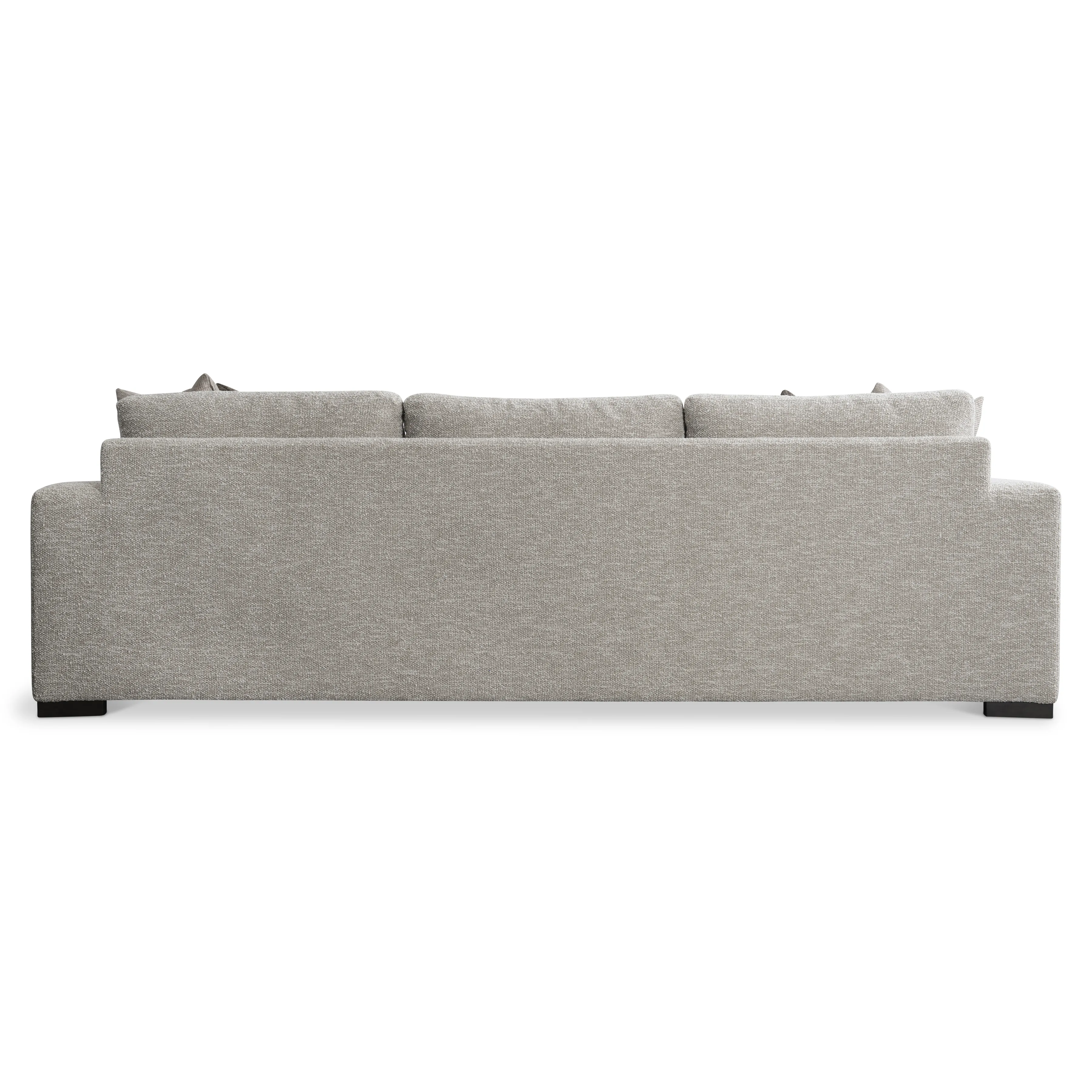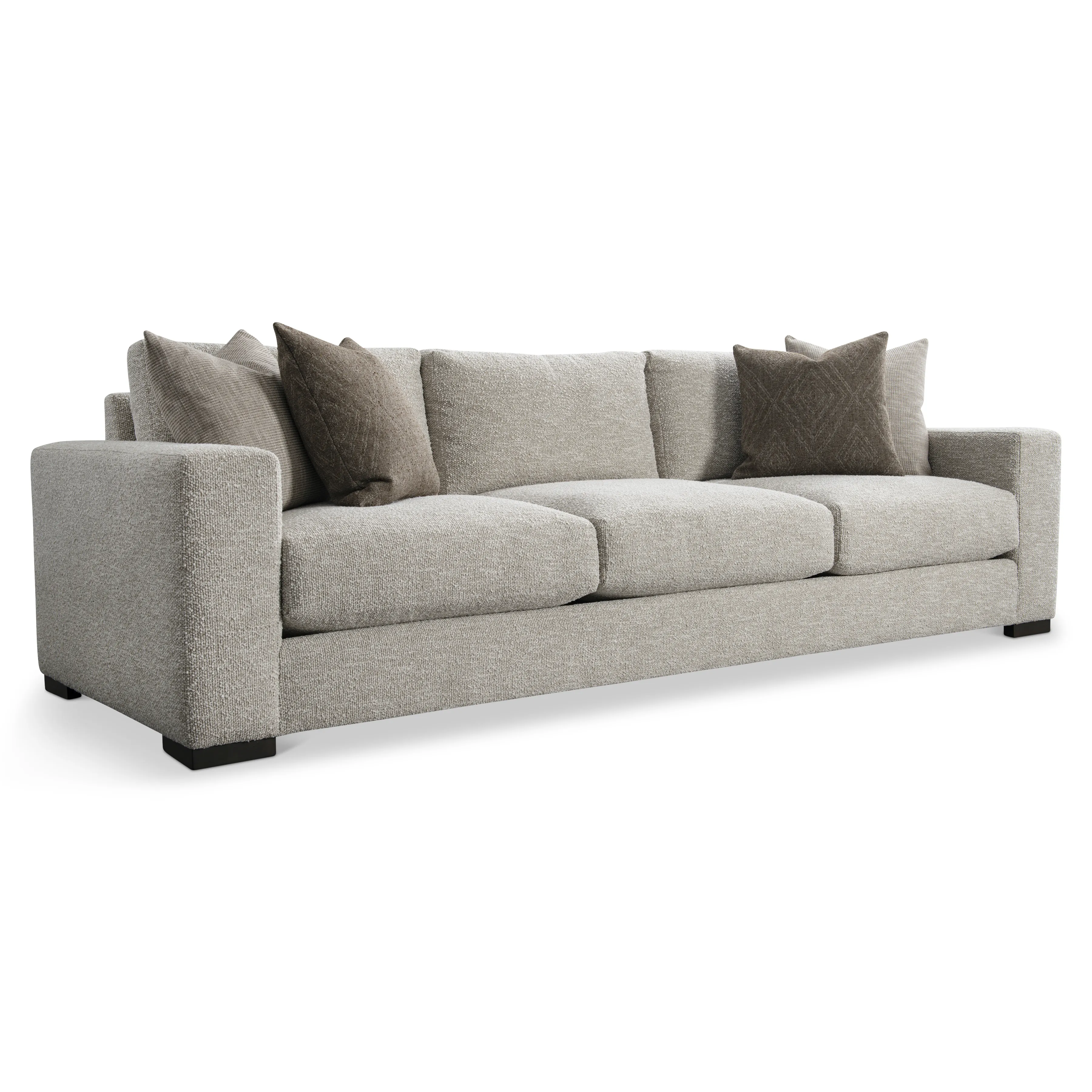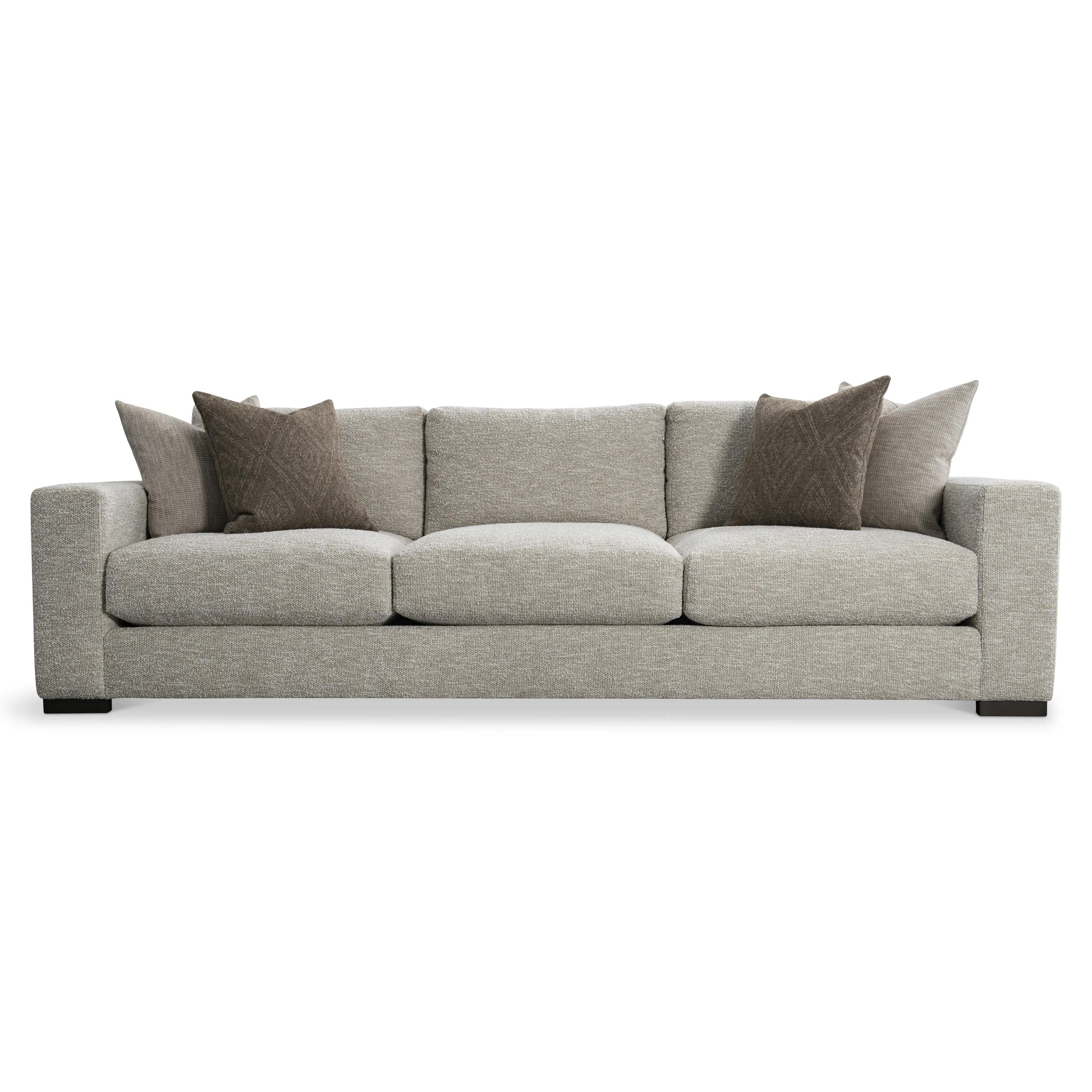 Stately and impressive, the Drew Sofa is impeccably upholstered and detailed to fill any space beautifully. Fiber back pillows lend comfort and support, while four coordinating accent pillows add polish and style. Elevated on chunky wooden legs, it's the perfect way to lend drama to a living area.
