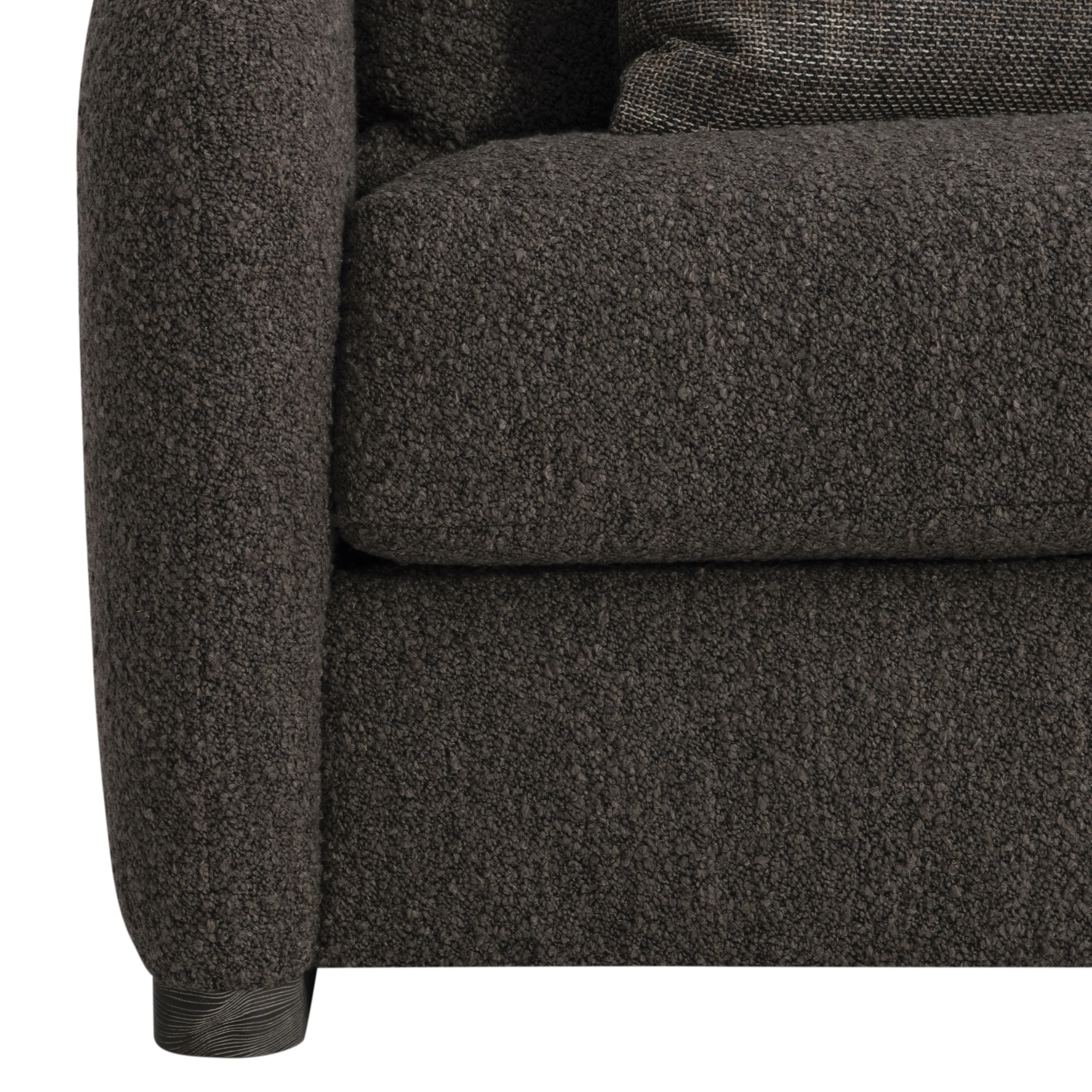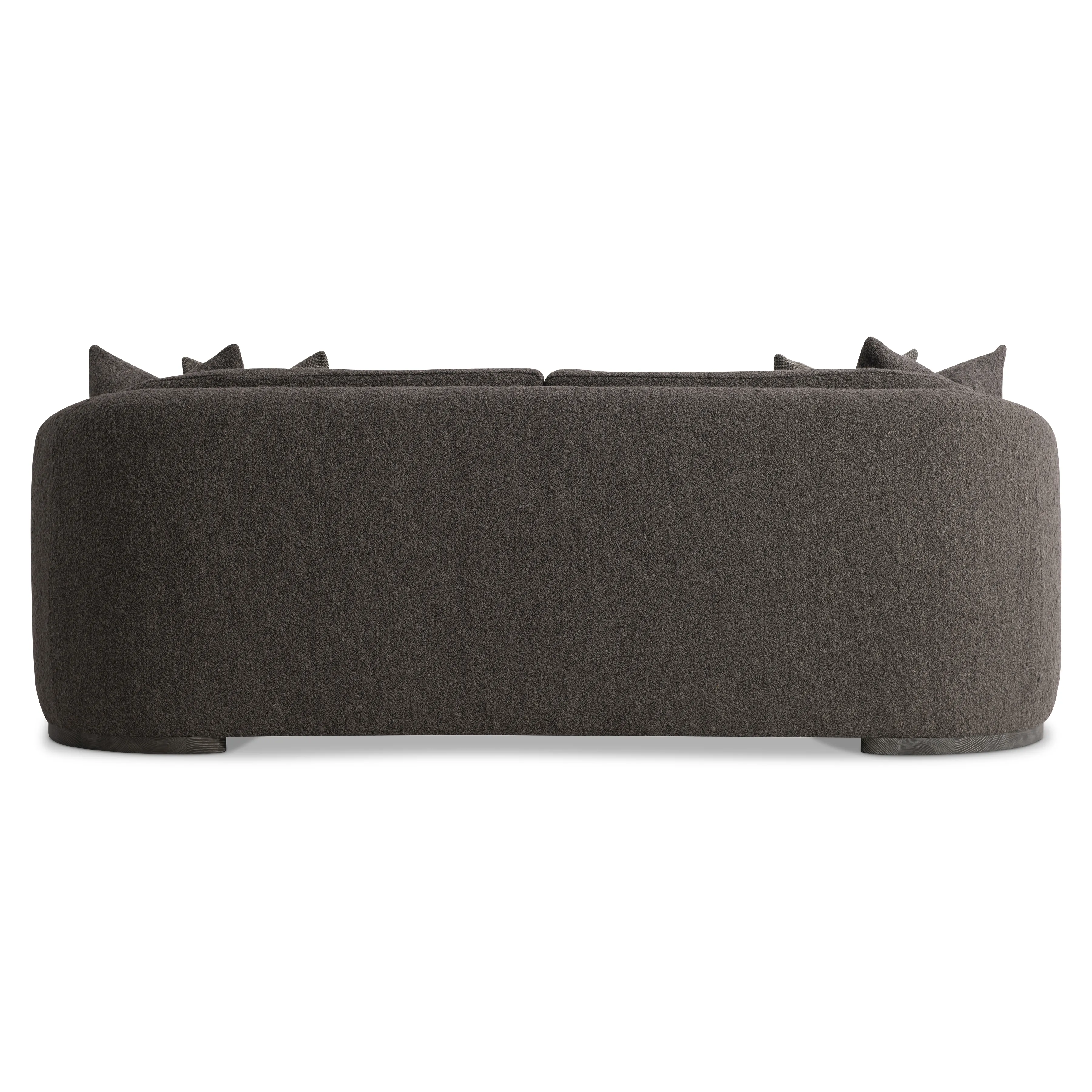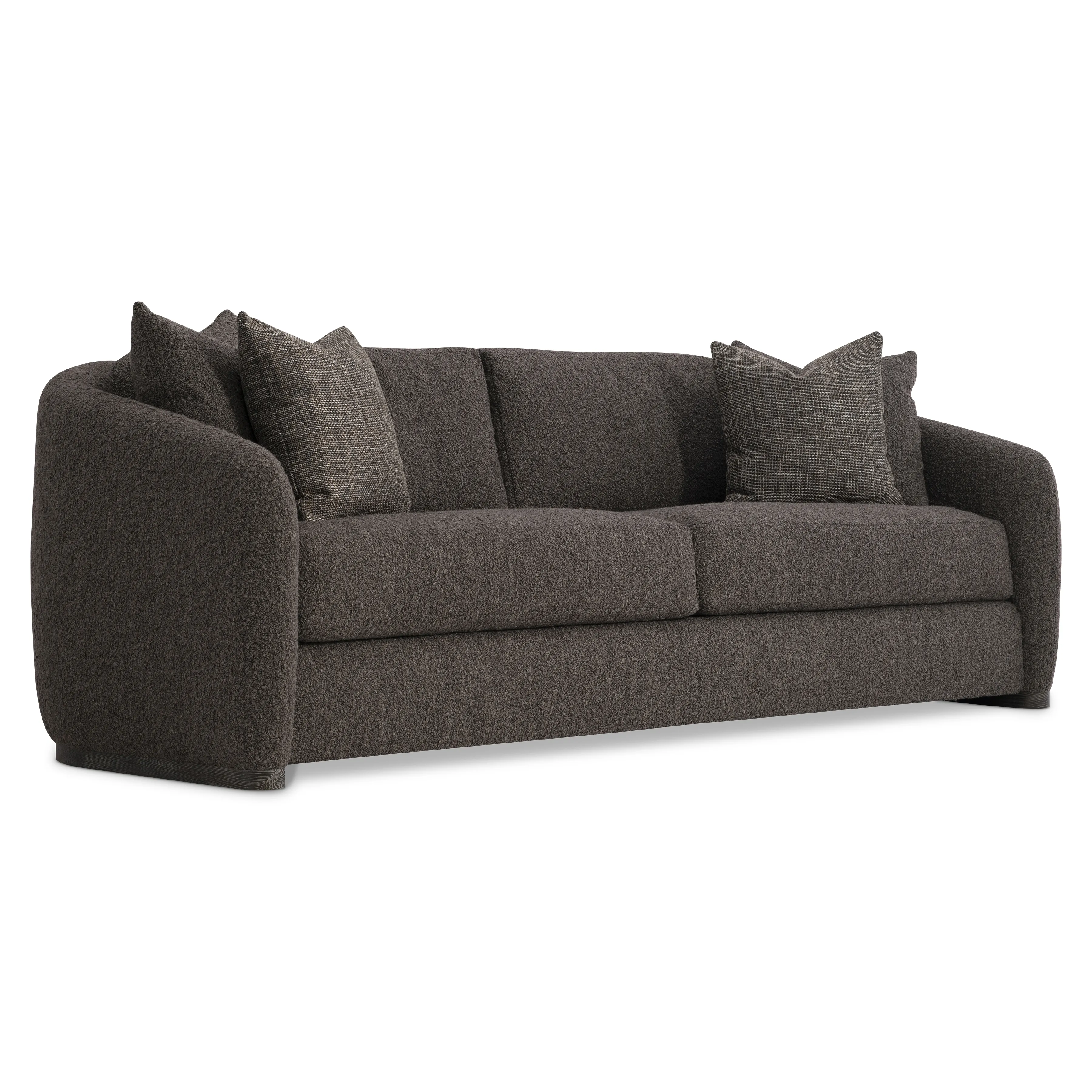 The Florence sofa has a shelter back that sweeps around to embrace the back pillows and deep seat cushions. Padded arms and a front rail provide added comfort. Plinth style rails on the base add a modern and unique detail.