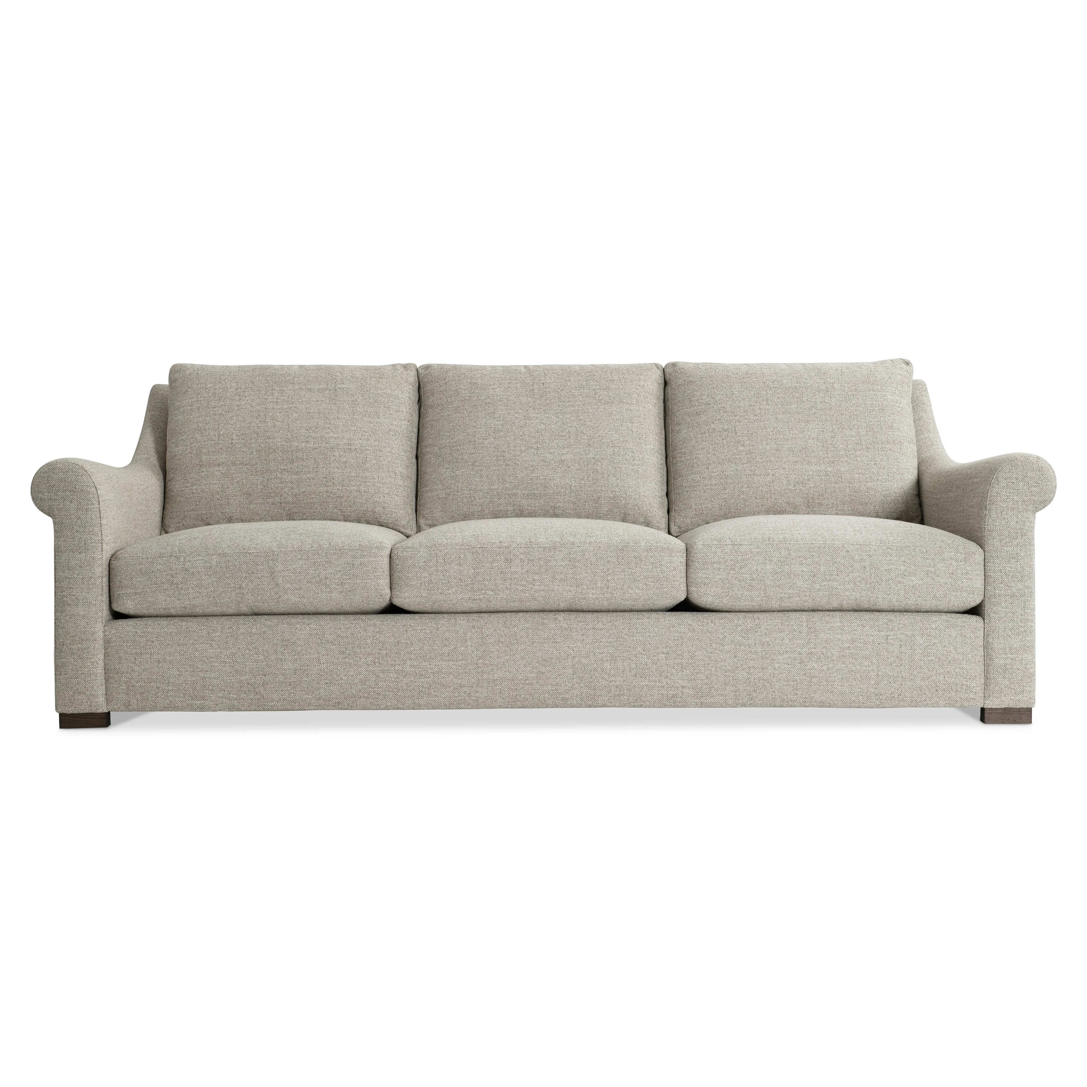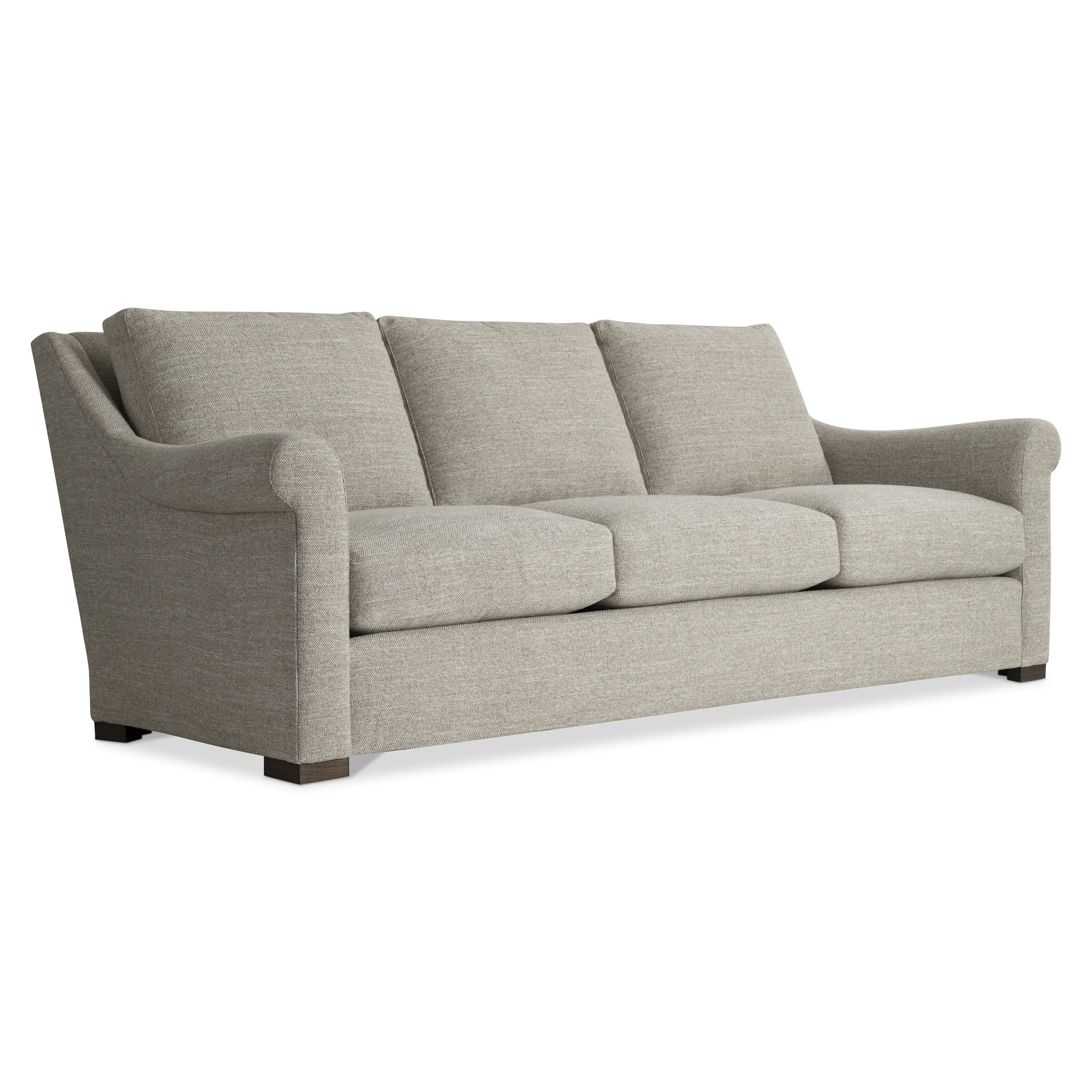 A traditional rolled arm finds a new freedom of expression with a gentle scroll on the Keirnan loveseat. The arm sweeps up to a softly sloping back that offers style and comfort. Knife-edge cushions complete the plush design for a modern take on a classic look.