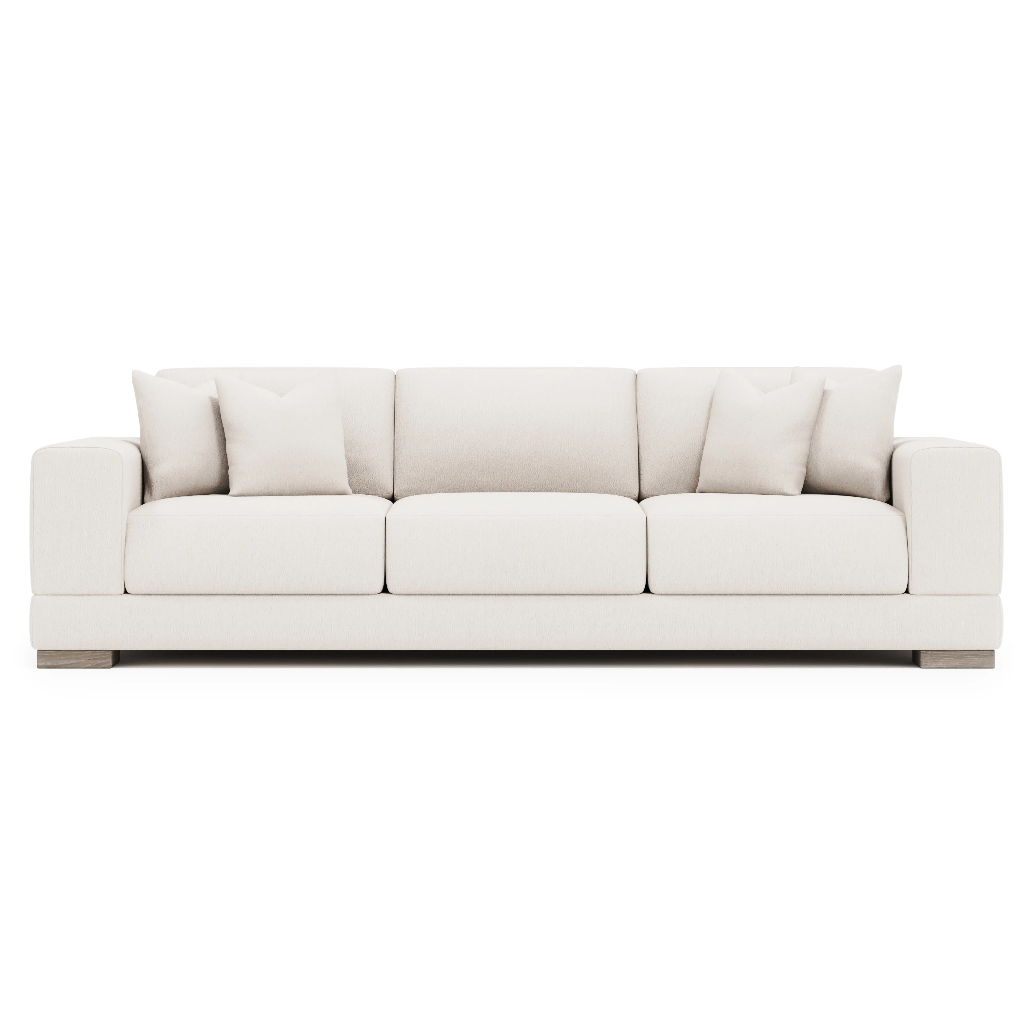Straight lines are softened with gentle curves on the Lars sofa, complementing the wide track arms and bold silhouette. Plush, deep seat cushions and box-edge bordered back pillows craft a comfort destination. Four wide block feet take a stance in textured wood.