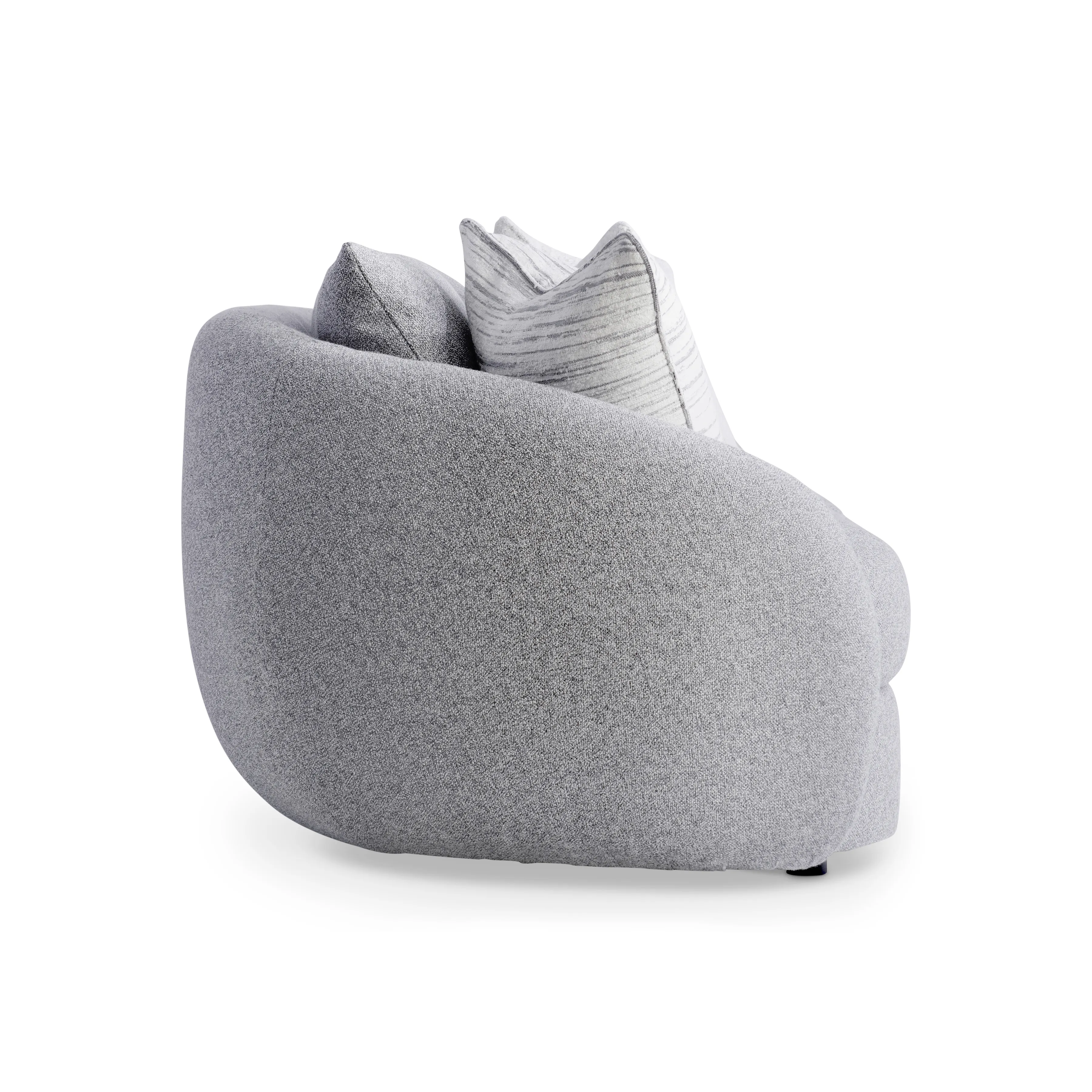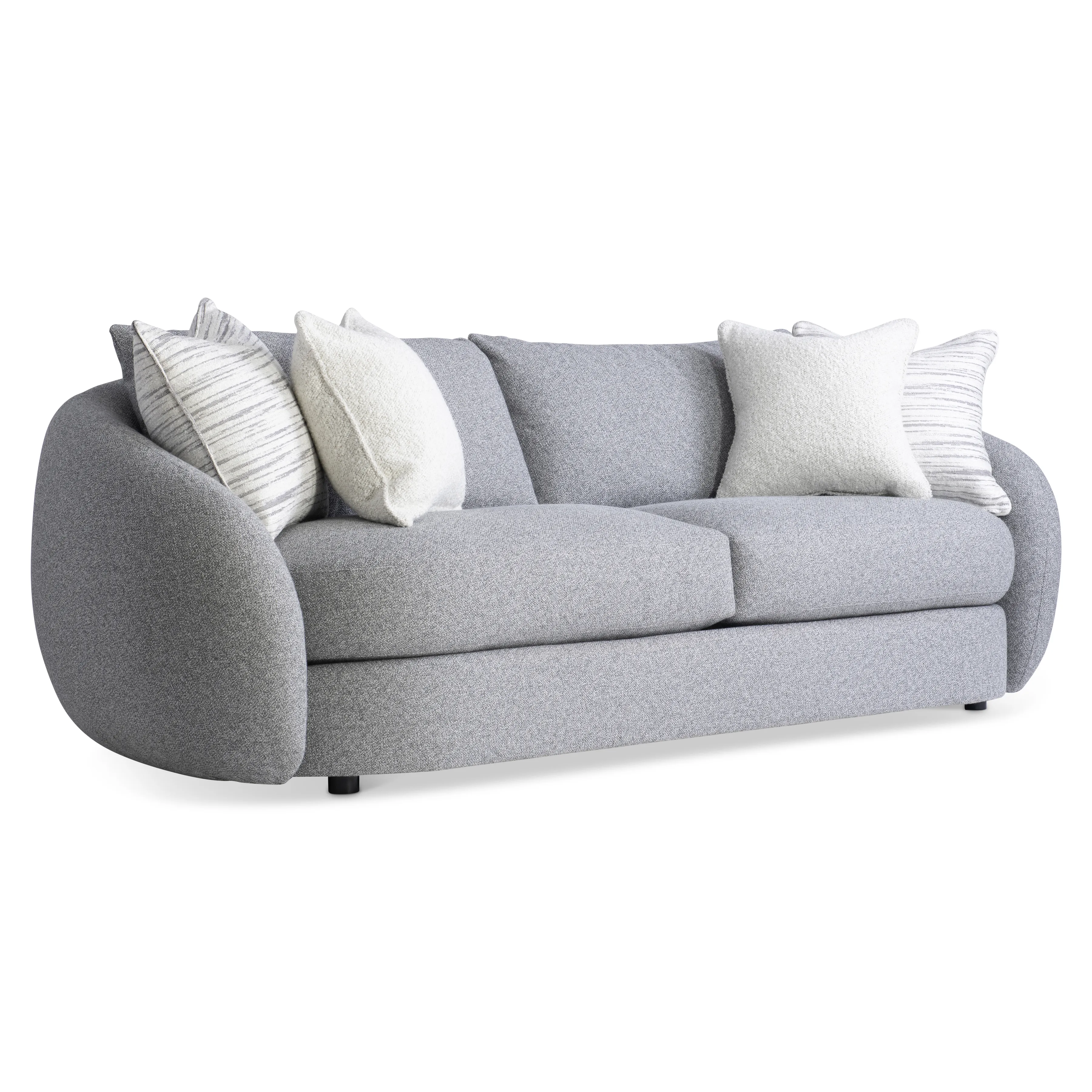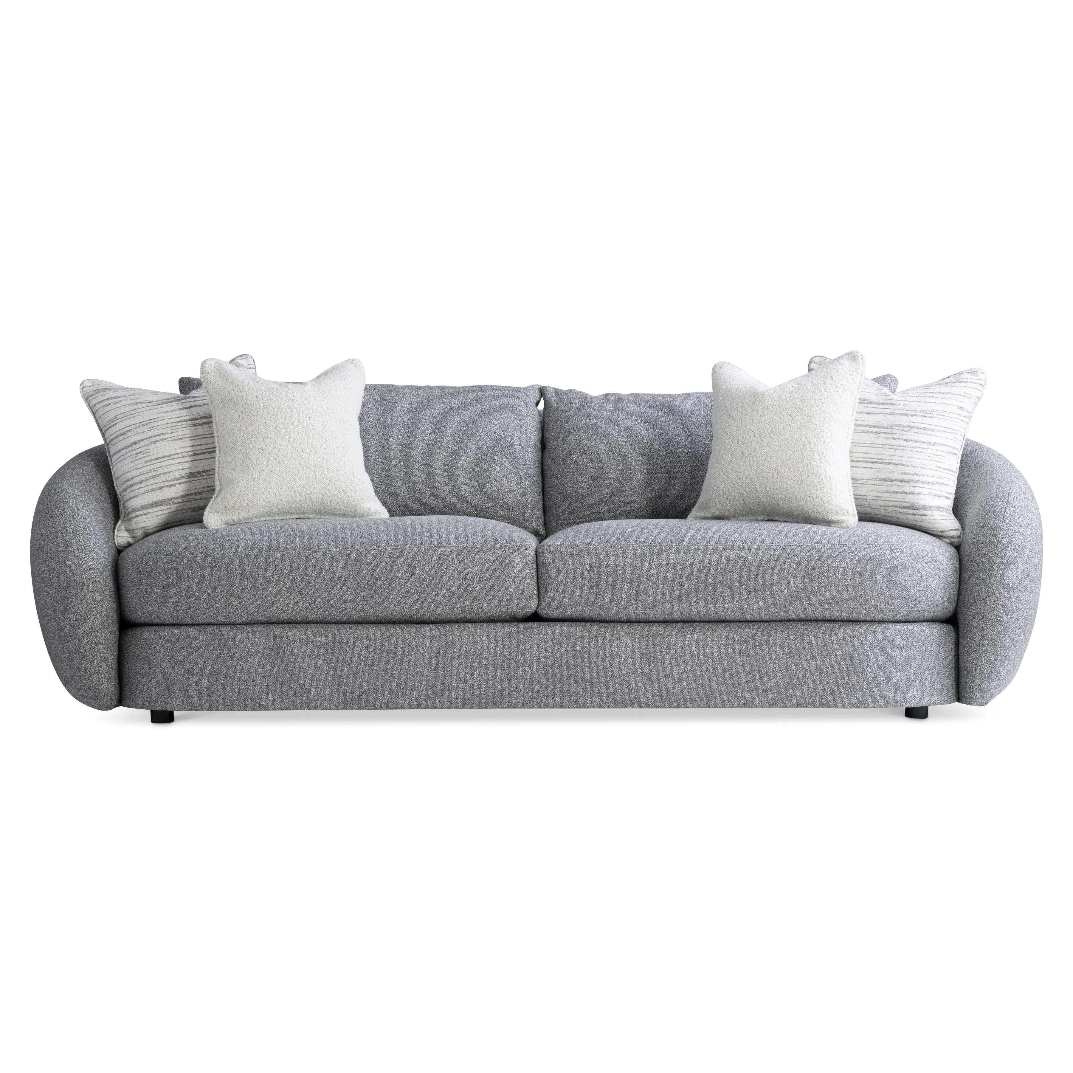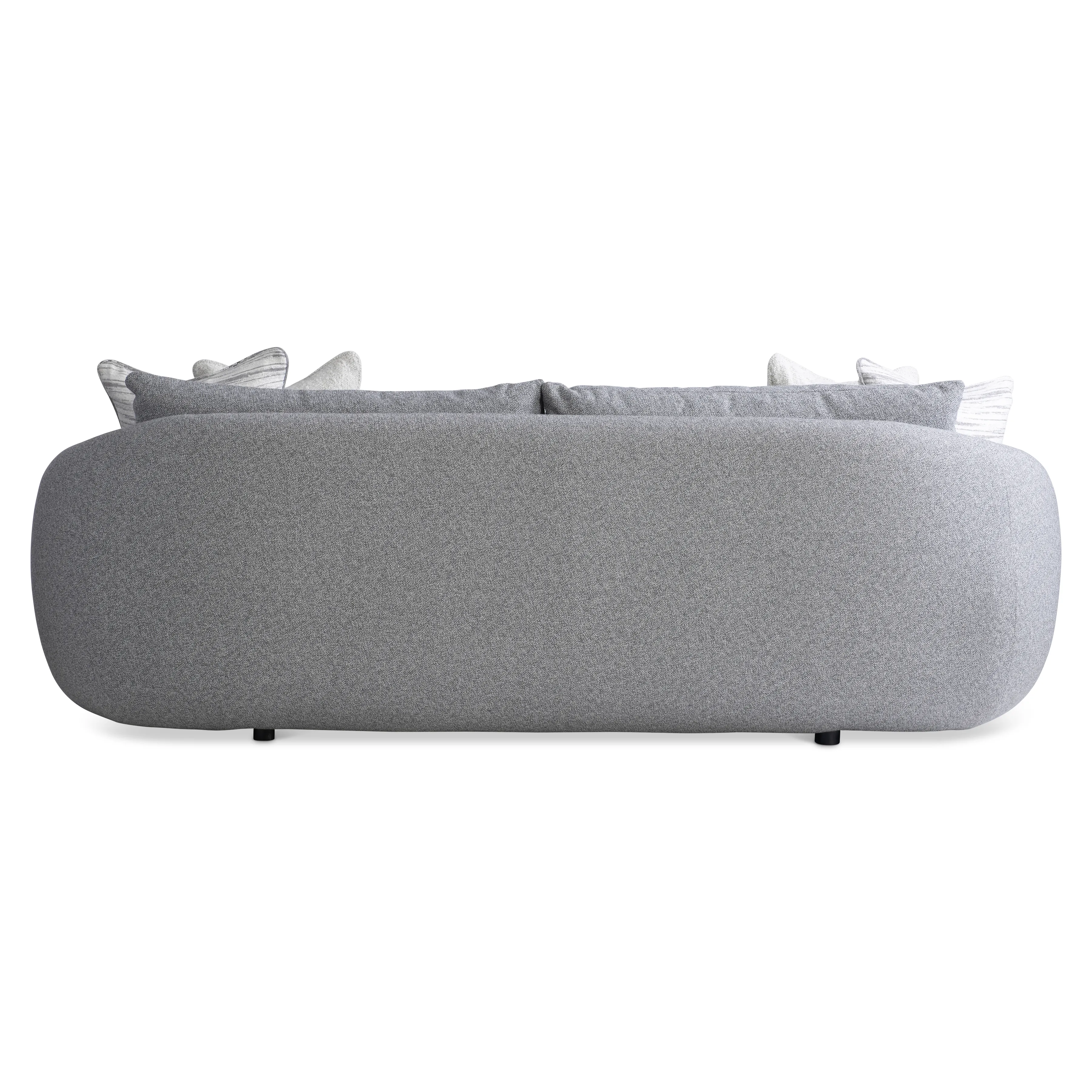 Inspired by a sheltering form, the back of the Moretti sofa is boldly shaped to curve around the seat with sweeping arms. The design embraces a deep seat with two lush cushions. And the comfort story continues with two knife-edge back pillows.