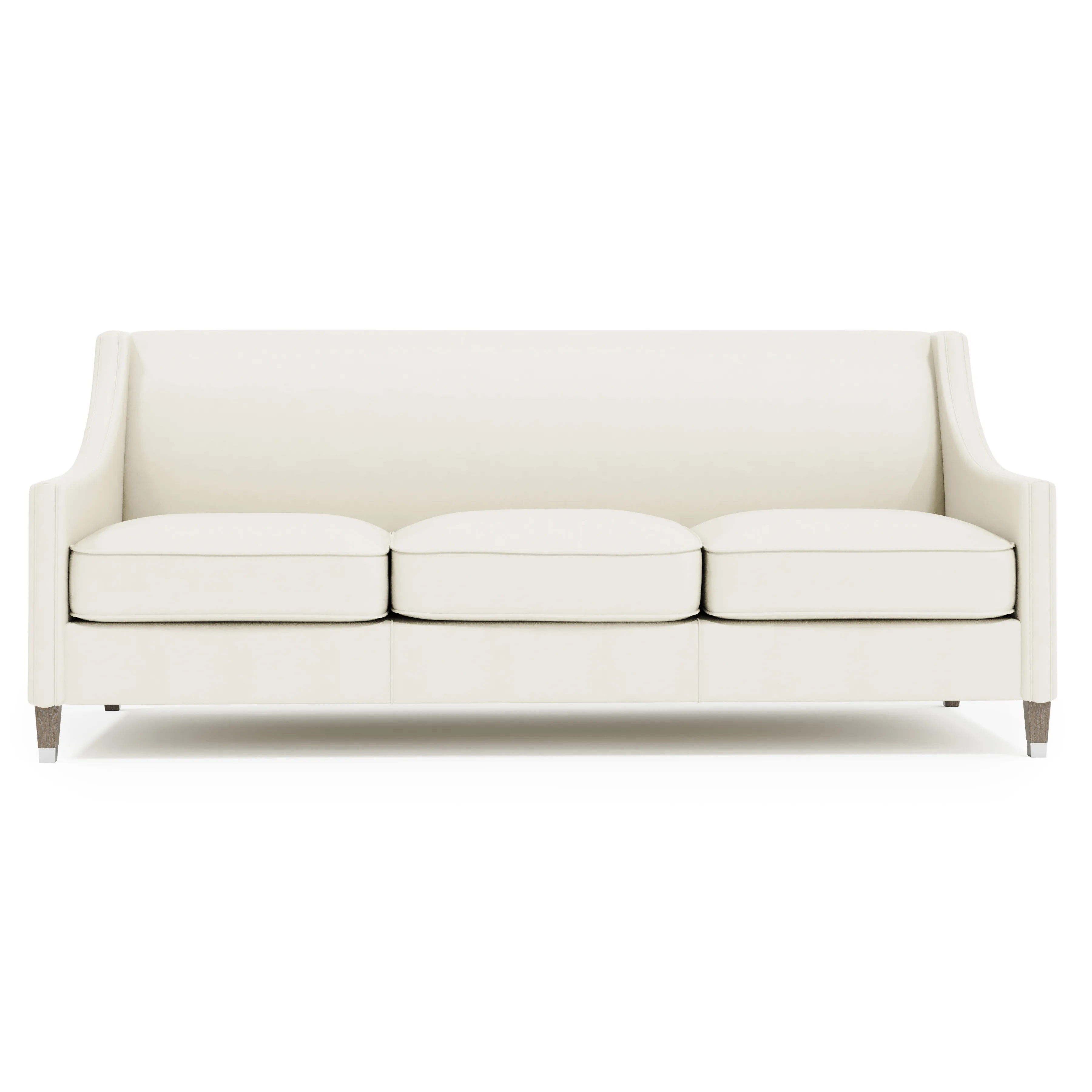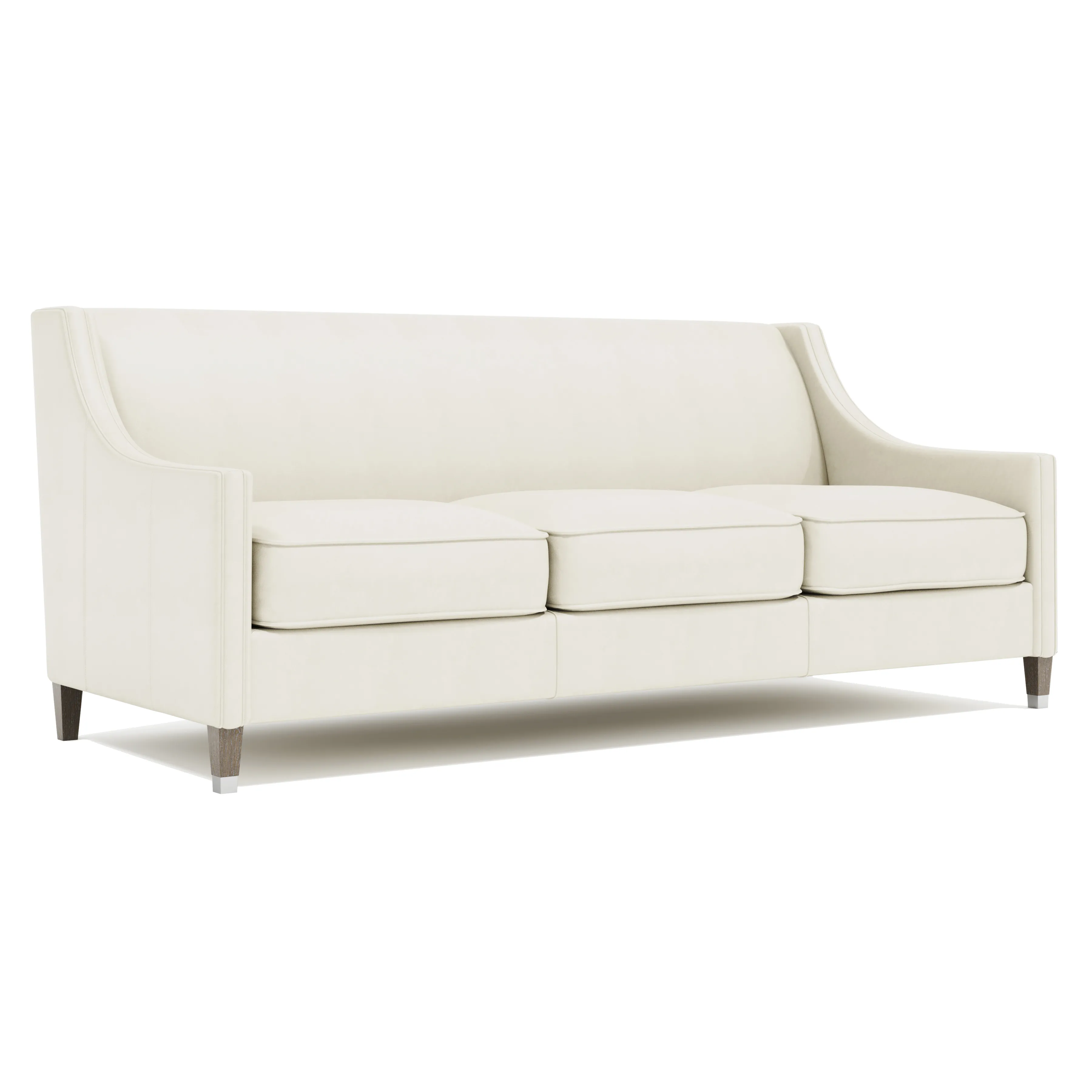 The Palisades leather sofa exhibits fine craftsmanship and a distinctly modern styling. Elegant sloped arms and sleek tapered legs add to the sophisticated appeal of this piece, while welt trim and welting accentuate the graceful curves and clean lines. Tapered legs capped in metal ferrules provide a chic final touch. This sofa delivers a luxurious, modern aesthetic.