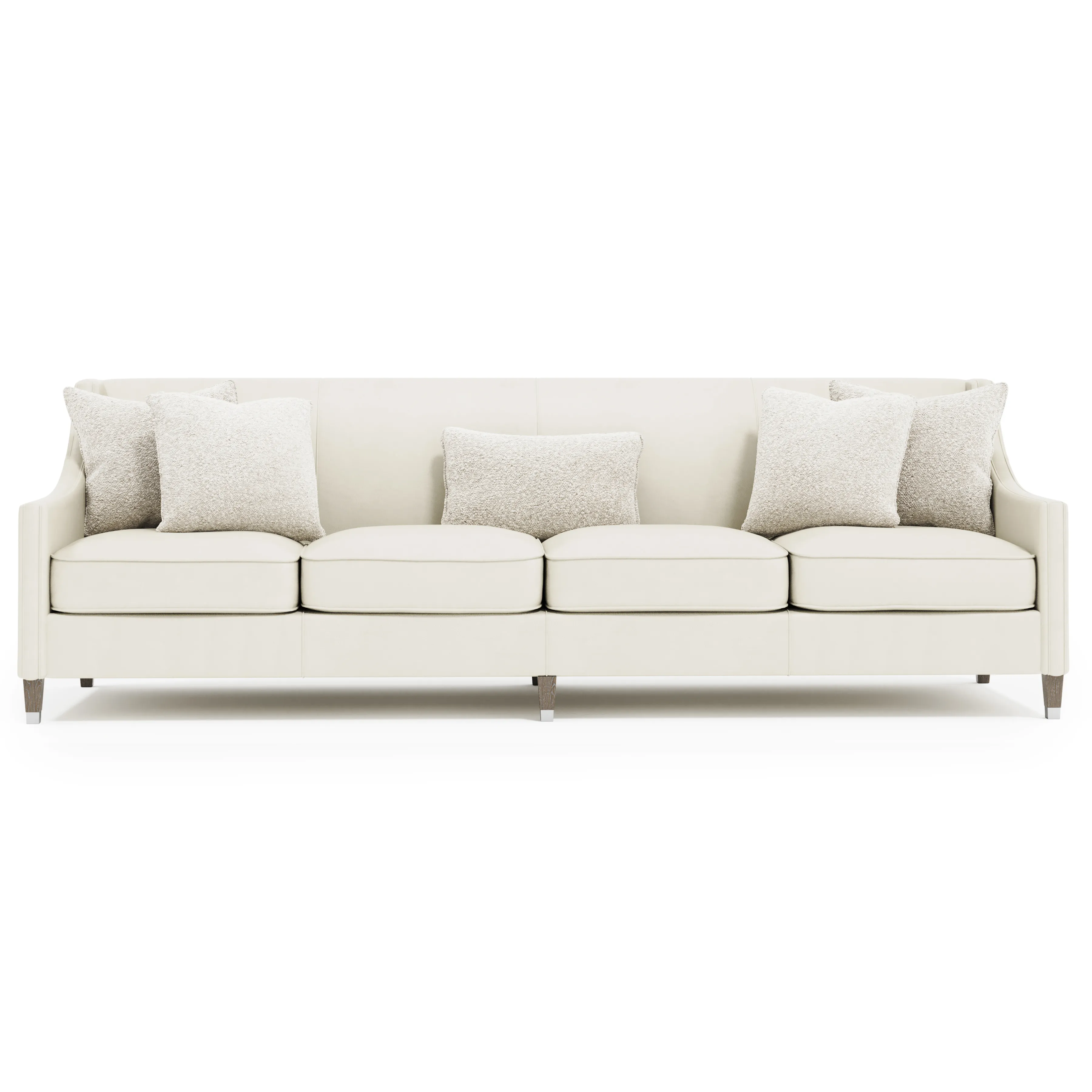 The Palisades leather sofa exhibits fine craftsmanship and a distinctly modern styling. Elegant sloped arms and sleek tapered legs add to the sophisticated appeal of this piece, while welt trim and welting accentuate the graceful curves and clean lines. Tapered legs capped in metal ferrules provide a chic final touch. This sofa delivers a luxurious, modern aesthetic.