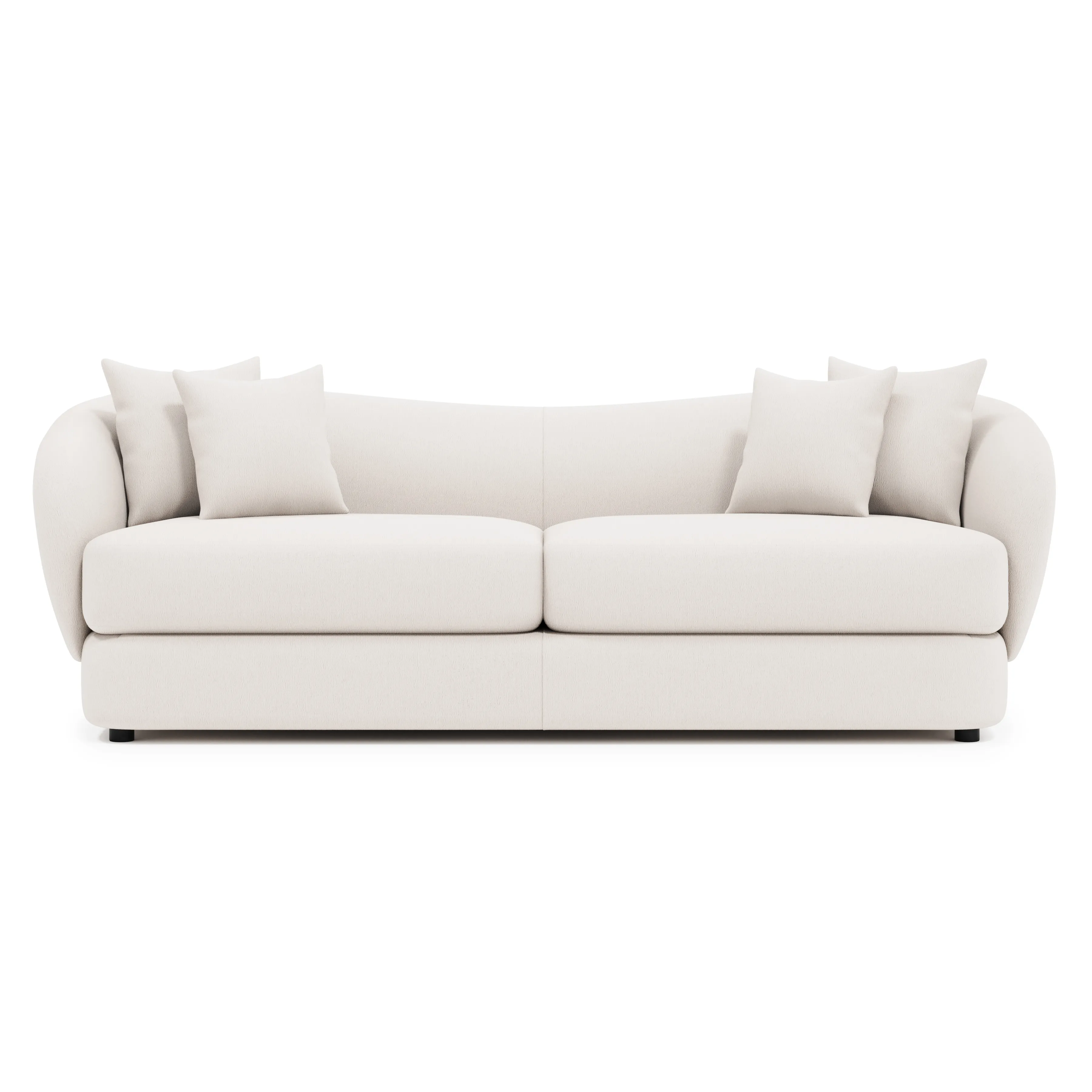The back of the Margot sofa curves to create embracing shelter arms for a comforting design. Two deep seat cushions and tight back upholstery offer tailored details. Round feet can be completed in any Bernhardt finish.