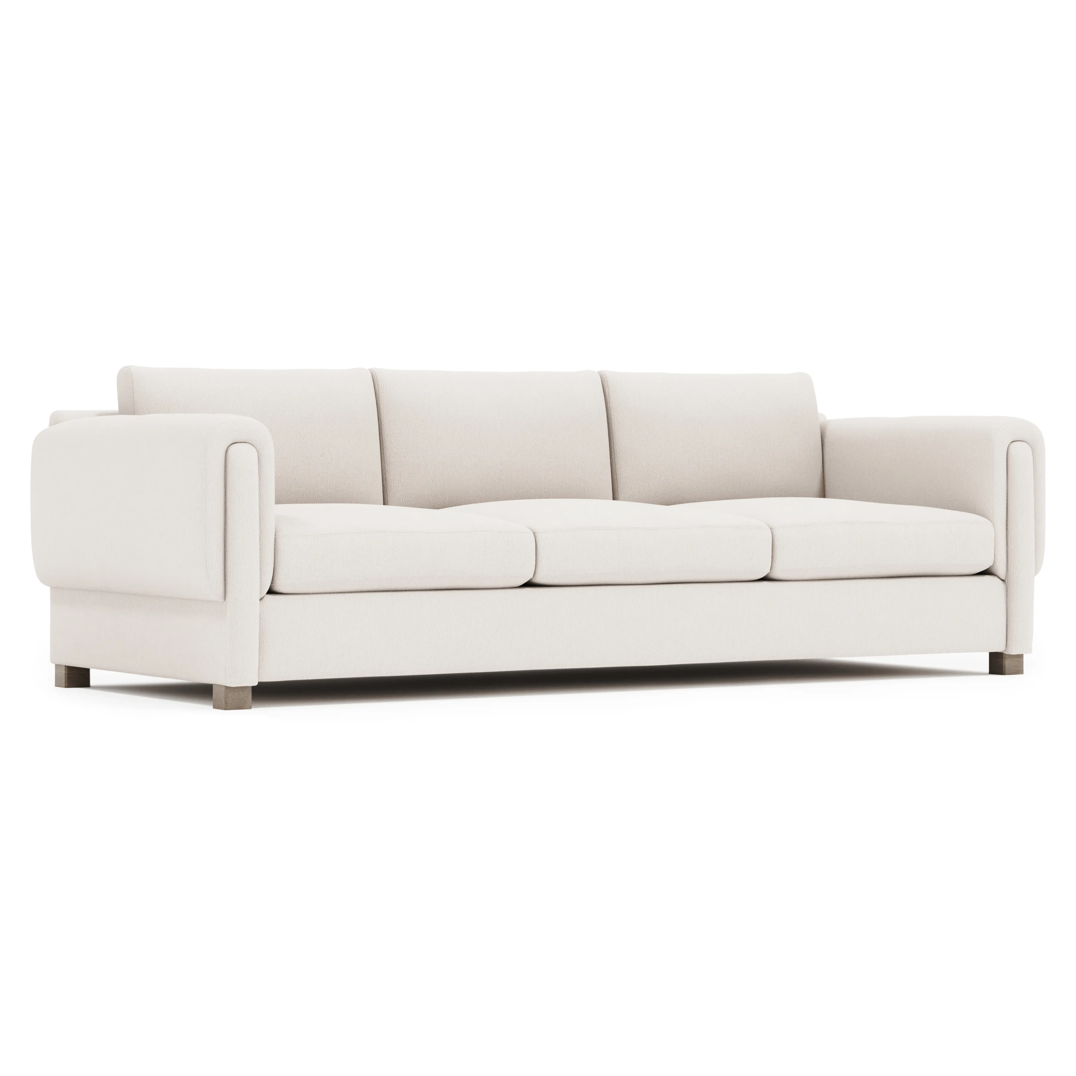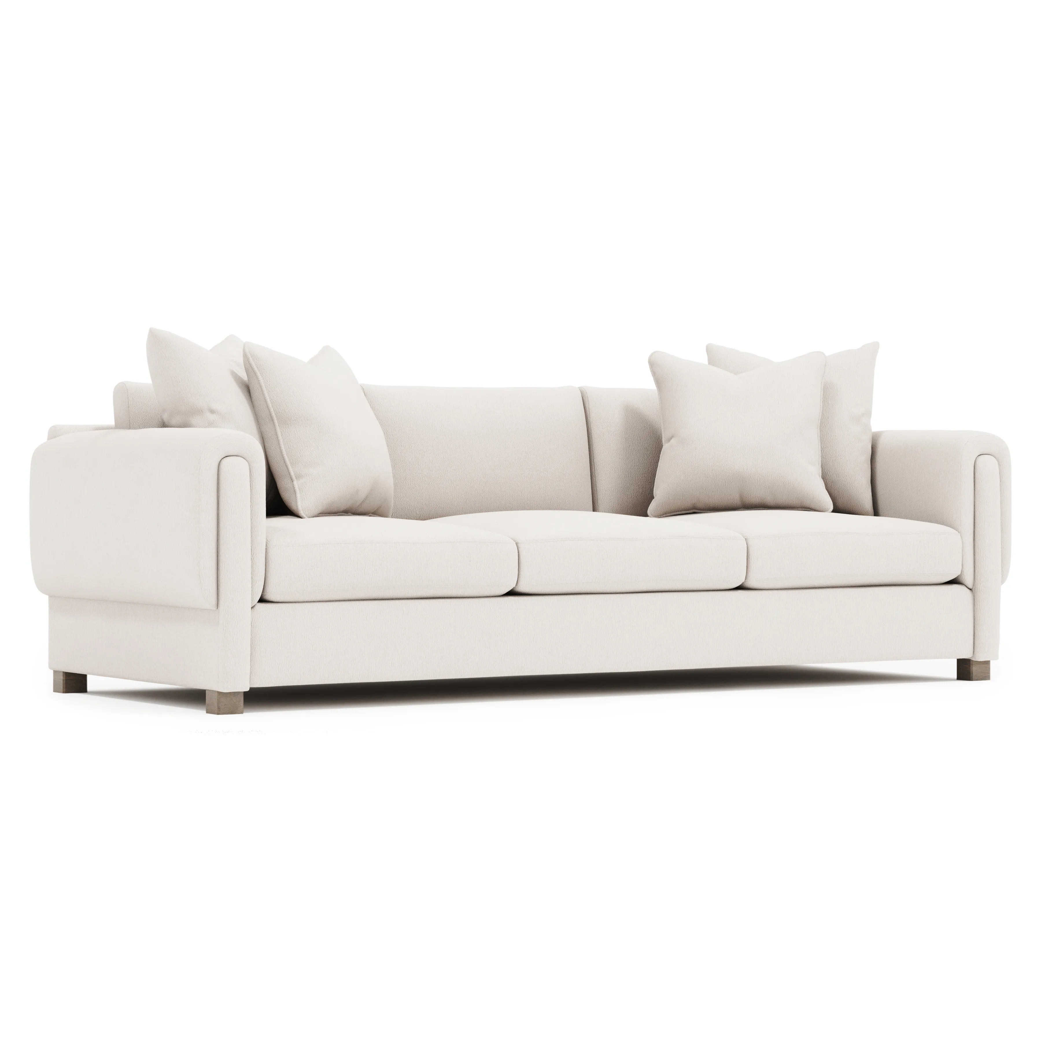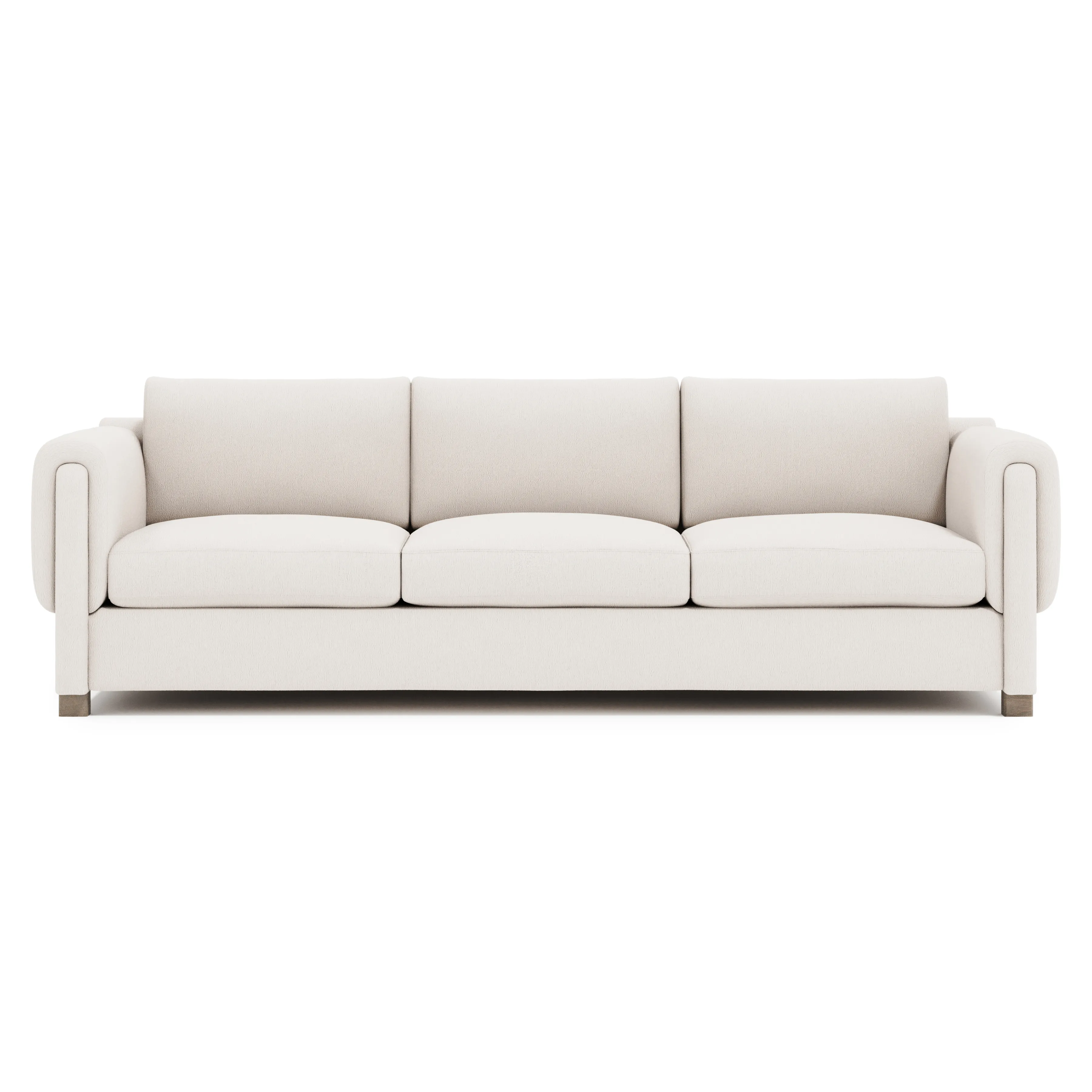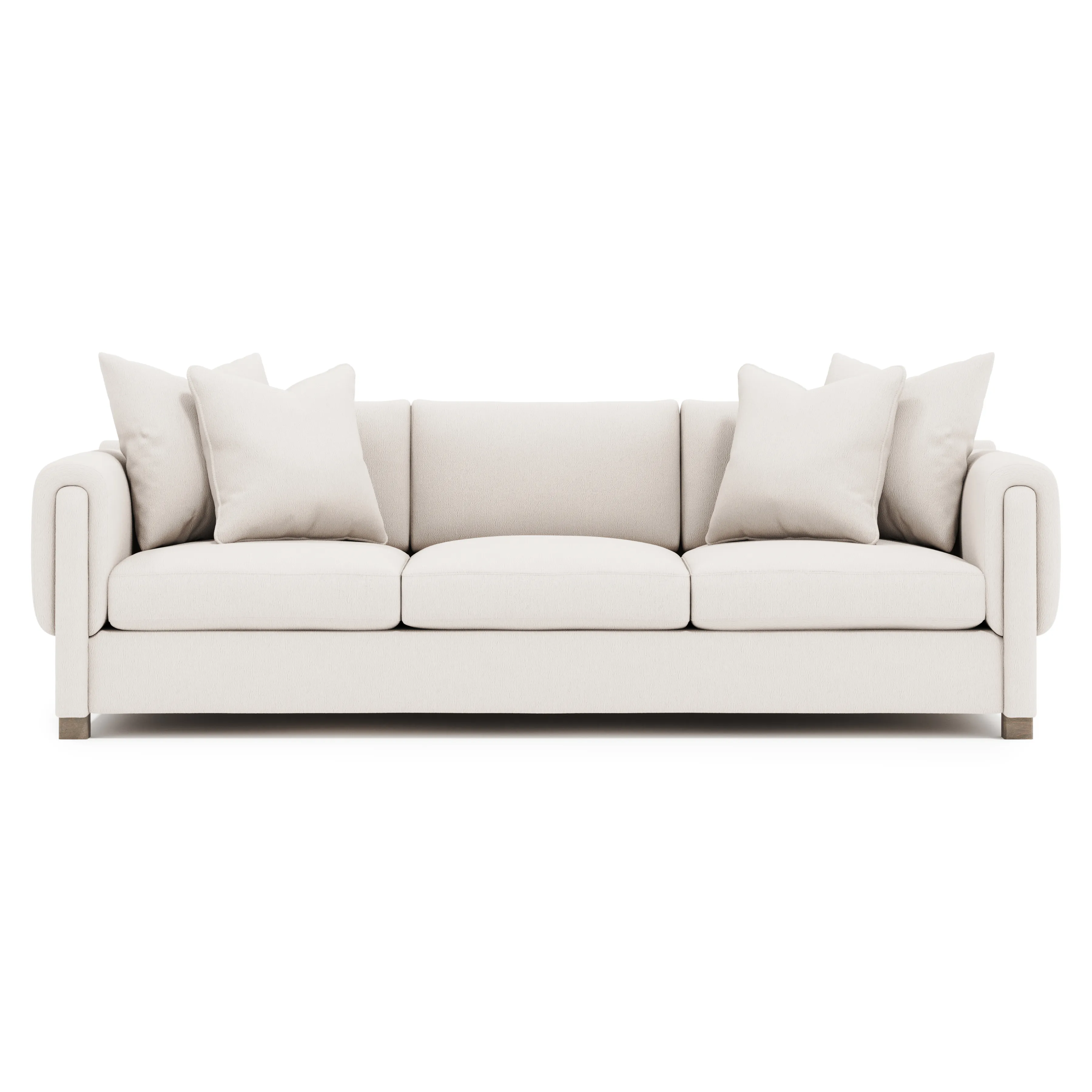 The Tori sofa has a unique arm design, with a generous layer of cushioning wrapped around each side. Deep seats, plush back cushions and throw pillows combine to provide a modern comfort destination.