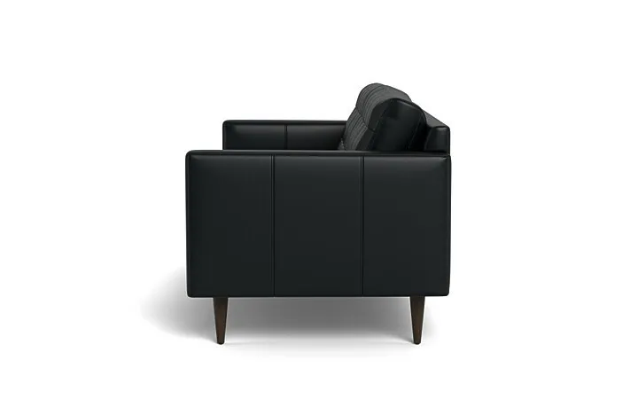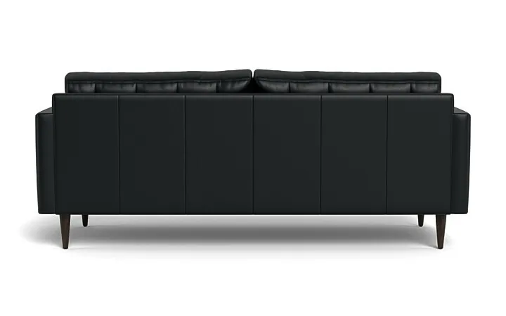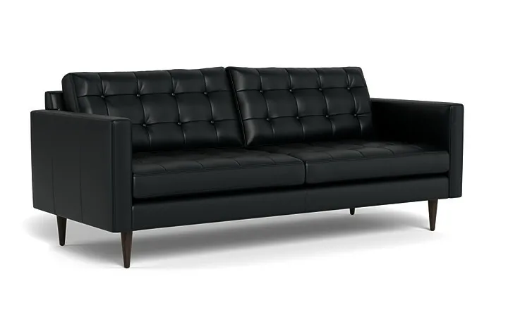 This Wallace sofa in leather is a Mid-Century lover's dream. Hand-sewn tufted buttons radiate a retro charm that echoes off the elegant arms and individually-crafted wooden tapered legs. Made in Austin, the Wallace is our longest-selling collection for a reason!