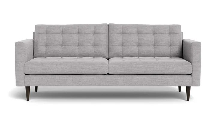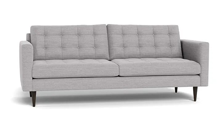 The Couch Potatoes Wallace Sofa radiates mid-century retro charm and vintage glamor with a touch of versatility. The button-tufted cushioning and tapered wooden legs give it a Mid-Century Modern look that is appealing for all homes. Custom make your Wallace sofa with our wide selection of other great fabric and leather options. The standard height Wallace seat sits at 19”. This sofa has a standard seat depth, and has firm cushions.