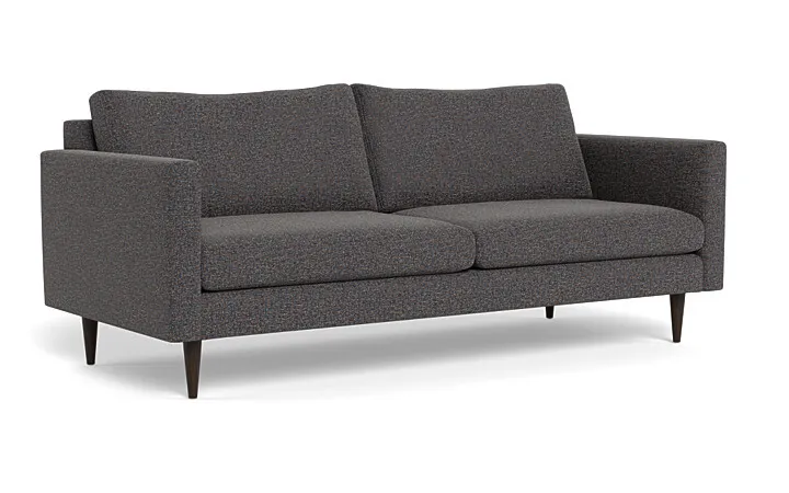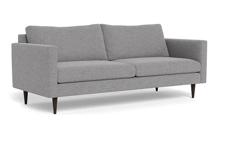 The Couch Potatoes Wallace Untufted Sofa features untufted back cushions and clean lines for a sophisticated feel. The wooden tapered legs of this sofa accentuate its Mid-Century style, and take this modern shape to an elevated level. Custom make your Wallace Untufted Sofa with our wide selection of other great fabric and leather options. The standard height Wallace seat sits at 19”. This sofa has a standard seat depth, and has firm cushions.