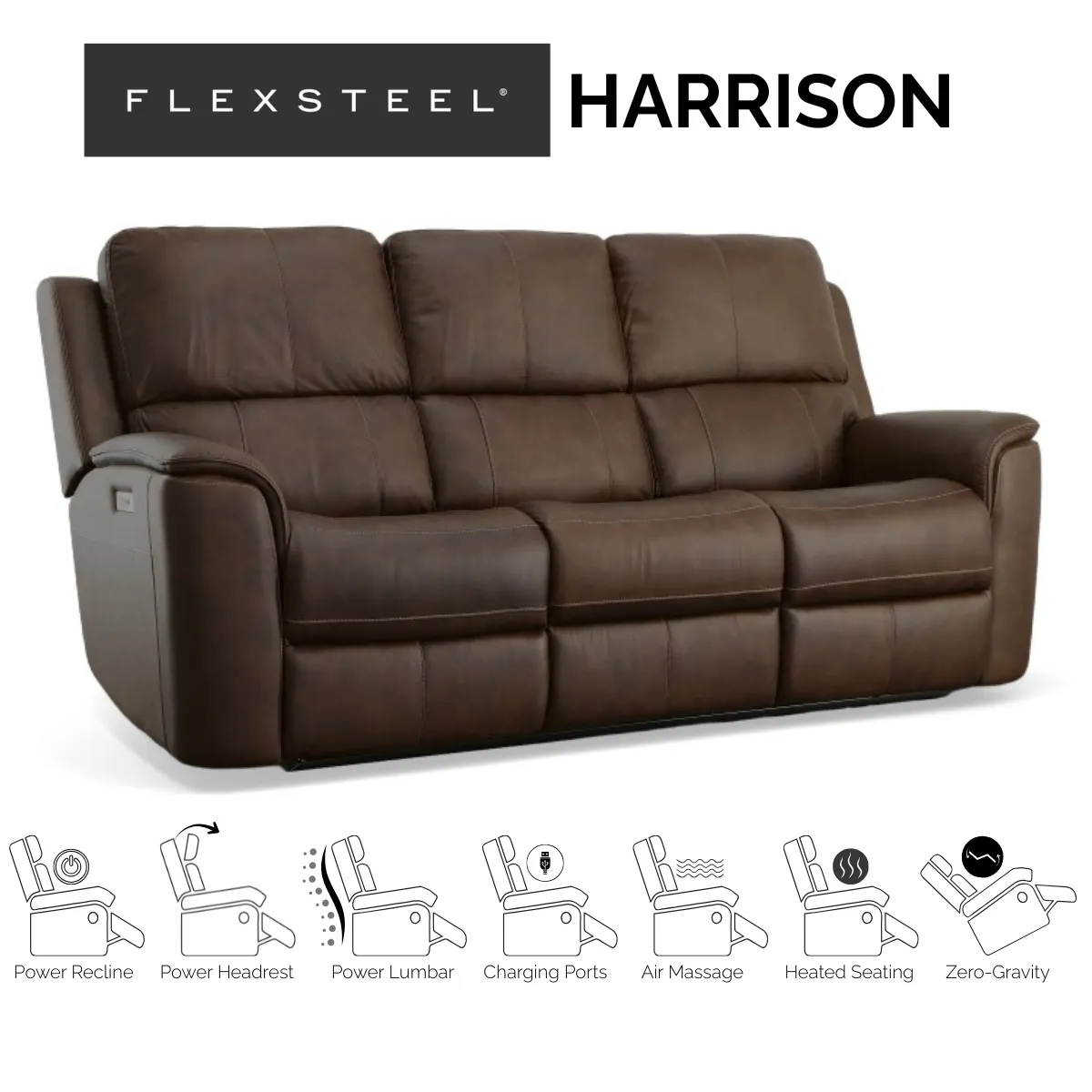 The Flexsteel Harrison Leather Power Reclining Sofa delivers refined style, advanced comfort features, and long-lasting durability in one beautifully tailored design. Built with Flexsteel’s patented Blue Steel Spring™ seat system, this sofa provides unmatched support that holds its shape and comfort through years of daily use.