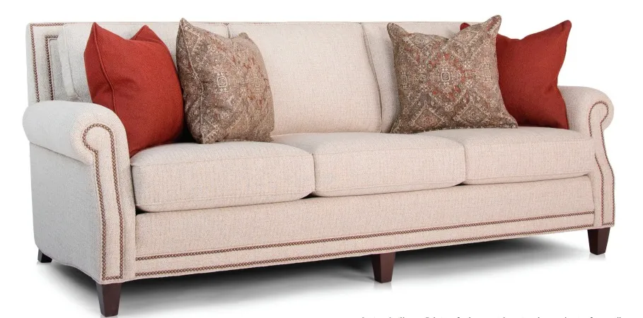 Inside back: Semi-attached ü ü Toss pillows: One pair 20" style #13 square pillows with sofa and loveseat - Pillows are standard in the same fabric as your furniture, but may be ordered in a different fabric as long both pillows are in the same fabric of each other. Nailhead: Small size standard around along base, inside back, and arm panels. Available in your choice of finish options. Nailhead cannot be removed. Leg type: Tapered front legs and shaped back legs (all legs are non-removable) Available in your choice of finish options.