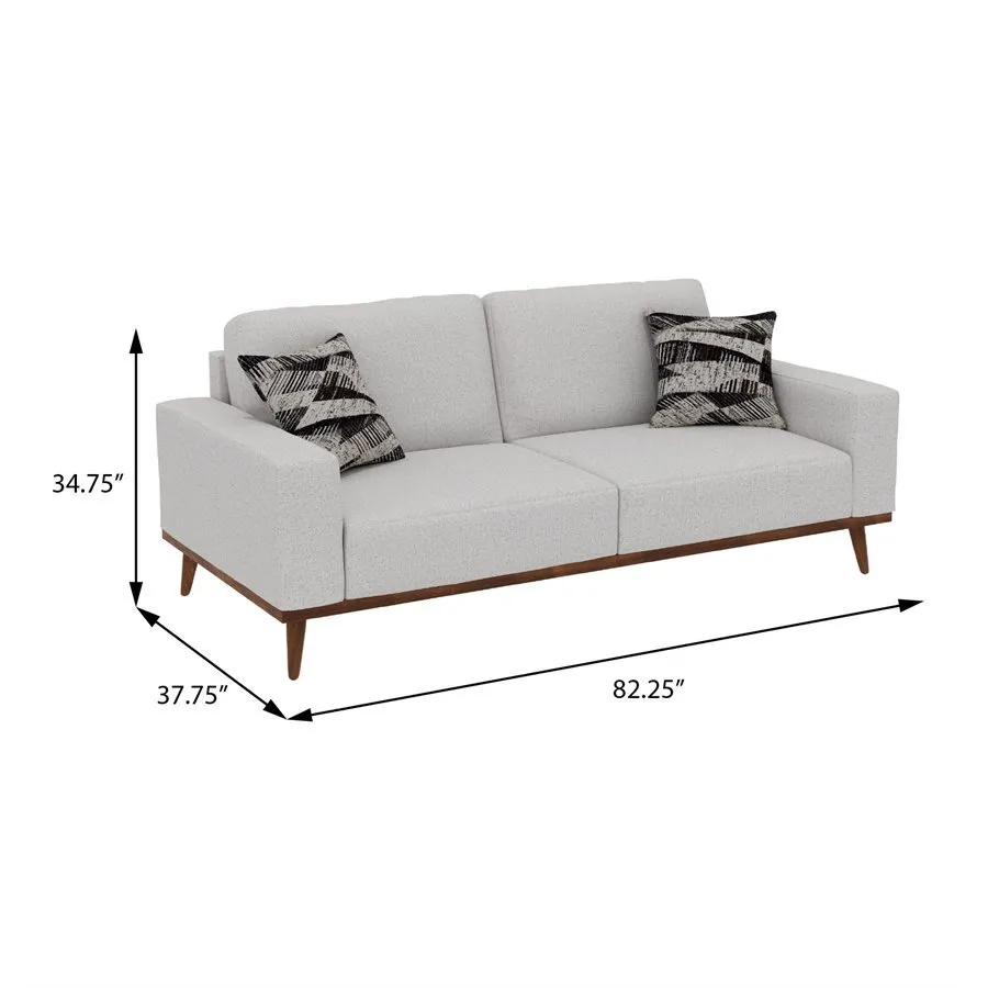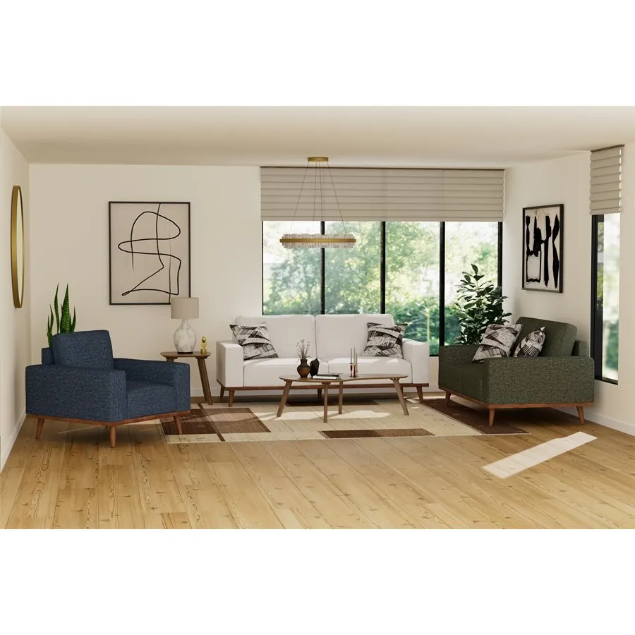 The Heath Collection takes relaxation to a whole new level. As you sink into the supportive cushions, you’ll appreciate the dark walnut-toned solid wood trim, tapered legs, and track arms that give this mid-century modern collection its sophisticated edge. Available in rich dark green, striking navy blue, and soft cream, each upholstery choice enhances the natural beauty of the exposed wood and complements any decor. Mix and match these colors to create your own set, with included abstract print accent pillows that tie the look together. With fixed back and seat cushions supported by sinuous springs and individually pocketed coils, the Heath Collection promises lasting comfort and style.