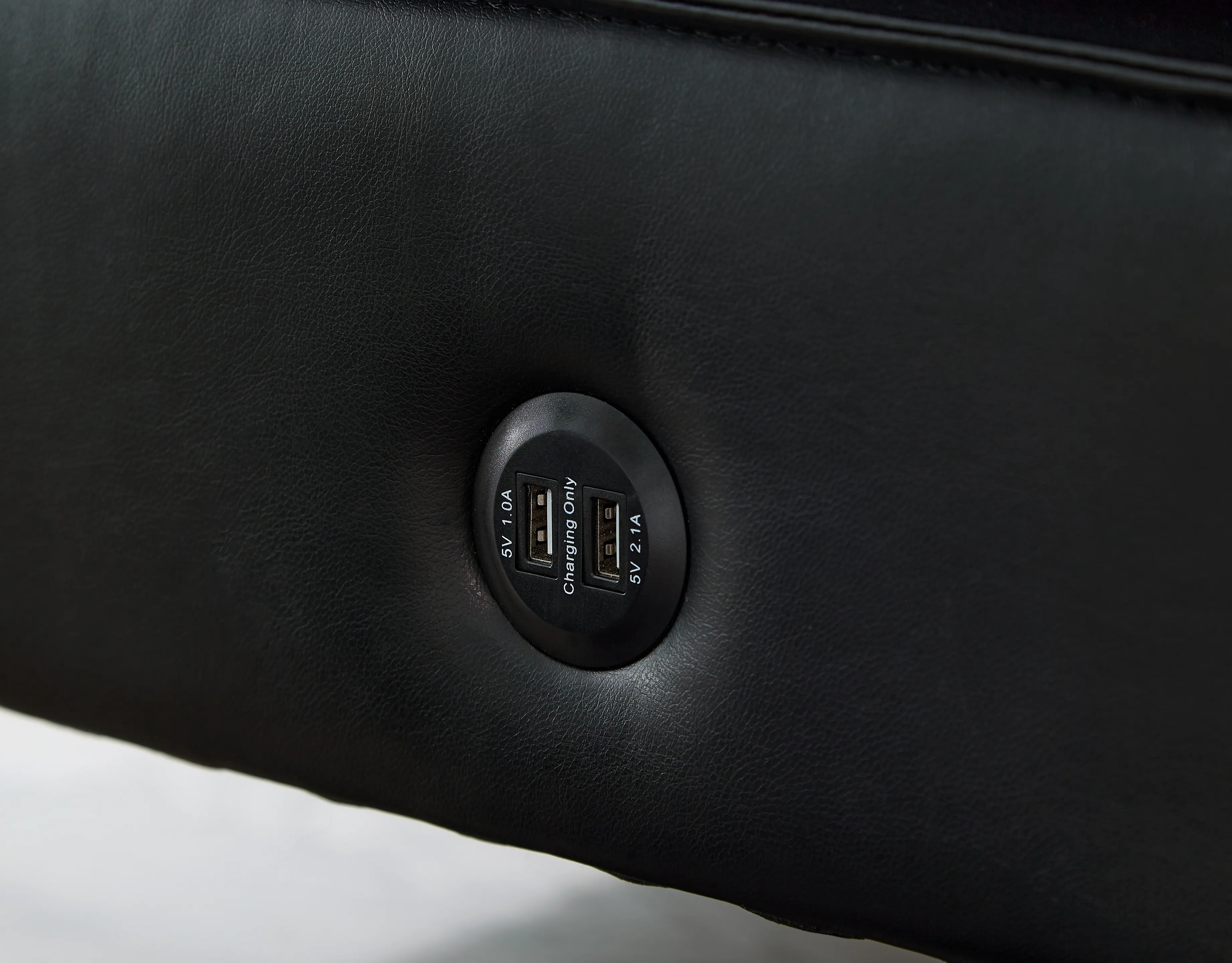 • Tufted details; narrow stitching