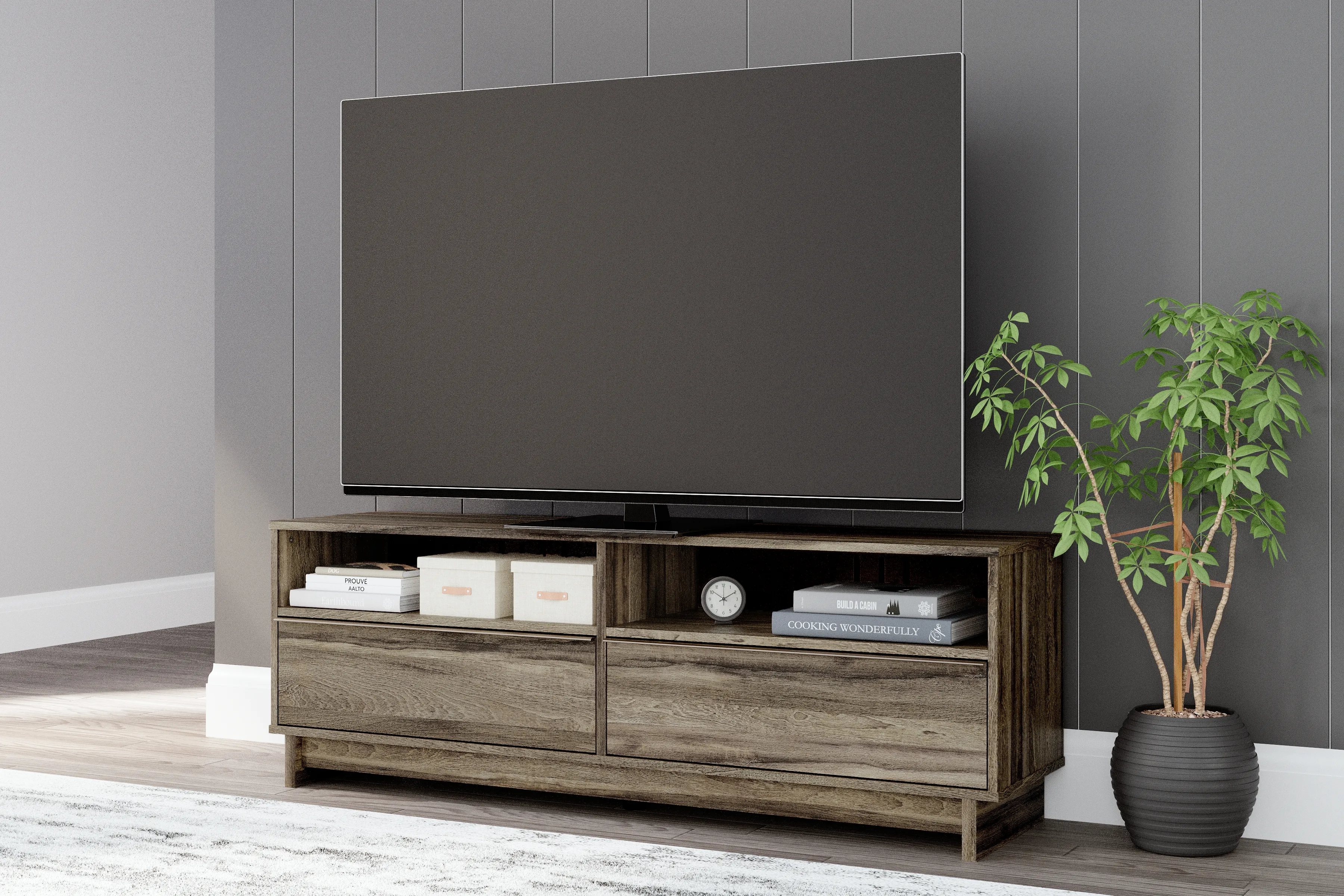 The Shallifer 59" TV Stand by Signature Design by Ashley may be available at The Furniture Mall in the Topeka, Olathe, Topeka, Lee's Summit, Topeka and Kansas City areas. Please contact us to check availability.