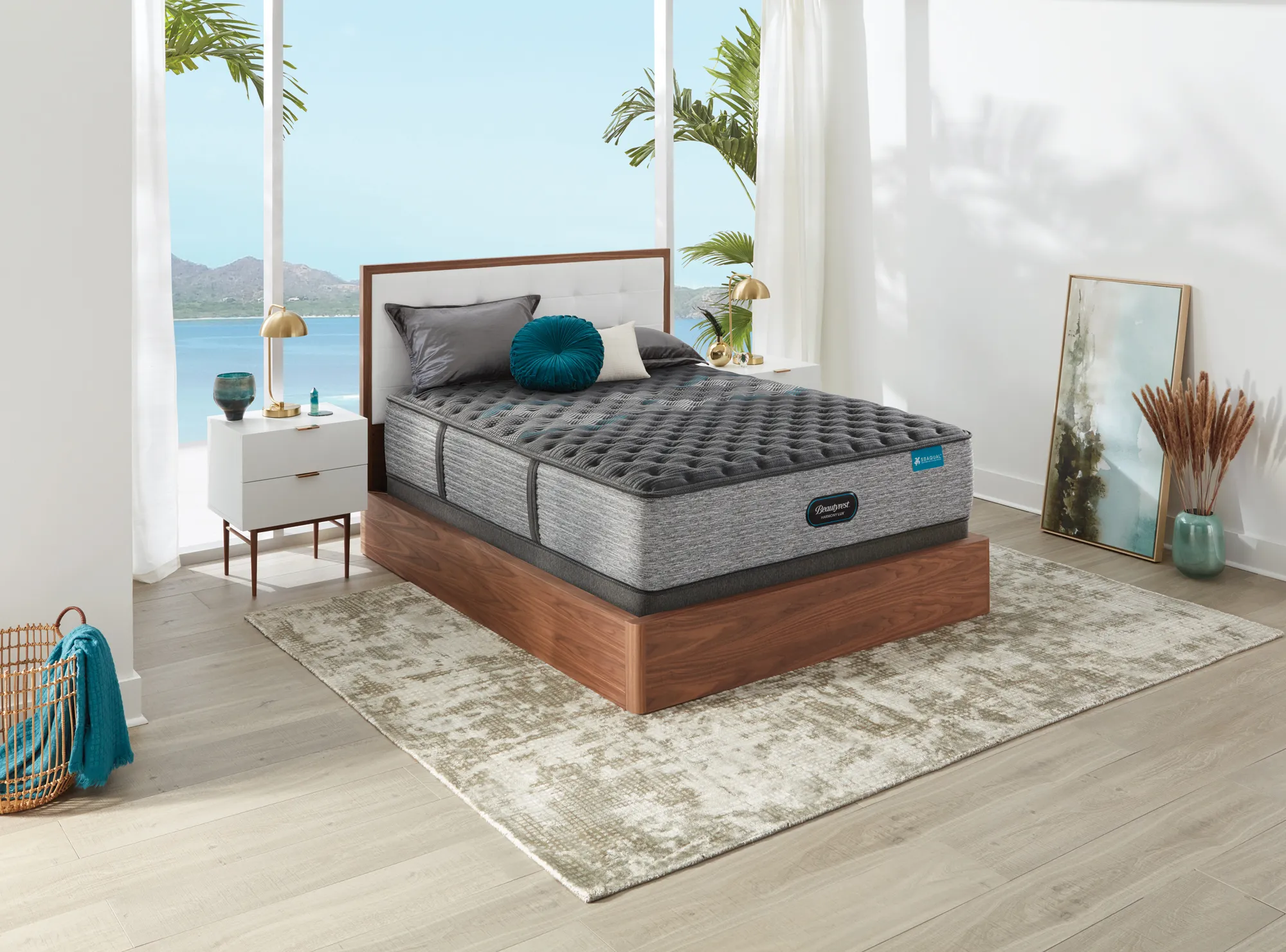 InfiniCool™ Lux provides a cool sleep environment and Seaqual™ Fabric Technology utilizes recovered plastics from the ocean to create a durable and luxurious fabric.
