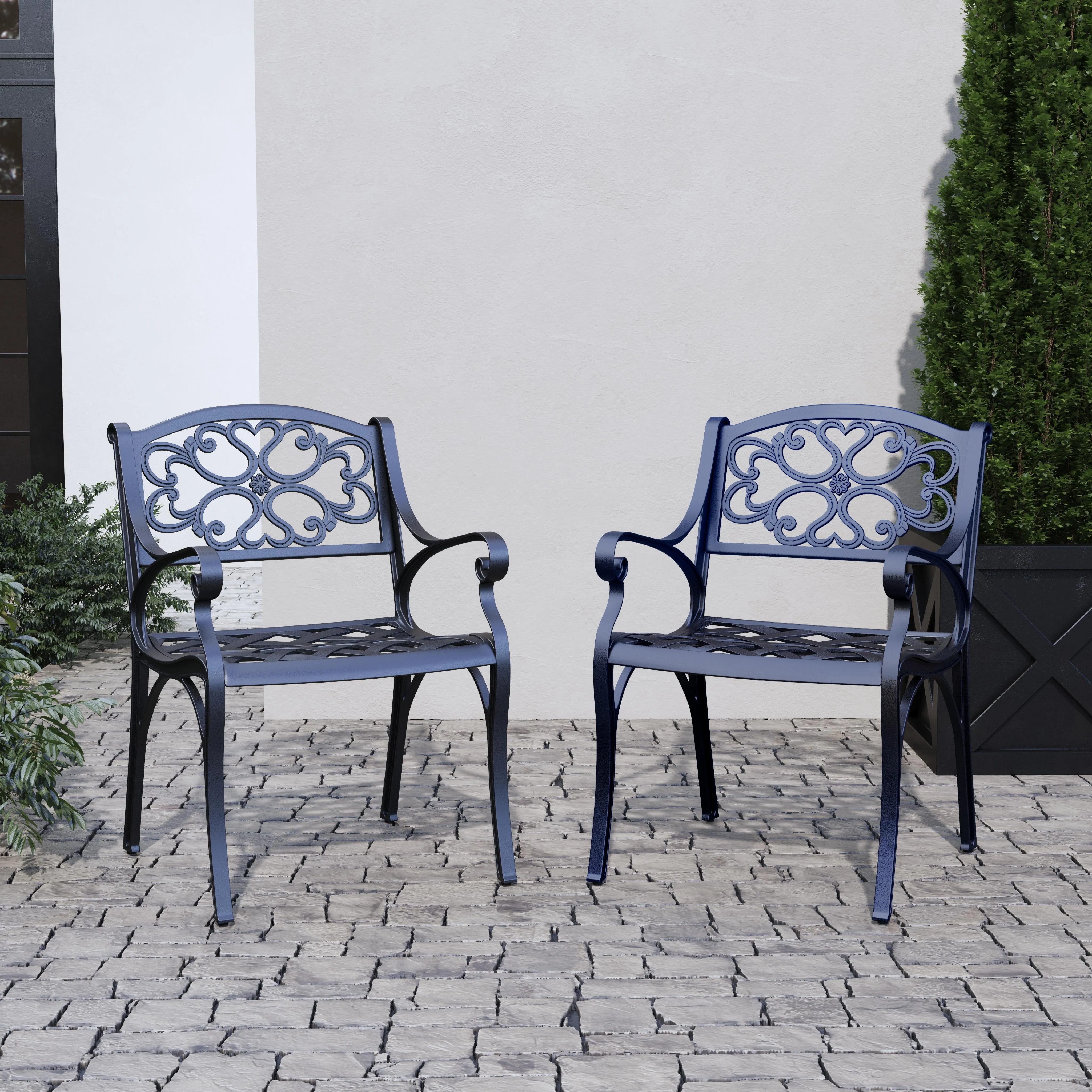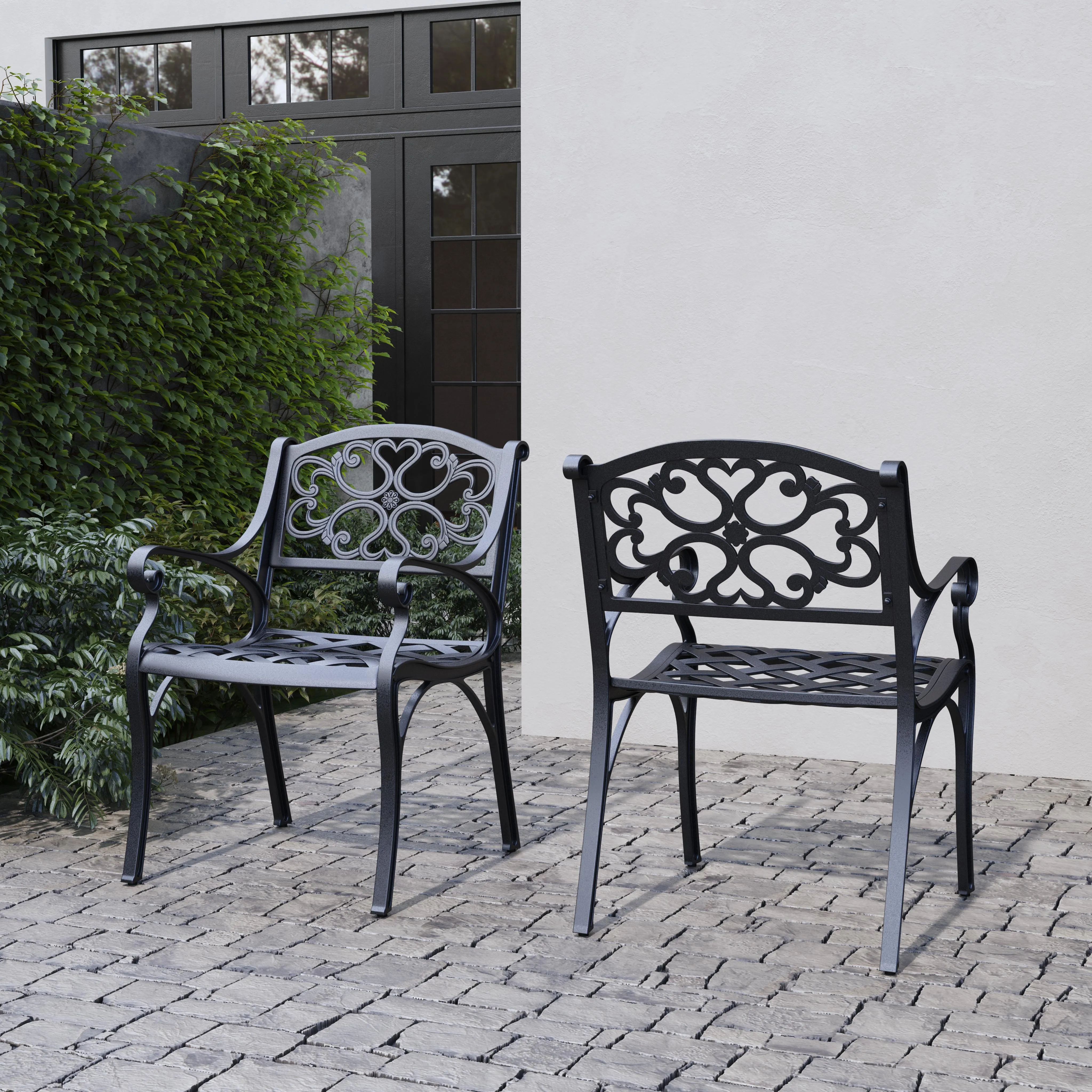 Turn an ordinary outdoor space into an oasis with this Homestyles Sanibel Arm Chair pair. This chair is constructed with black powder-coated aluminum for low-maintenance and lasting durability season after season. Simply add your own cushions to make it your style.
