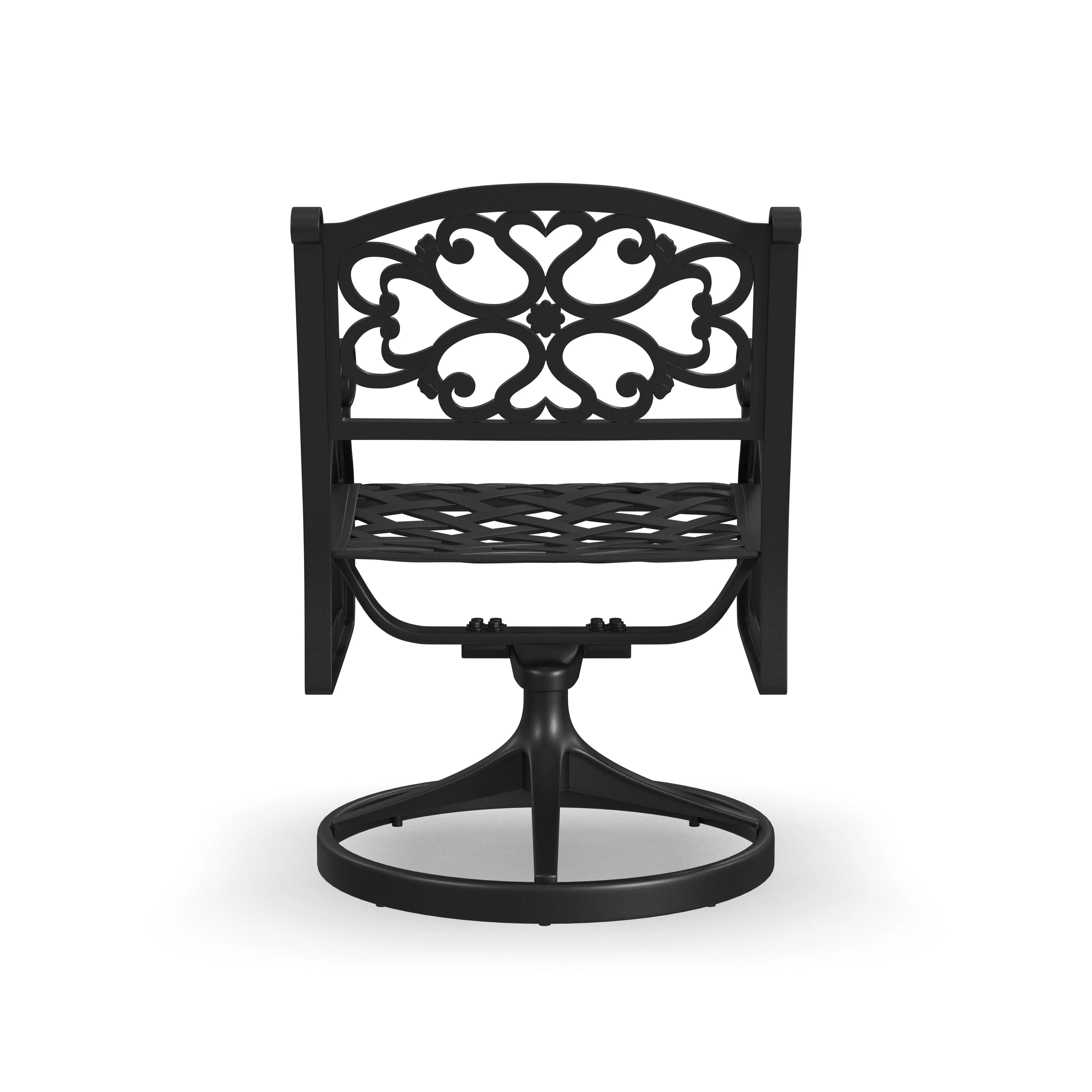 Turn an ordinary outdoor space into an oasis with this Homestyles Sanibel Swivel Rocking Chair. This chair is constructed with black powder-coated aluminum for low-maintenance and lasting durability season after season. Simply add your own cushions to make it your style.