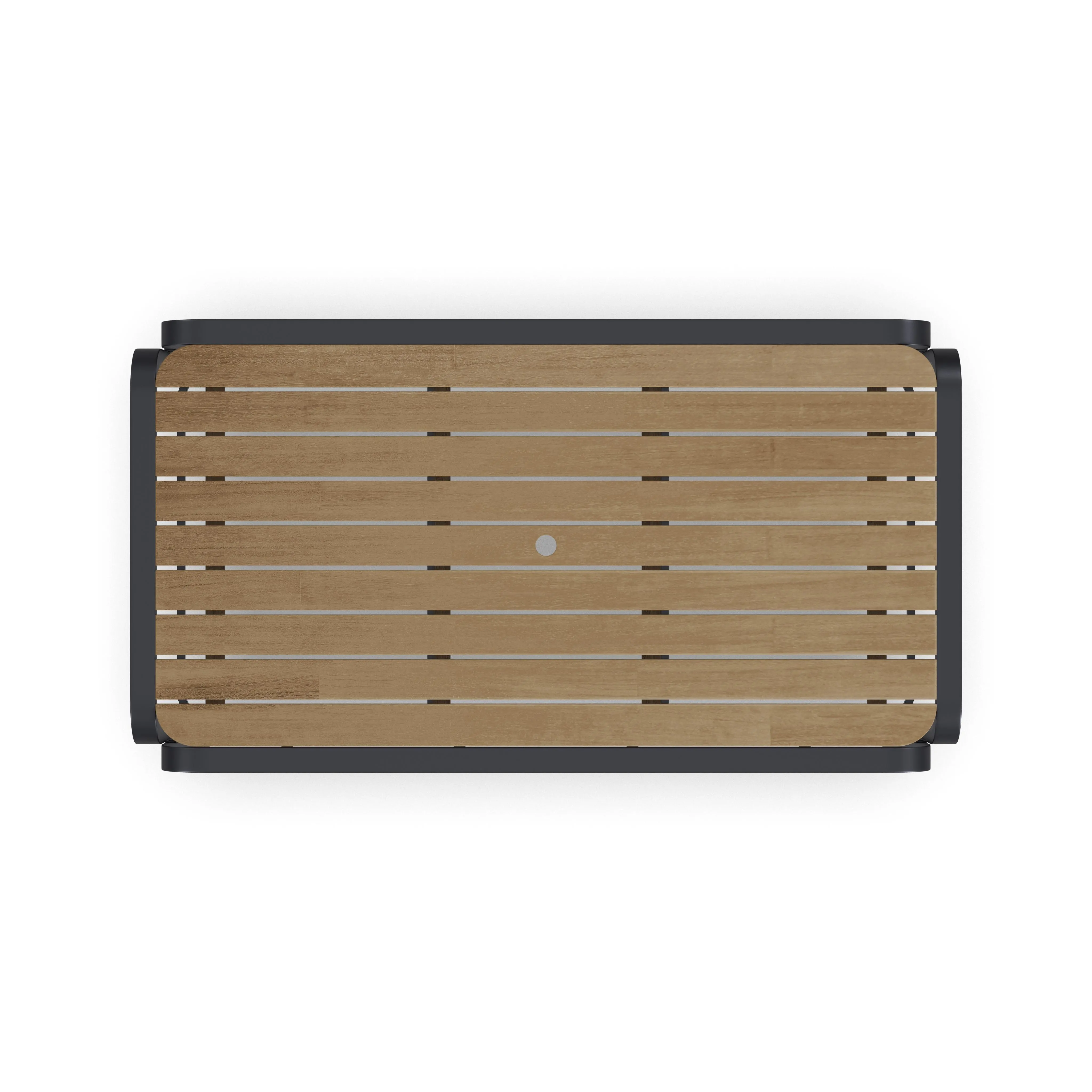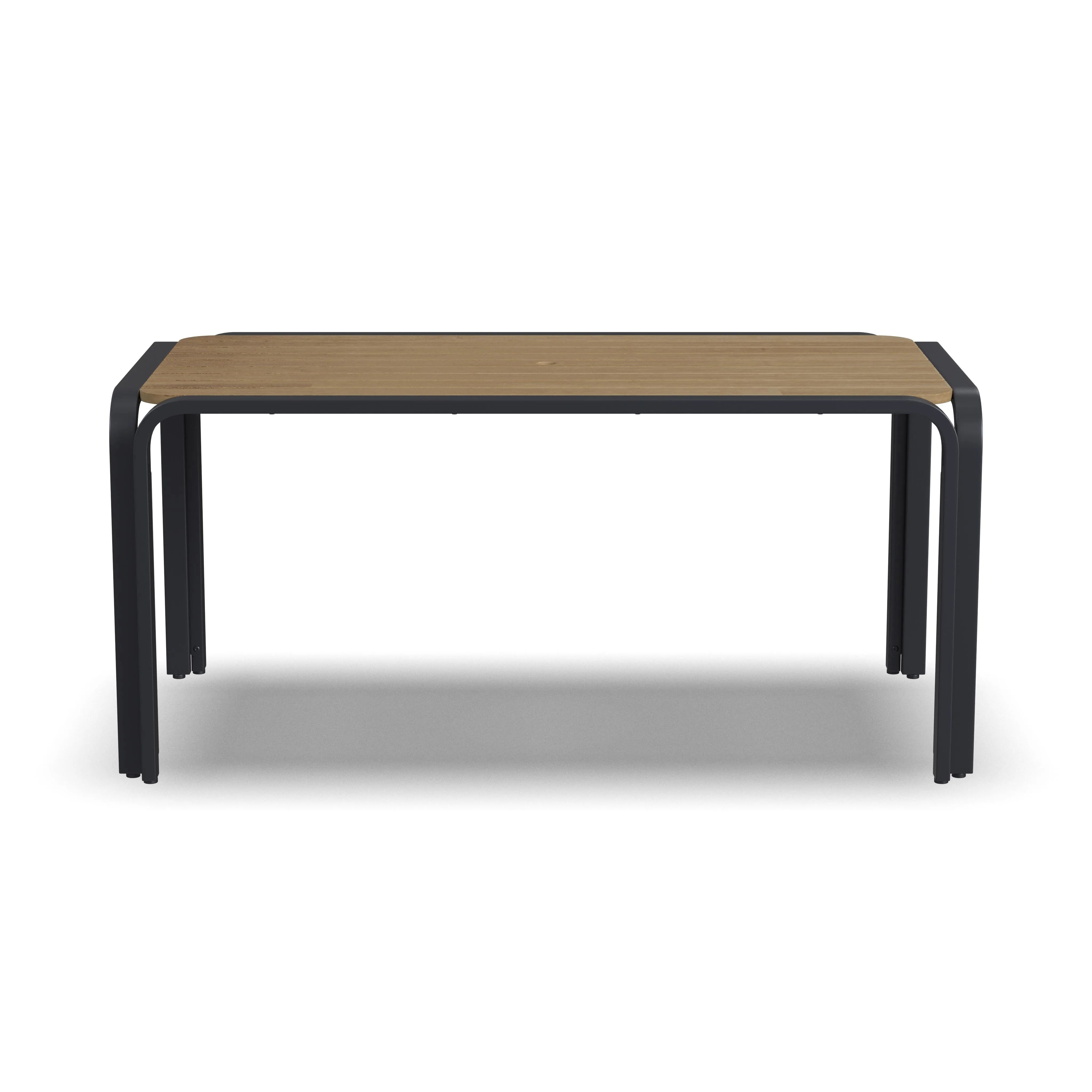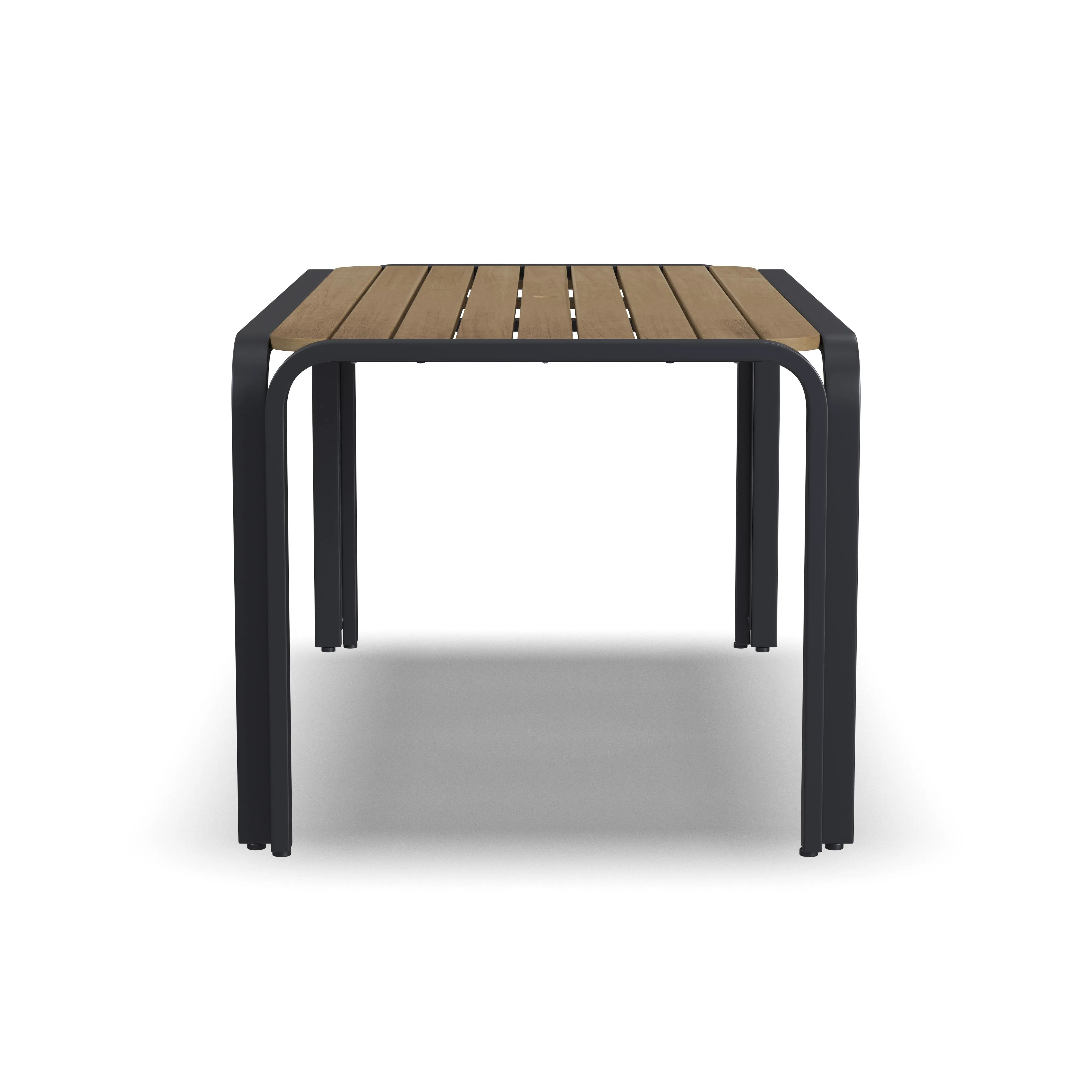 Elevate your outdoor entertaining with a laid-back, luxe look. Offering ample space for sharing meals with up to six people, the Finn rectangular dining table is crafted with a recycled black aluminum frame that's lightweight yet remarkably sturdy, and a planked eucalyptus wood top that offers exceptional resistance against the elements. This two-tone, mixed-material design makes for a striking addition to any outdoor space.