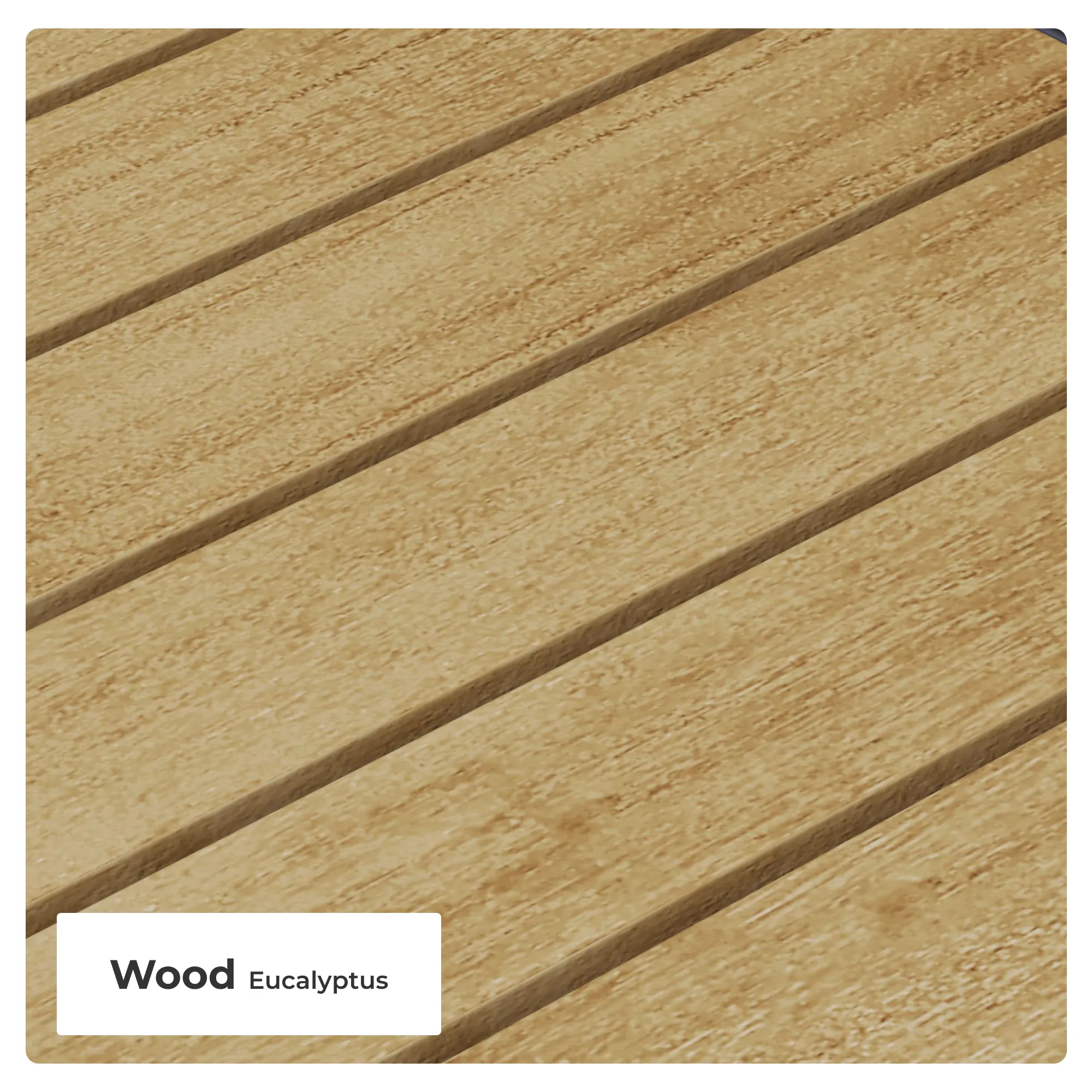 Beautiful, planked eucalyptus wood top offers exceptional durability and resistance to outdoor elements