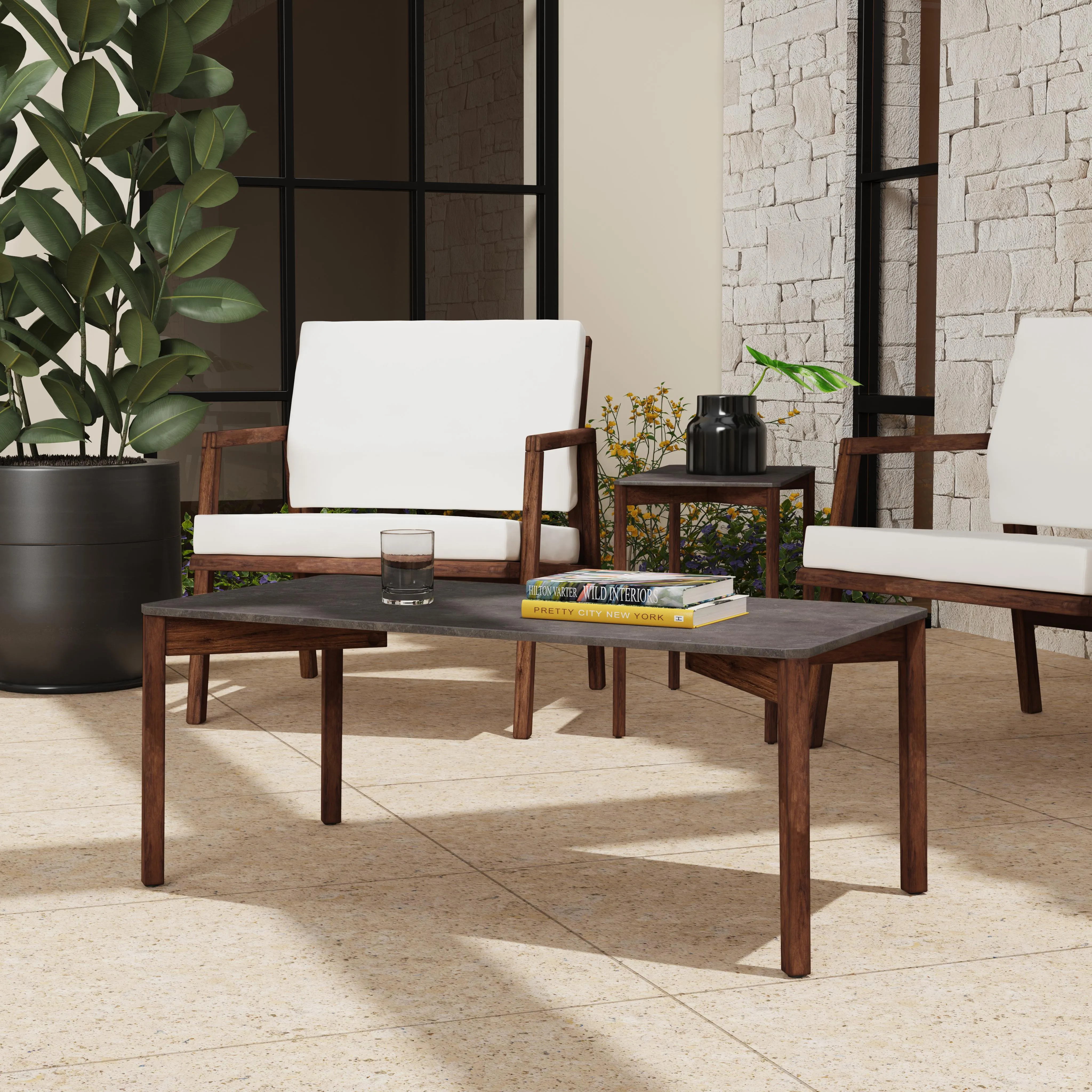 Elevate your outdoor space with the contemporary appeal of the Nova outdoor coffee table. Inspired by elements of Scandinavian and Arts and Craft styles, this easy to assemble, handcrafted table features clean lines for a minimalistic look. The rich brown, FSC-certified acacia wood base is naturally water- and fungus-resistant, and is complemented by a weather-proof, innovative high-pressure laminate tabletop that is engineered for premium durability that will last season after season.